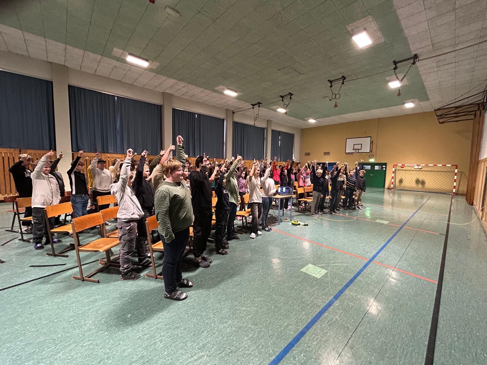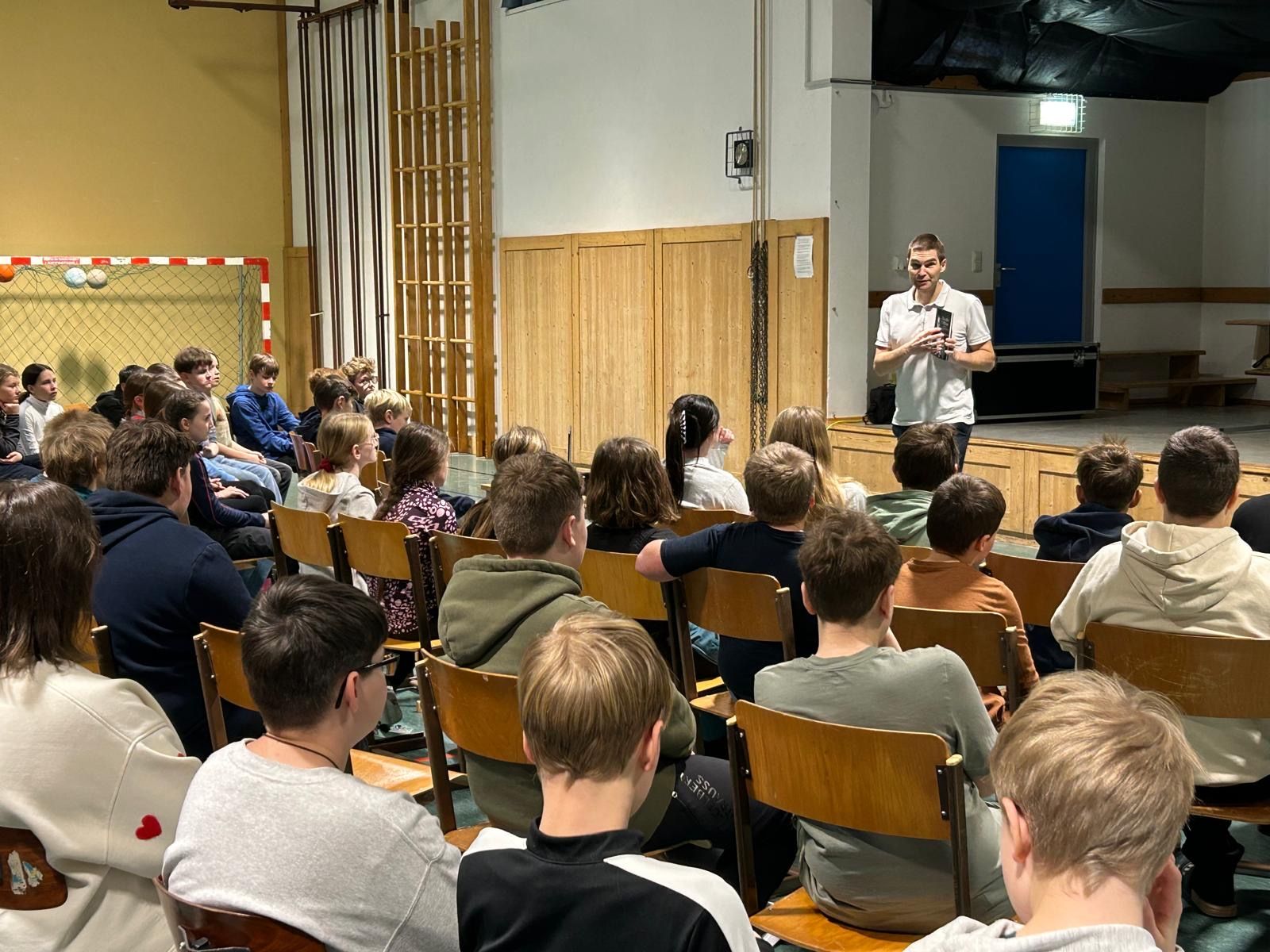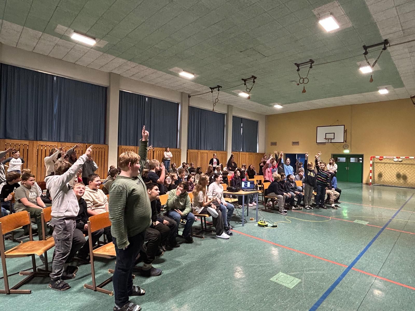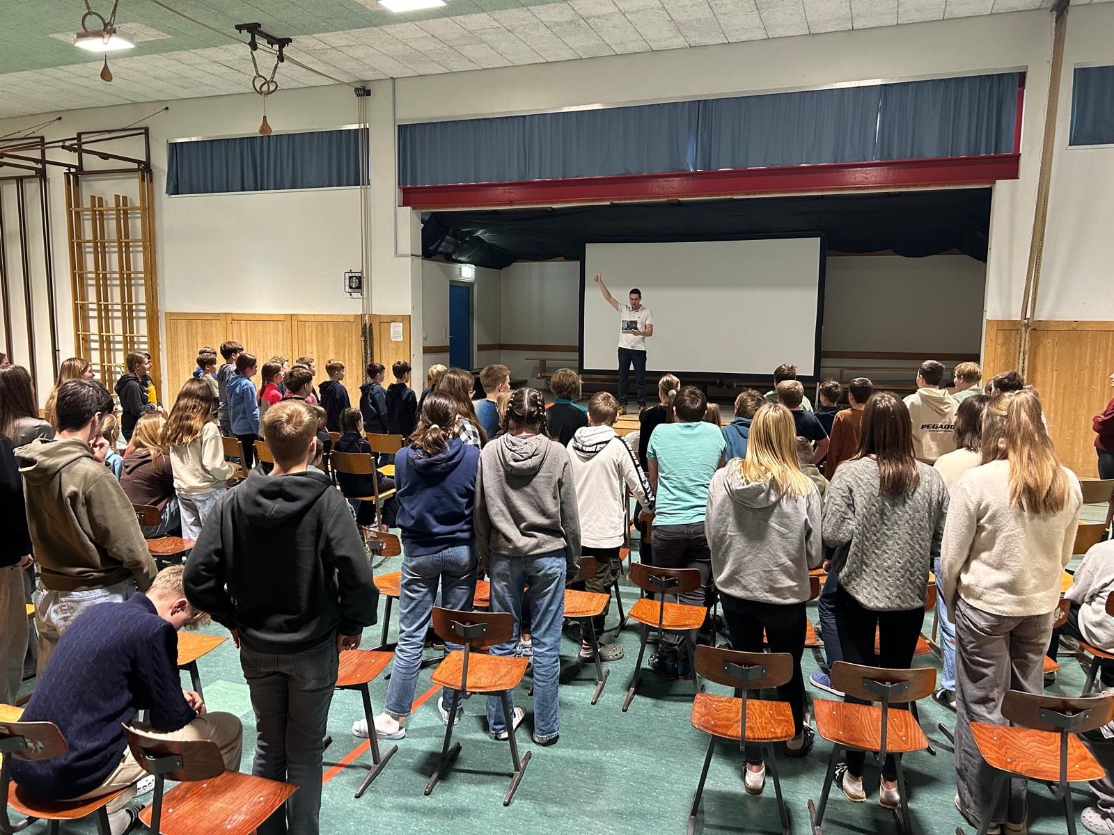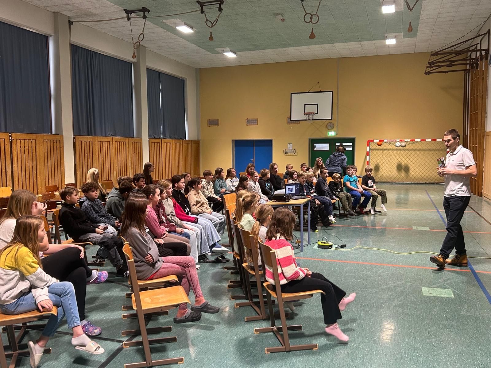 Und der Niederösterreicher holte die insgesamt 130 Kinder und Jugendlichen von der ersten Sekunde an voll ab. Schon mit der Vorstellung seiner Person, bei der er u. a. von einem Guinness-Weltrekordversuch, den er zusammen mit einem Freund unternommen hatte, erzählte, war das Interesse der Kinder geweckt. Mit seinem Humor sorgte er außerdem für viele Lacher. Fragen an den Autor waren ausdrücklich erlaubt – eine Möglichkeit, von der die SchülerInnen auch fleißig Gebrauch machten.