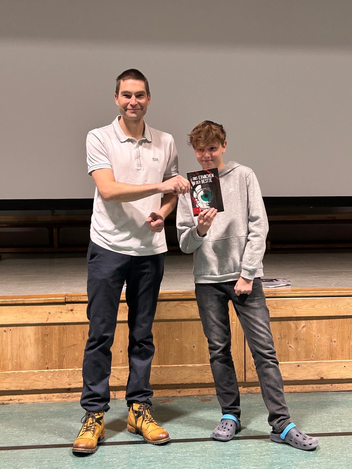 Mit einem Quiz band der Schriftsteller die Schüler auch aktiv ein. In beiden Lesungen wurde in mehreren Fragerunden ein Quizchampion ermittelt. Eine Schülerin der 3. Klasse Volksschule sowie ein Mittelschüler der 4. Klasse gingen als Siegerin beziehungsweise Sieger hervor und durften sich als Belohnung eines der Bücher des Autors aussuchen, das in beiden Fällen von Hörndler natürlich auch persönlich signiert wurde.