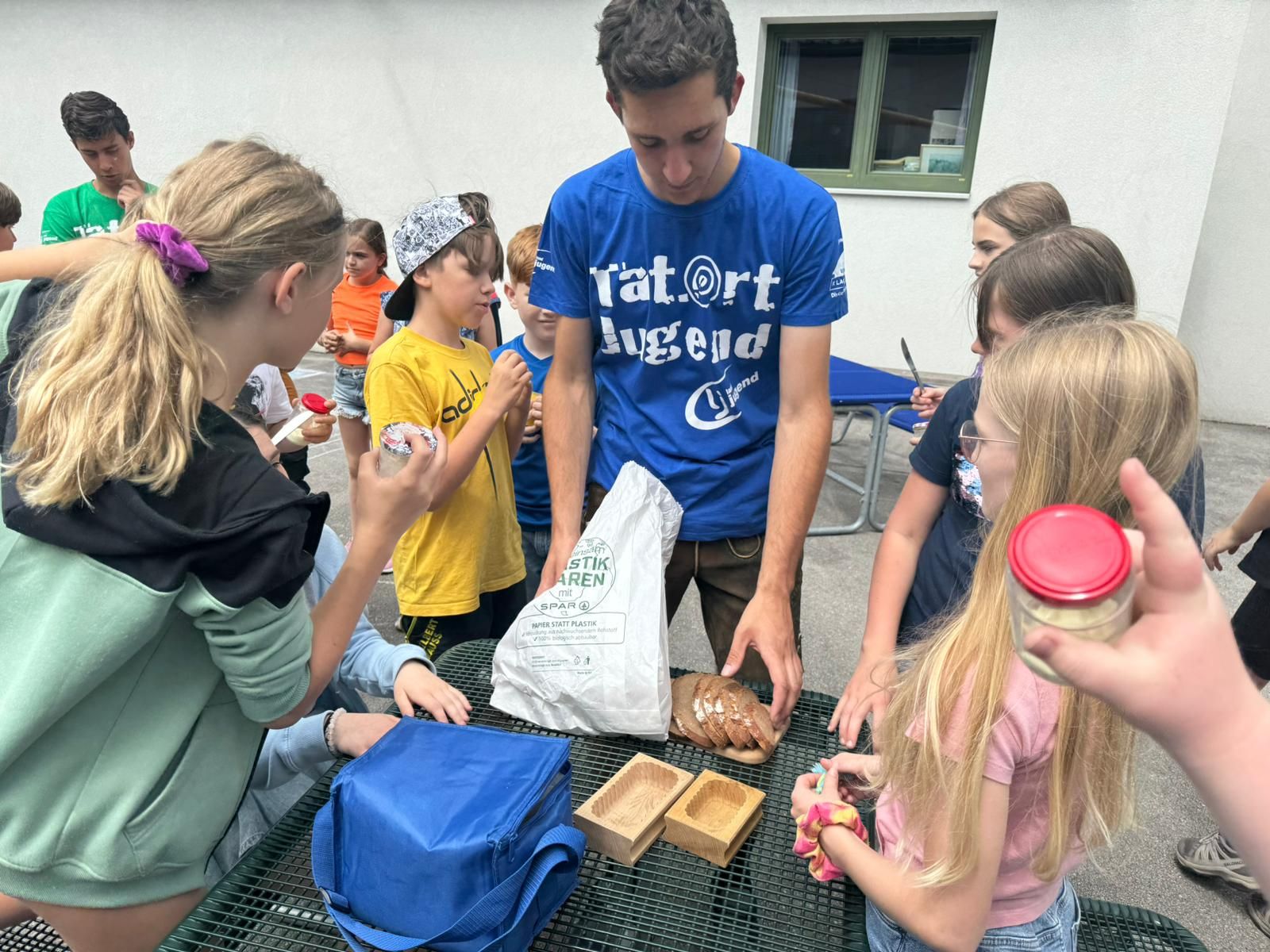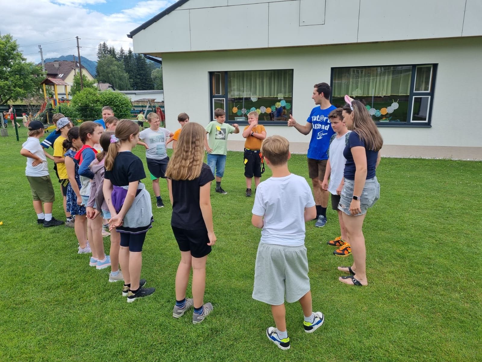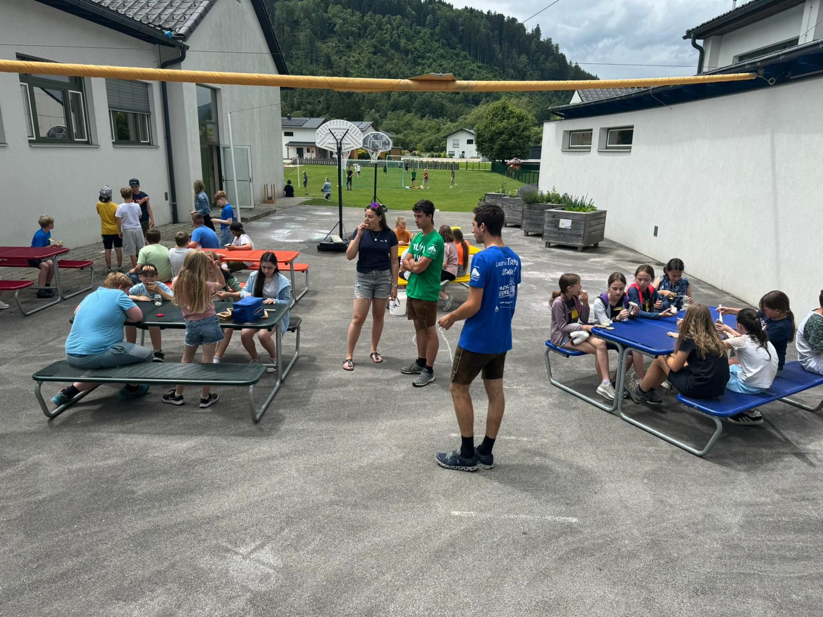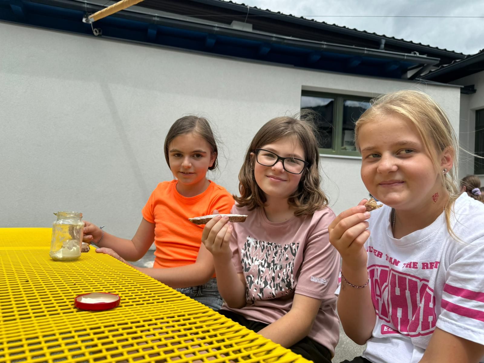 Am 26. Juni erhielten die beiden ersten Klassen Besuch von der Landjugend Öblarn. Jakob Danklmaier-Pürcher, Anna Schmid und Sebastian Kettner informierten – unterstützt von der Stoffziege Almspezi – die Schülerinnen und Schüler über die Alm.