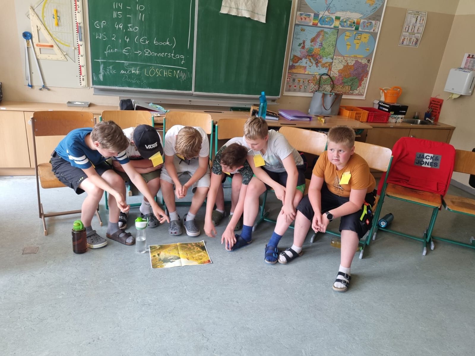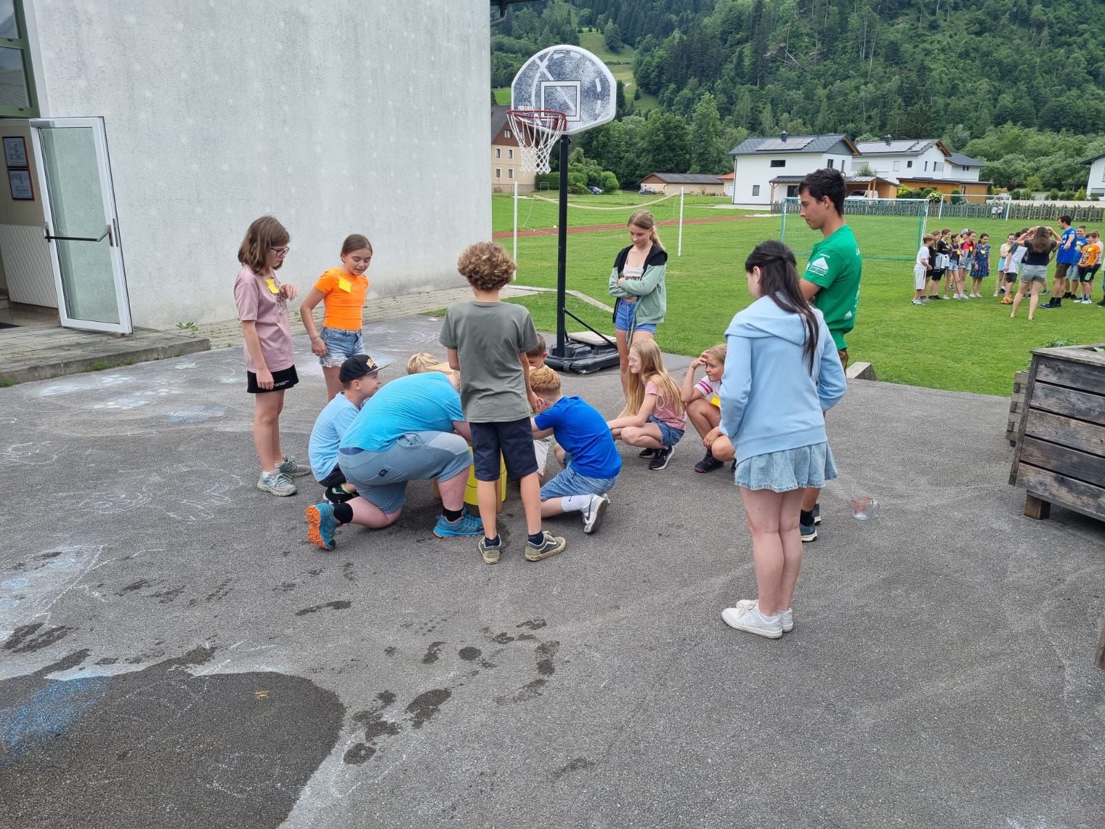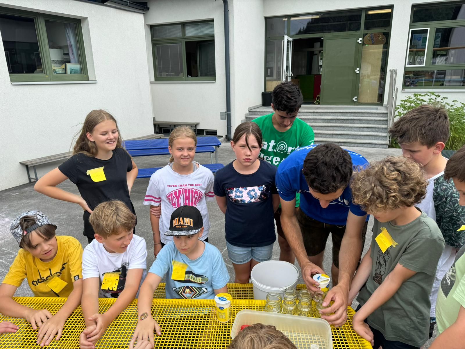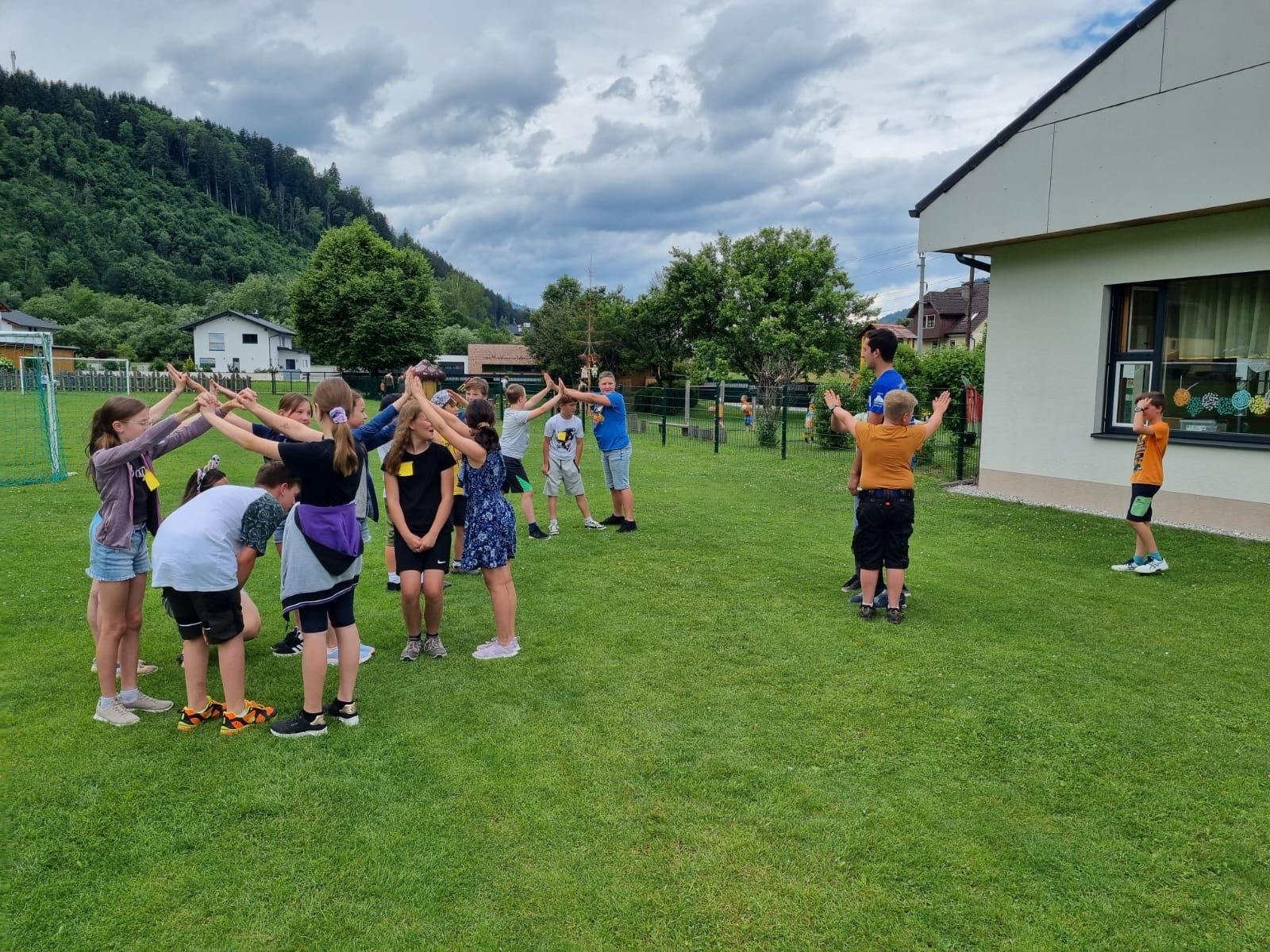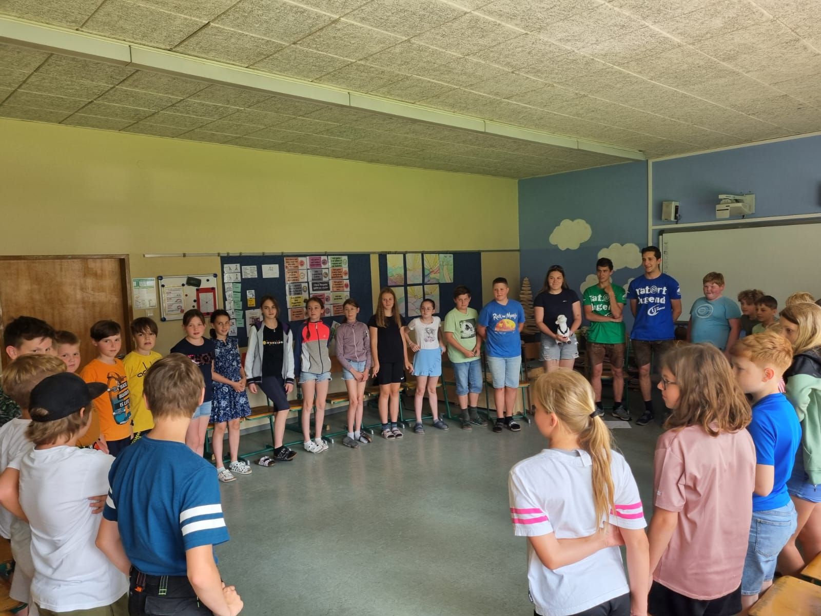 Am 26. Juni erhielten die beiden ersten Klassen Besuch von der Landjugend Öblarn. Jakob Danklmaier-Pürcher, Anna Schmid und Sebastian Kettner informierten – unterstützt von der Stoffziege Almspezi – die Schülerinnen und Schüler über die Alm.