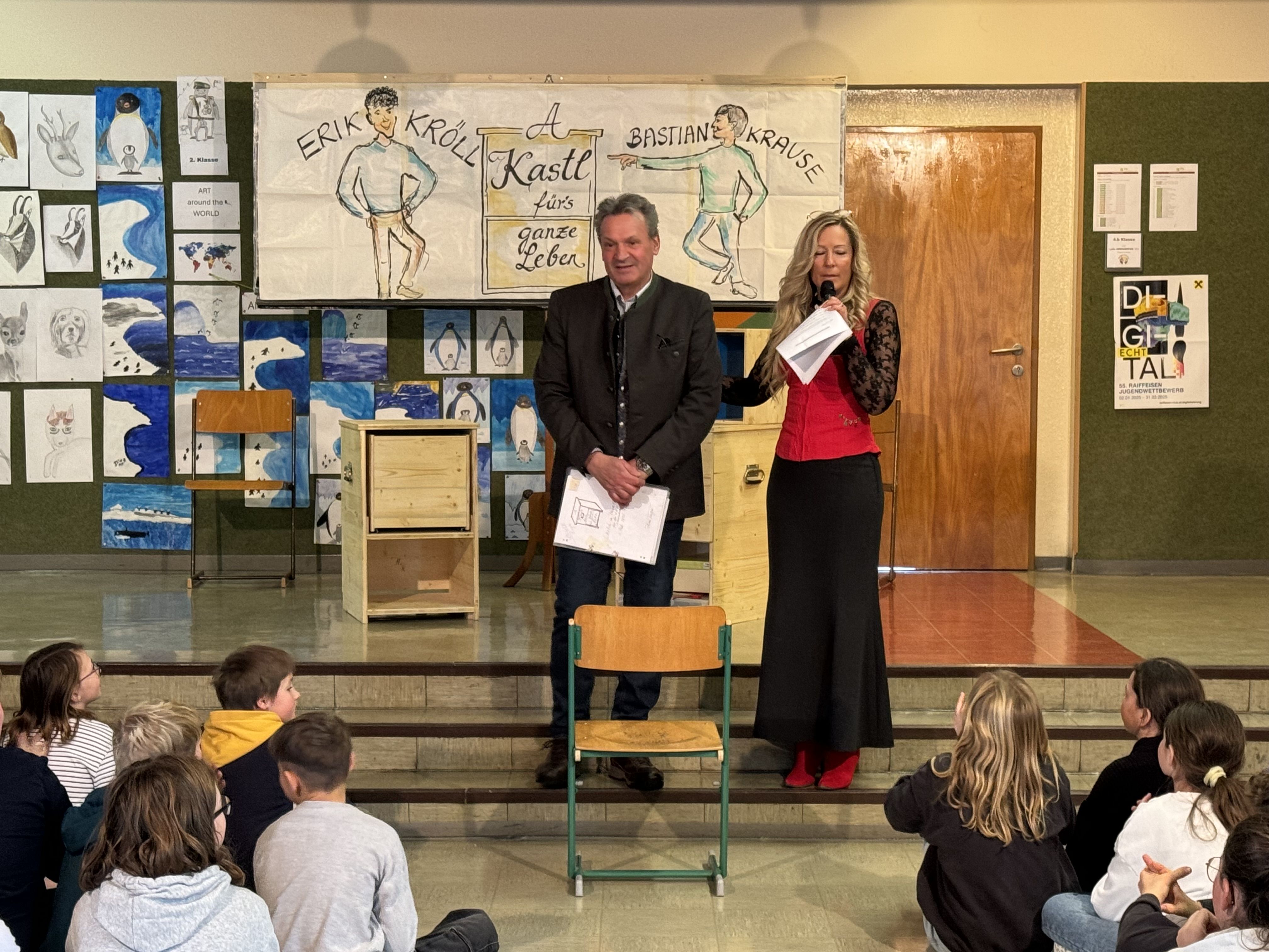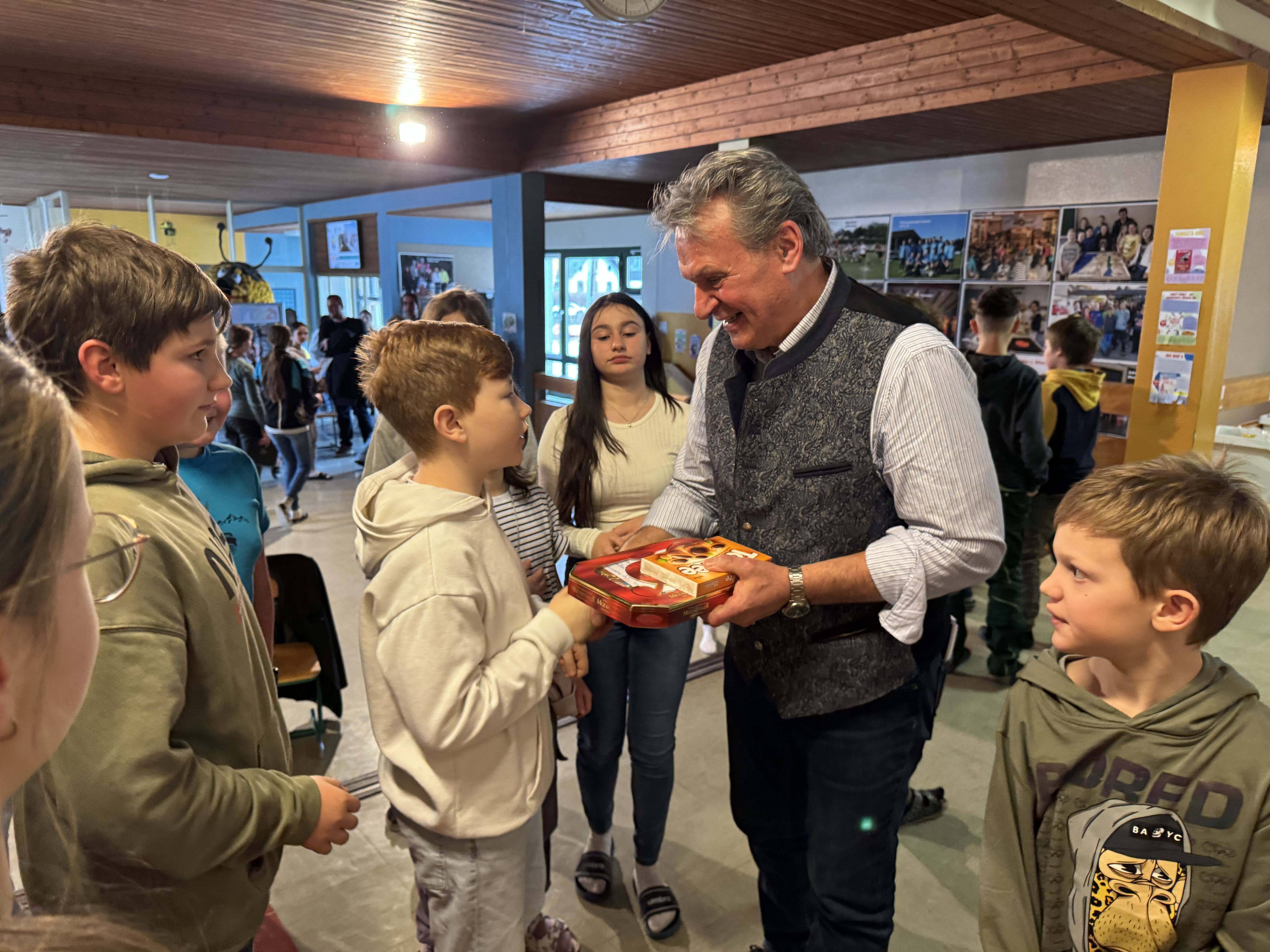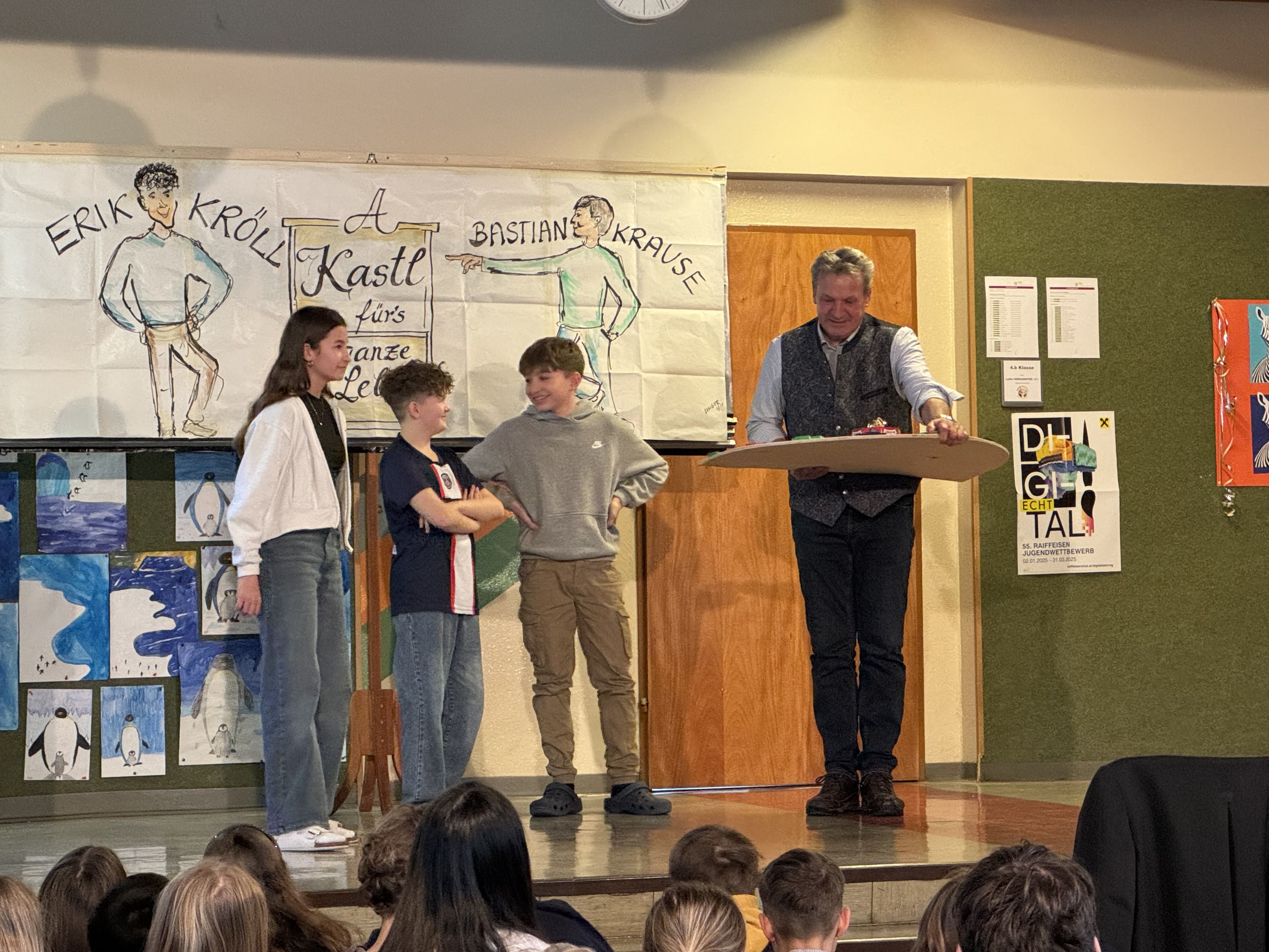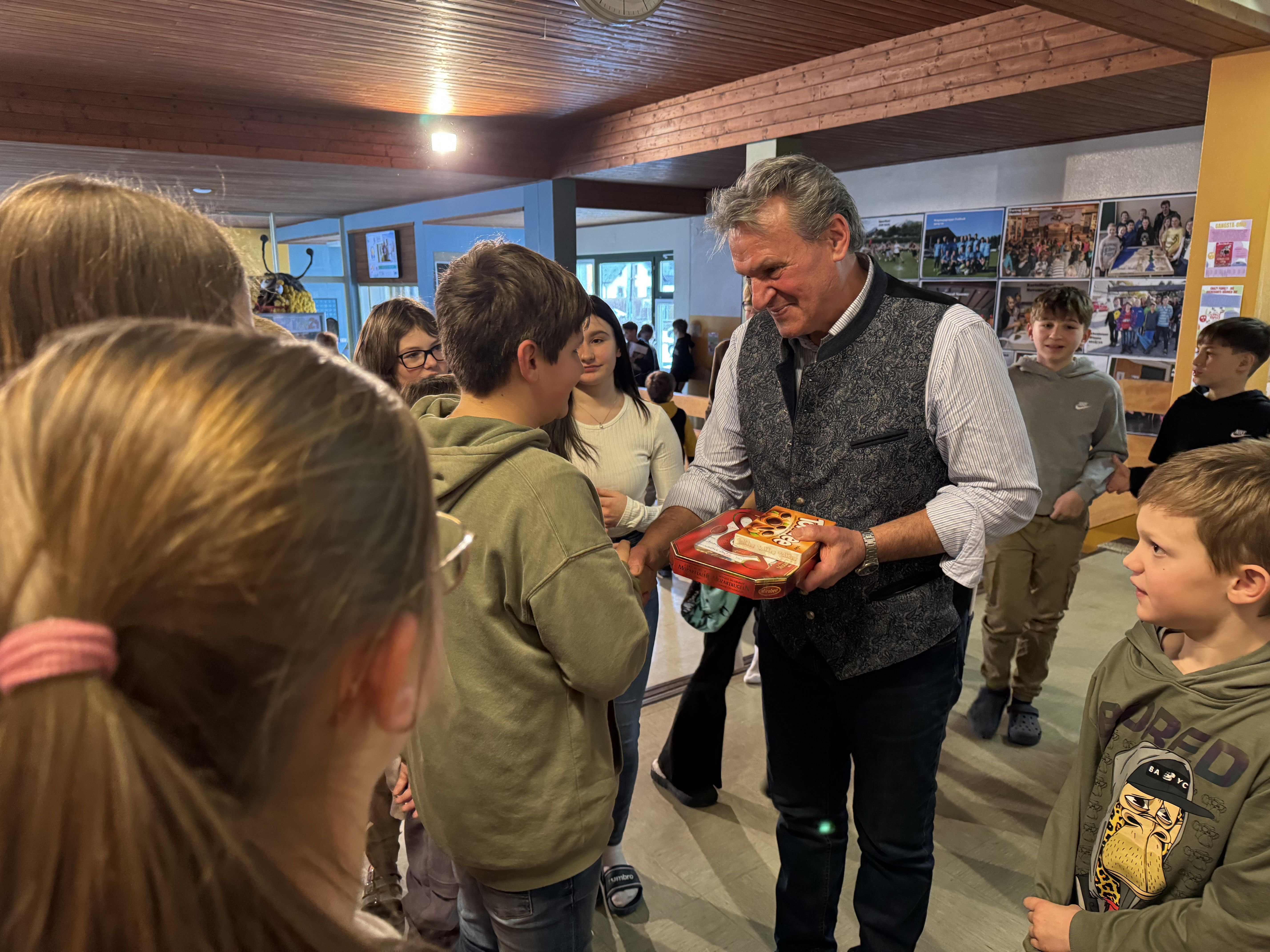 Am letzten Schultag vor den Semesterferien wollte unser Religionslehrer Alois Unger eigentlich nur sein letztes großes Projekt „A Kastl fürs Leben“ präsentieren. Gemeinsam mit den 4. Klassen hatte er dafür einen Sketch einstudiert. Doch nach der Aufführung wartete eine große Überraschung auf ihn.