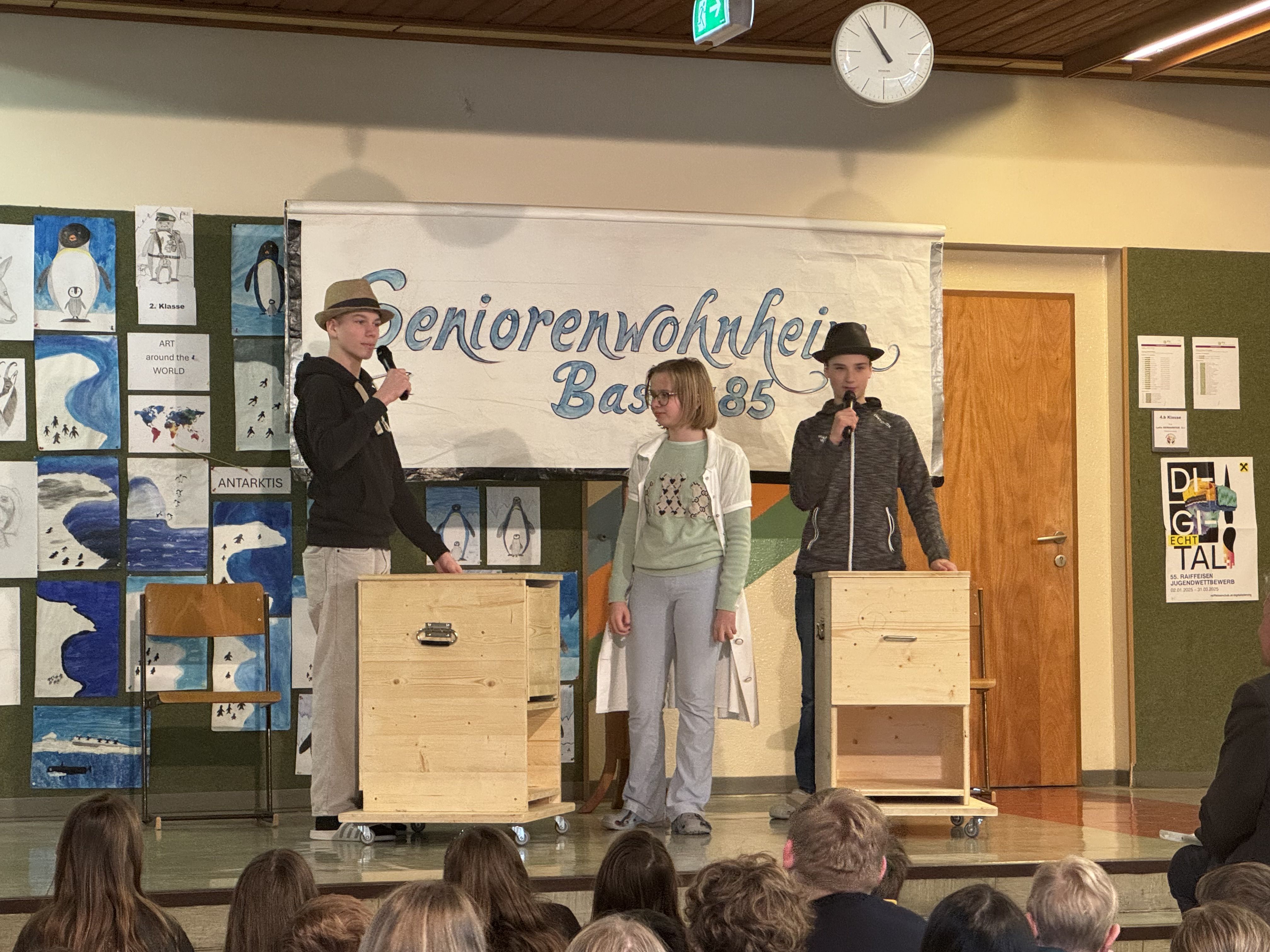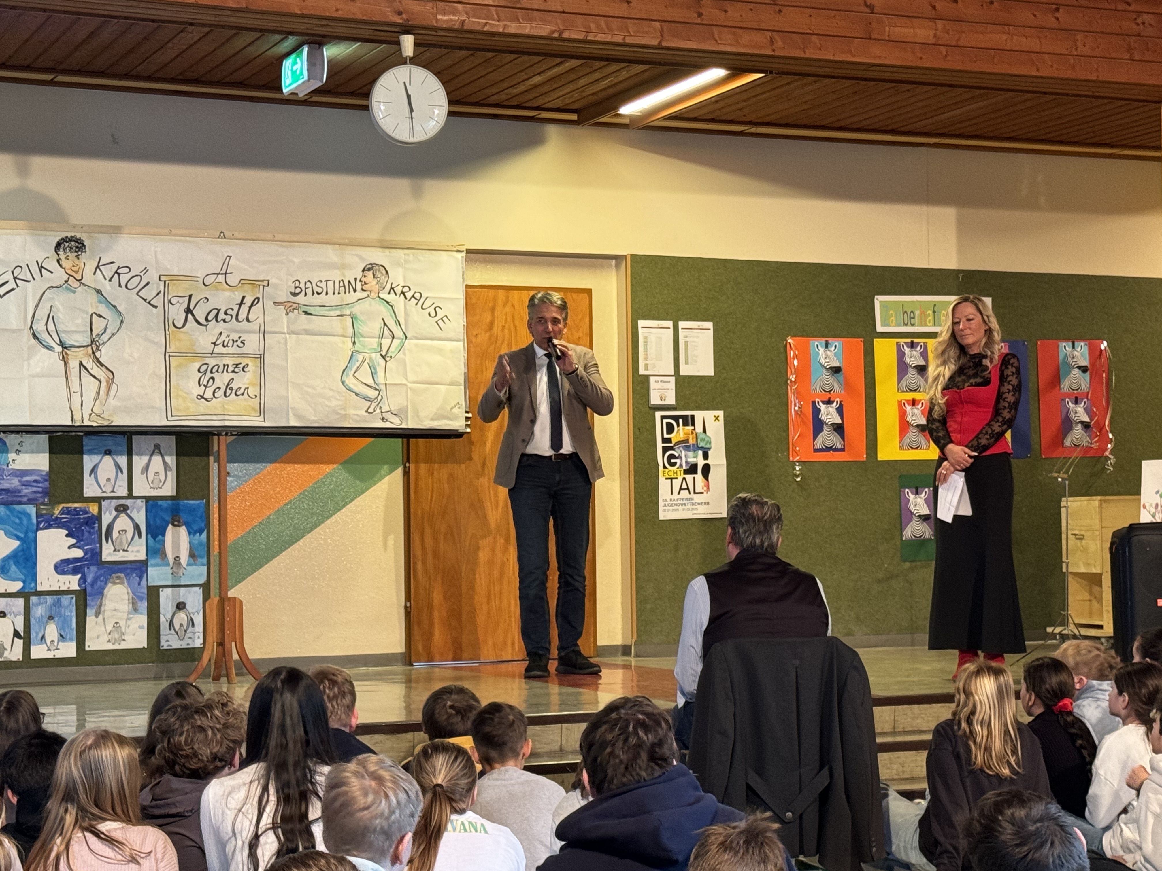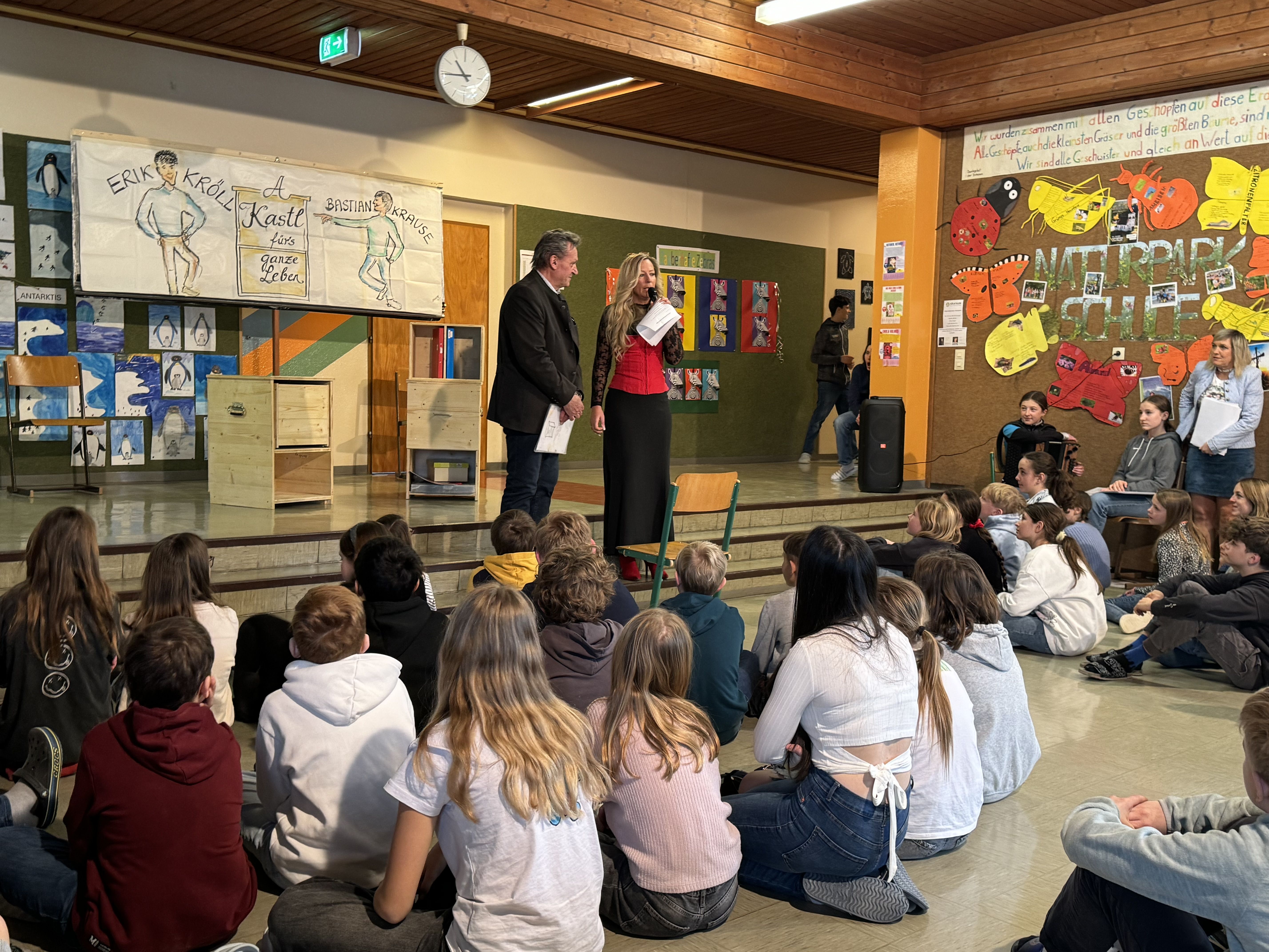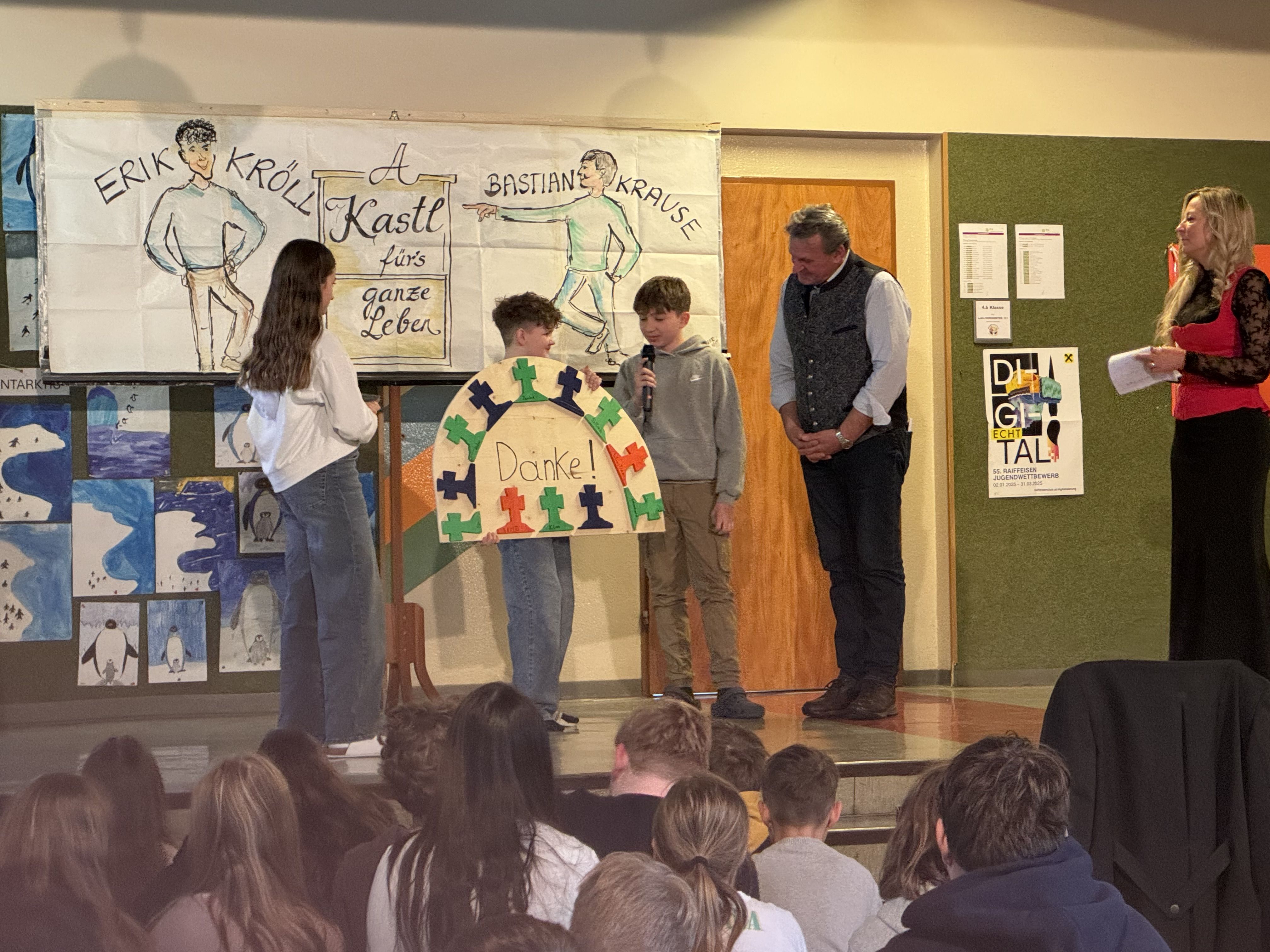 Am letzten Schultag vor den Semesterferien wollte unser Religionslehrer Alois Unger eigentlich nur sein letztes großes Projekt „A Kastl fürs Leben“ präsentieren. Gemeinsam mit den 4. Klassen hatte er dafür einen Sketch einstudiert. Doch nach der Aufführung wartete eine große Überraschung auf ihn.