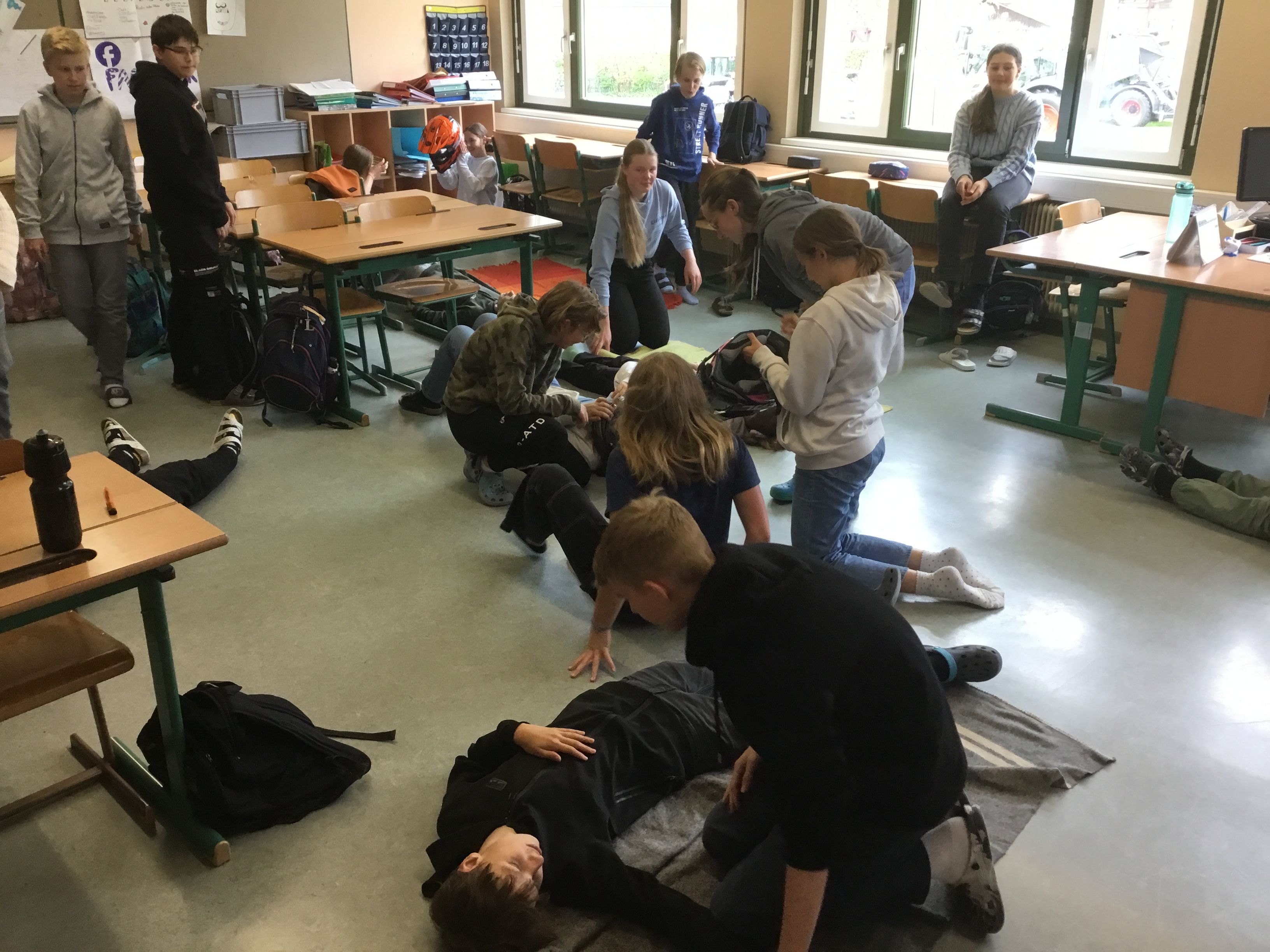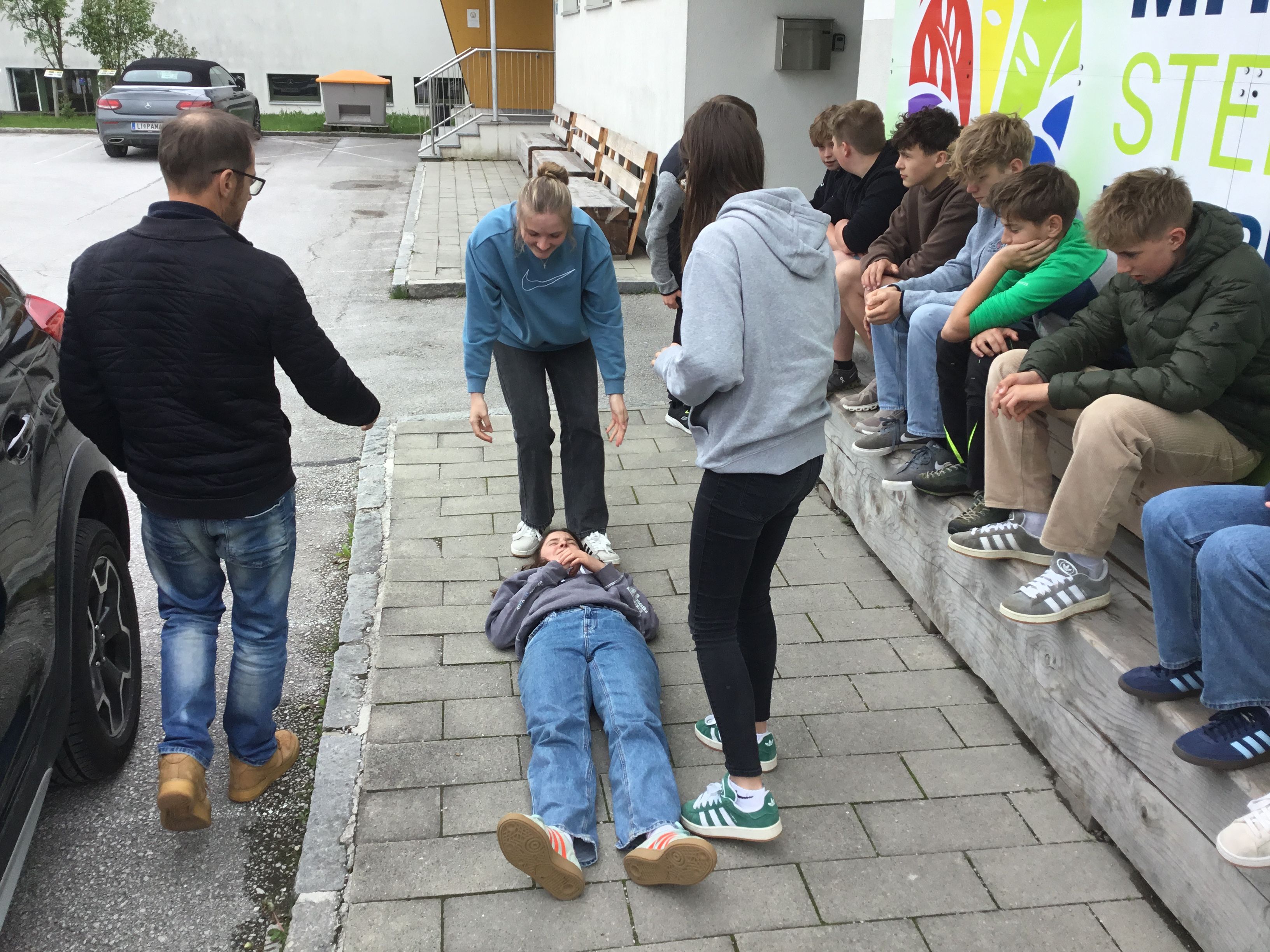 Insgesamt 32 SchülerInnen der 4. Klassen absolvierten erfolgreich in der ersten Woche nach den Semesterferien einen 16- stündigen Grundkurs in Erster Hilfe! Unter der Leitung des EH- Lehrbeauftragten Dipl.Päd. Andreas Fischbacher und unter Mithilfe von BED David Gabriel gliedert sich dieser Kurs in einem theoretischen Teil und ausführlichen Praxiseinheiten!