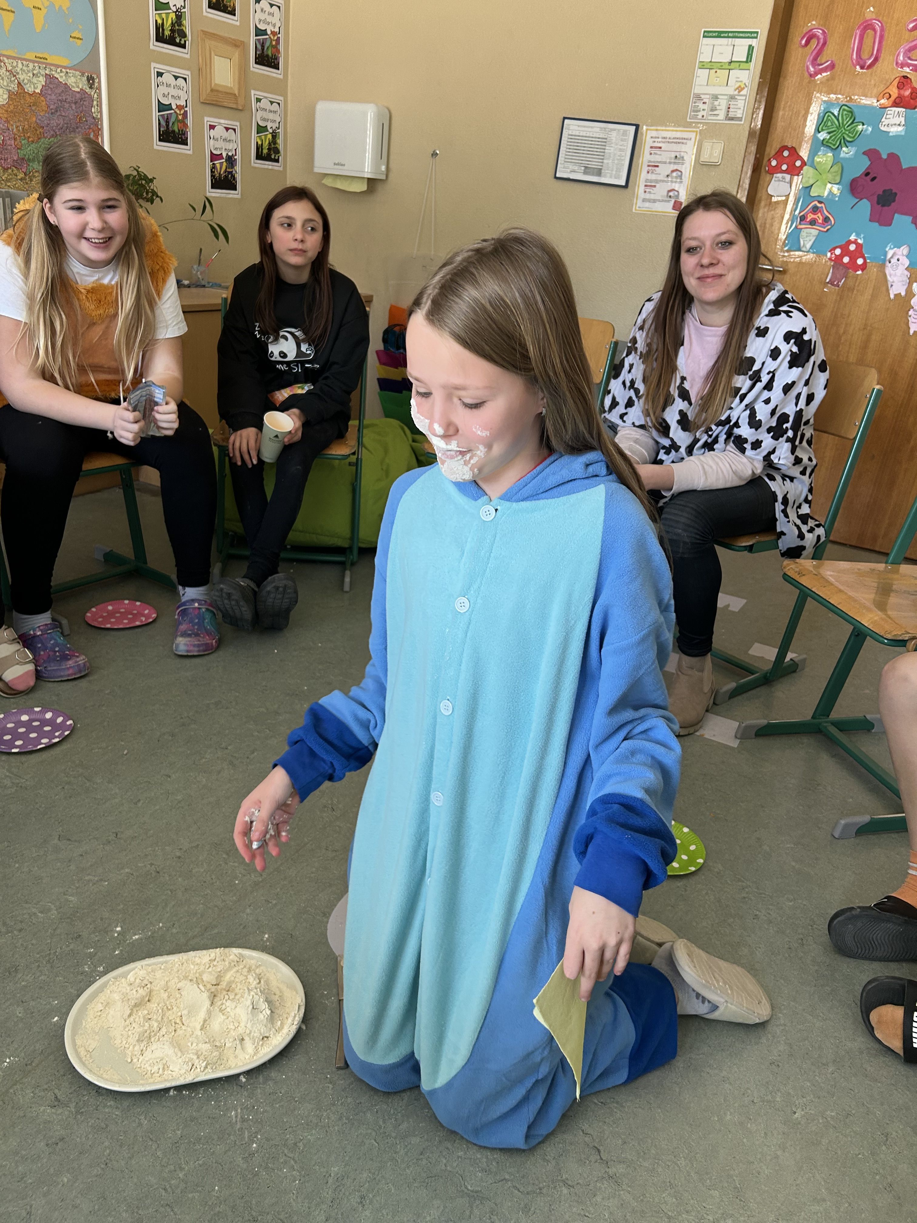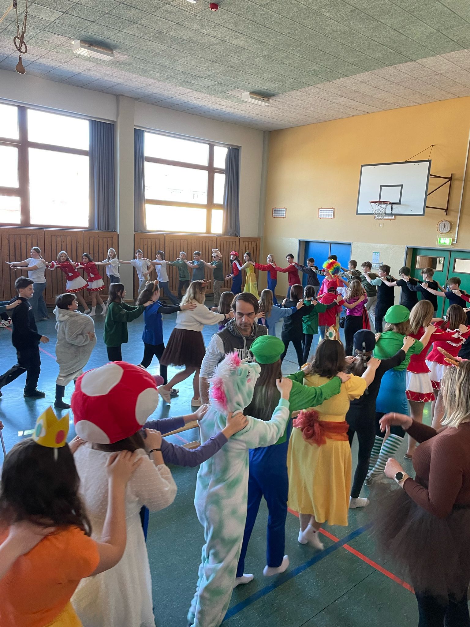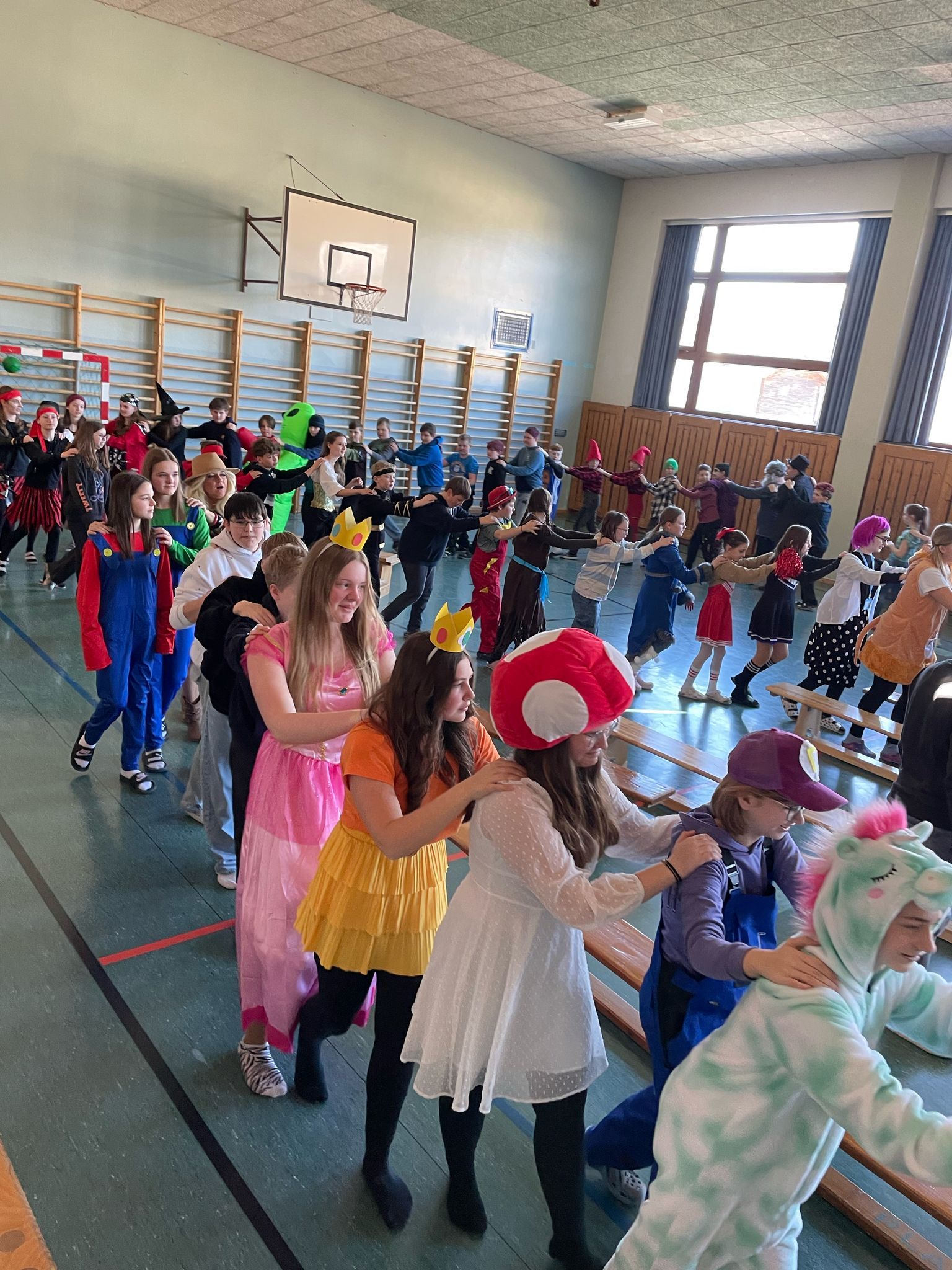 Zum krönenden Abschluss gab es für alle einen leckeren Faschingskrapfen. Mit einer fröhlichen Polonaise durch die Schule ließen wir diesen tollen Tag ausklingen. Es war ein Faschingsdienstag voller Spaß, Musik und guter Stimmung.