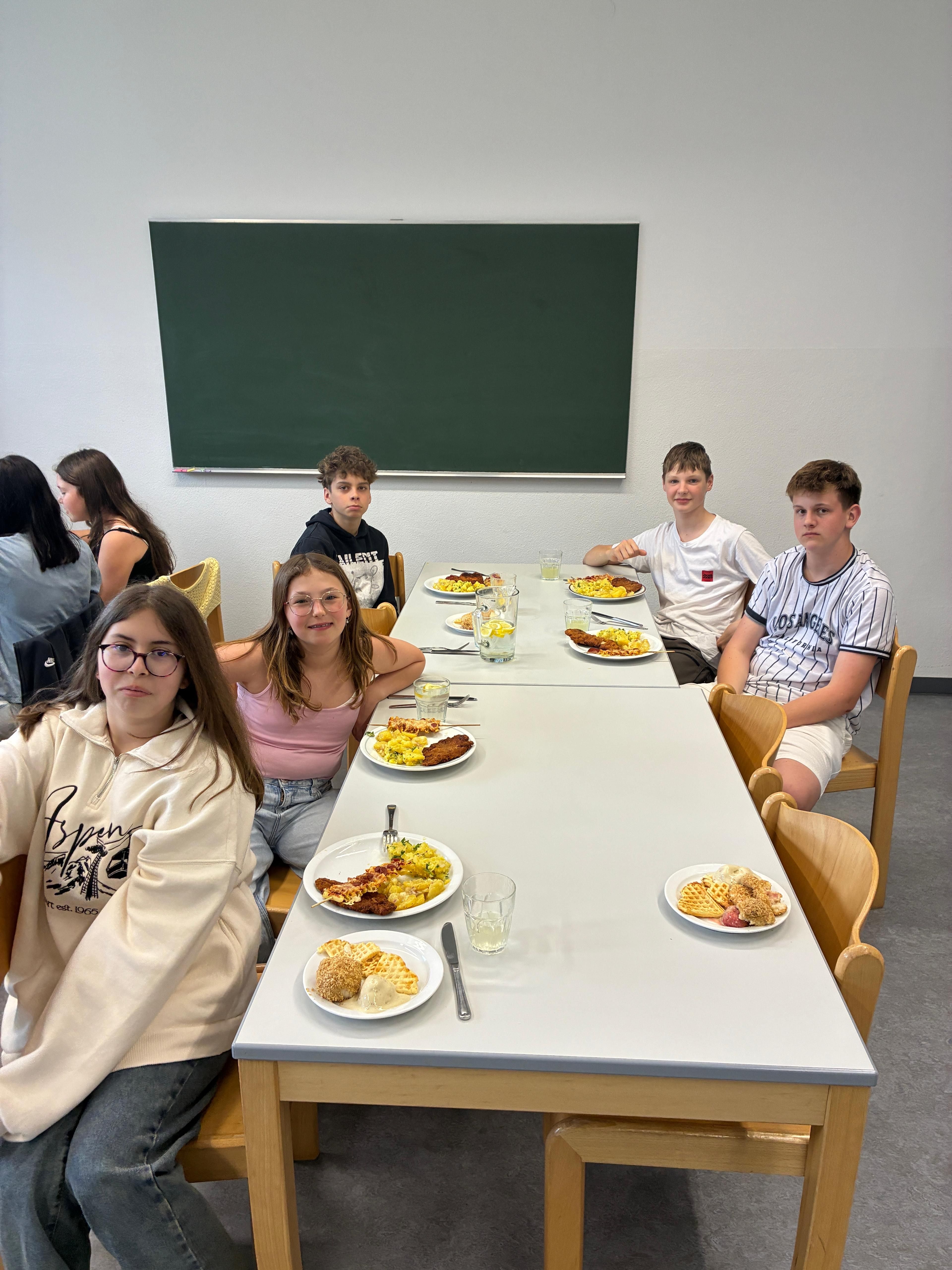 Außerdem gab es Pizzaspieße mit Nudeln, Schnitzel mit Erdäpfelsalat sowie süße Nachspeisen wie Waffeln, Erdbeerknödel mit Bröseln und selbstgemachtes Bananeneis.