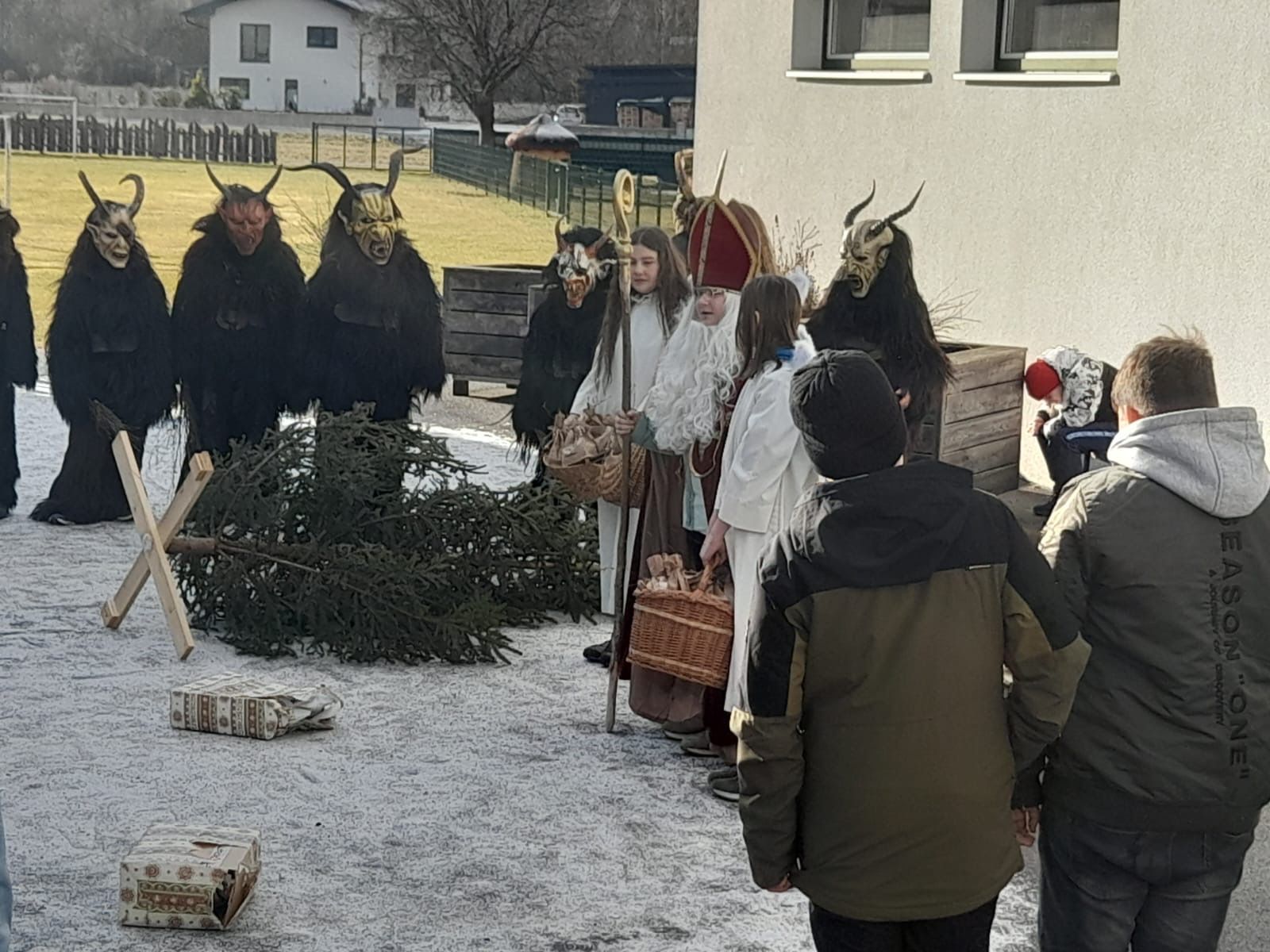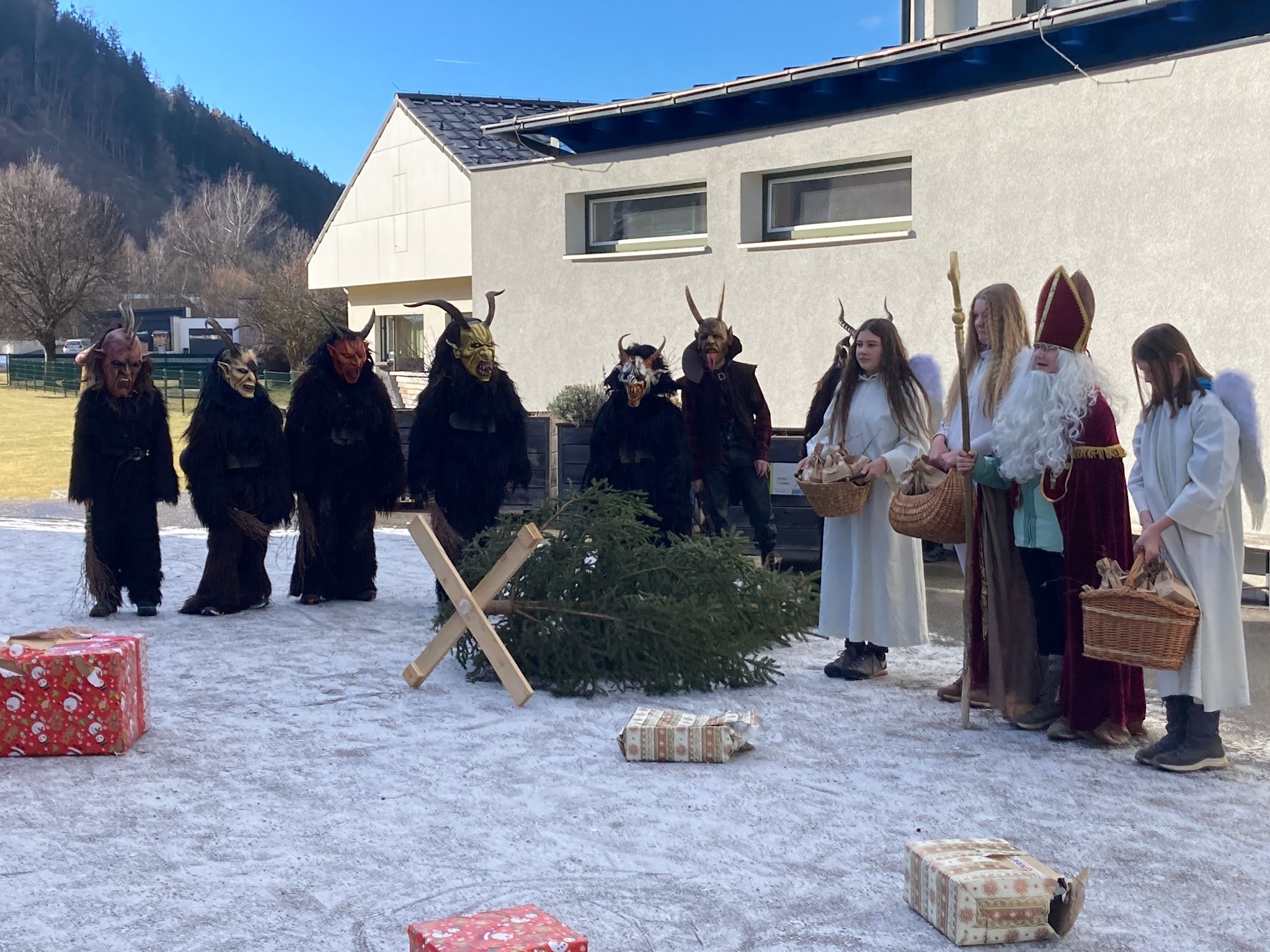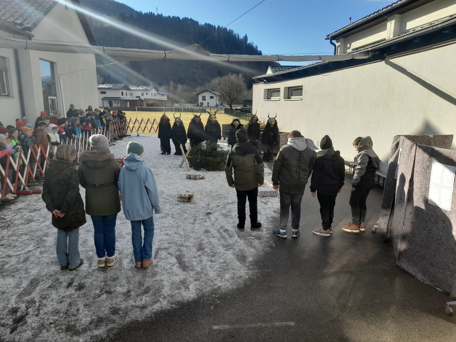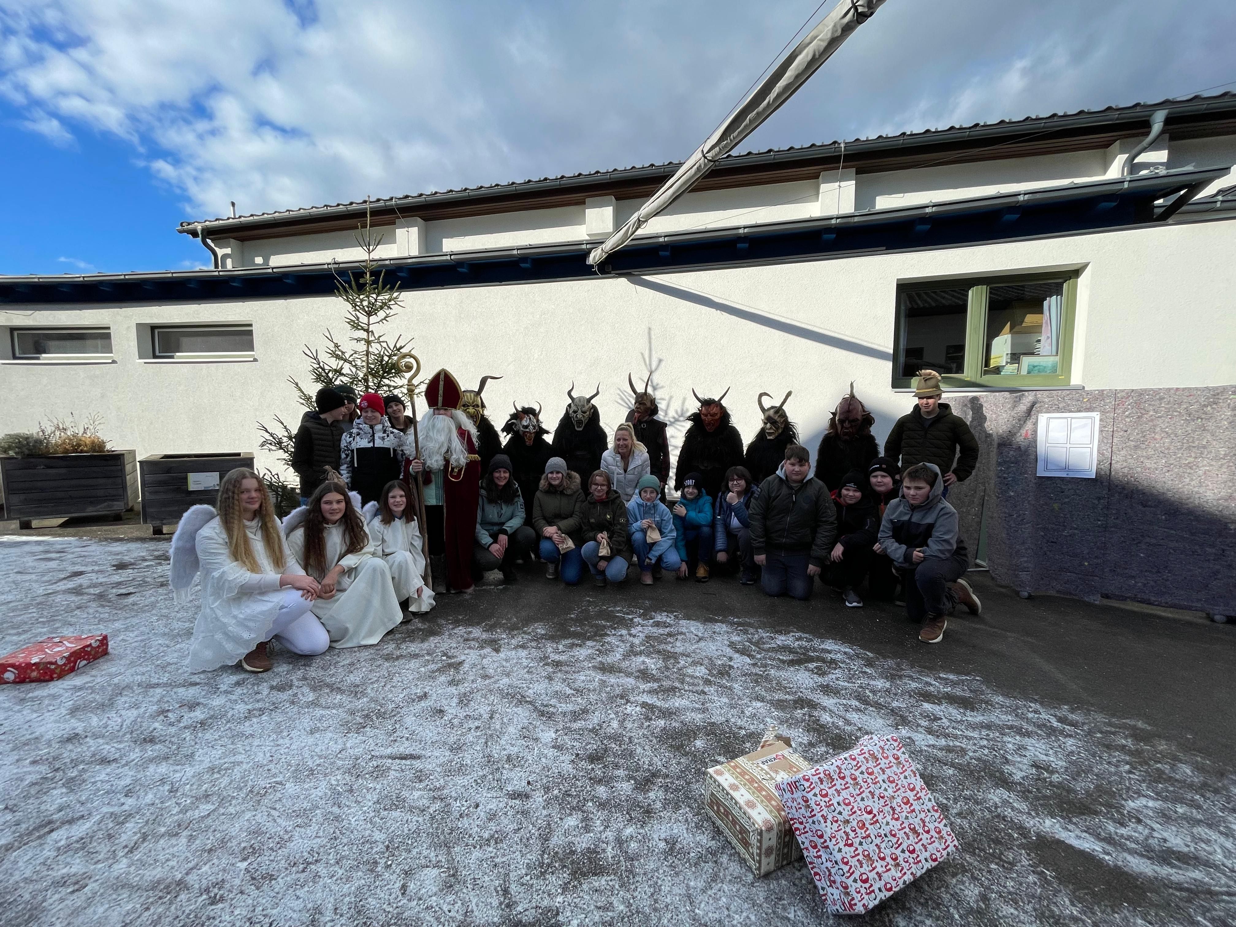 Am 5. Dezember, dem traditionellen Krampustag, fand im Schulhof eine besondere Aufführung statt: Die Brauchtumsgruppe der MS Stein Enns veranstaltete ein Krampusspiel, in welchem die Schüler und Schülerinnen als Krampusse, Kinder, Nikolaus und Engel ihr Bestes gaben. Im Mittelpunkt des Stücks stand der Gedanke des gegenseitigen Respekts. Die Kinder wurden dazu angeregt, über ihr eigenes Verhalten nachzudenken und sich bewusst zu machen, wie wichtig es ist, wertschätzend und respektvoll miteinander umzugehen. Die Aufführung endete schlussendlich mit dem Einzug des Heiligen Nikolaus mit seinen Engeln, die auch noch an alle Schüler und Schülerinnen die Nikolaussackerl verteilten.