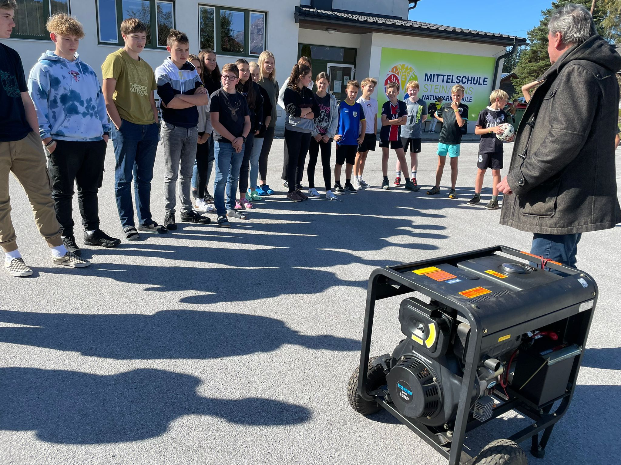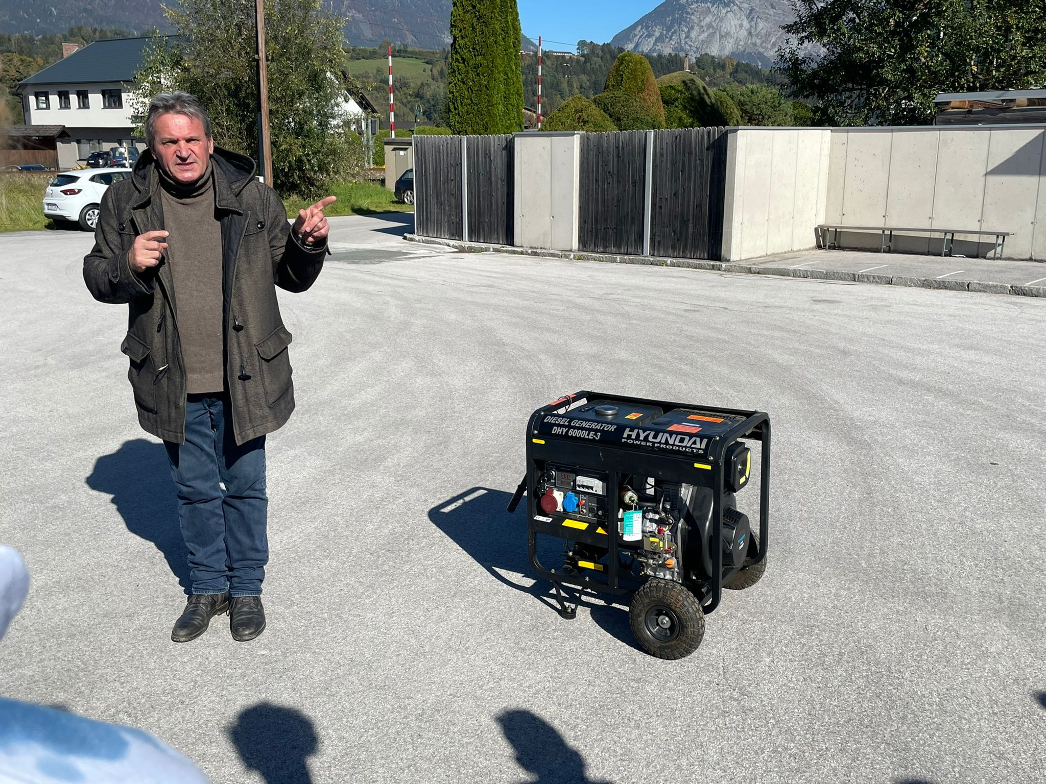 Herr Unger erklärte an seinem eigenen 6 KW-Notstromaggregat, welche lebensnotwendigen Einrichtungen im Falle eines „black outs“ damit versorgt werden können.
