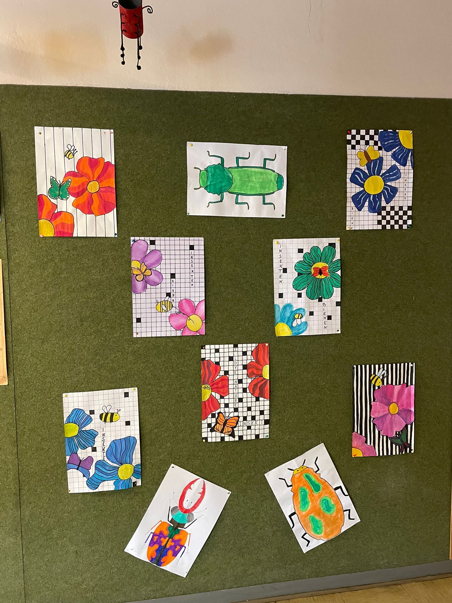 Zum heurigen Thema „Insekten“ veranstaltete die 1. Klasse gemeinsam mit Eva Huber vom Naturpark Sölktäler eine Bestäuberparty. Die 2. Klassen gestalteten im Biologieunterricht mit großem Eifer die Naturparkwand in der Pausenhalle neu und erstellten dazu Plakate, welche sie im Unterricht präsentierten. Weiters wurden im BE-Unterricht viele wunderschöne Insektenbilder gezeichnet und Bienen und Marienkäfer aus Dosen gebastelt. Für unsere 10-Jahreszeiten-Hecke wurden aus Tontöpfen Ohrwurmquartiere gebaut. Außerdem hat Frau Schweiger ihre „Umweltbiene Susi“, welche einst als Figur beim Narzissenfest diente, für den Tag der Biodiversität mit viel Hingabe restauriert und der Schule zur Verfügung gestellt.