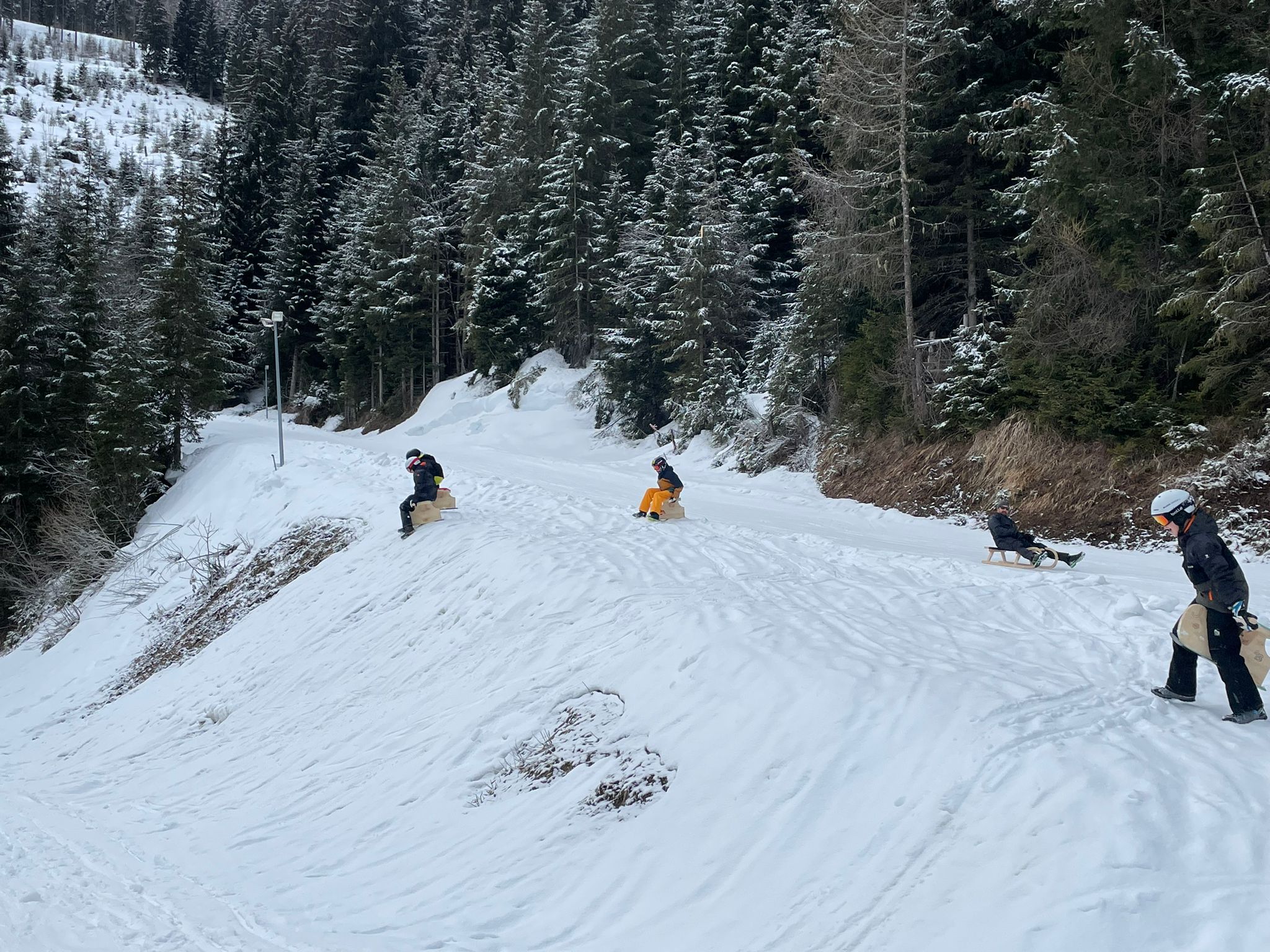 Nach zweimaliger Fahrt über die Rodelbahn waren alle begeistert, die Klumper haben den Praxistest bestanden!