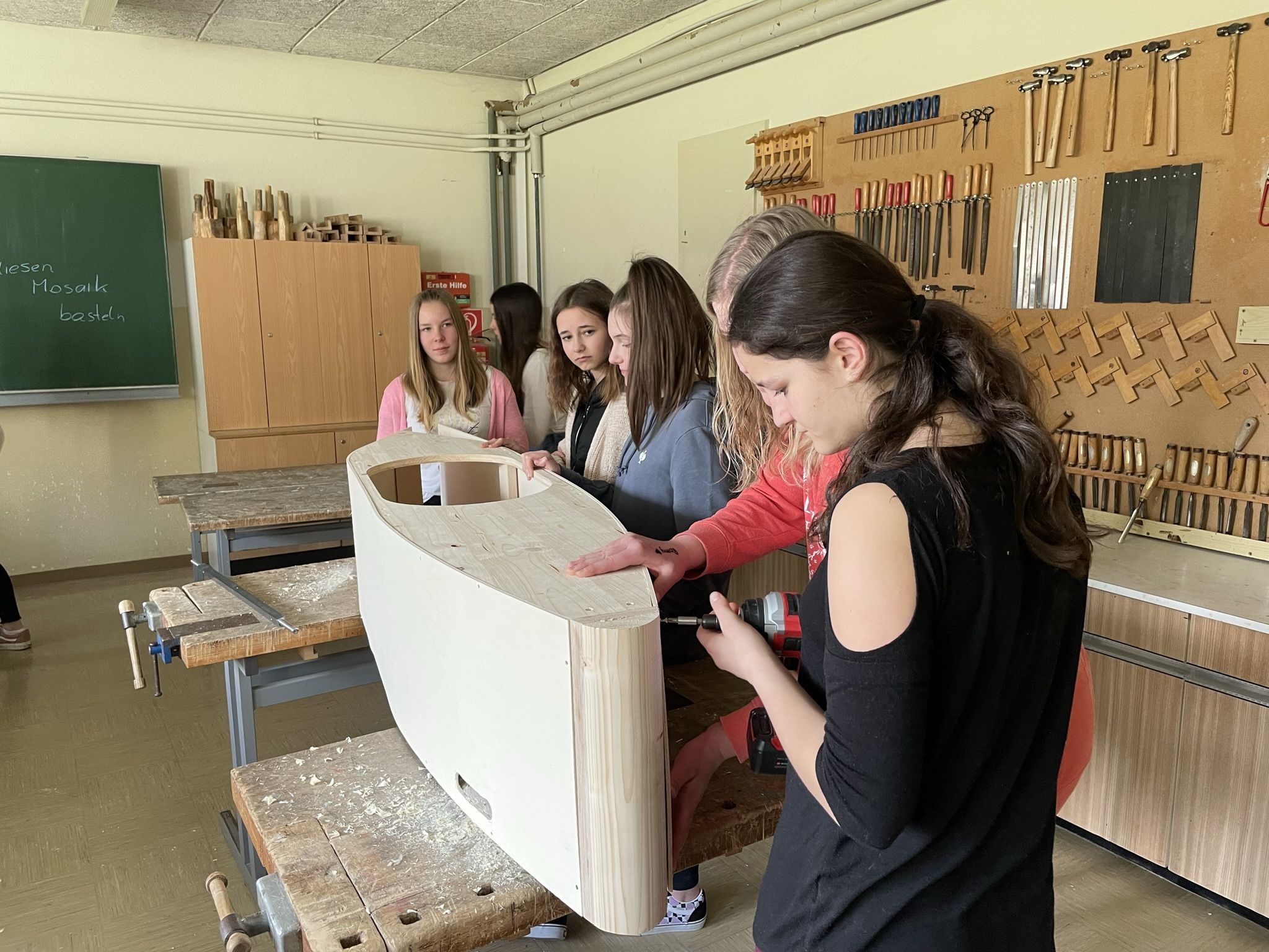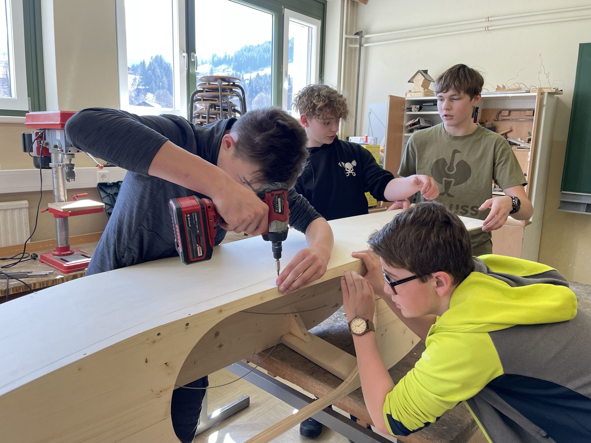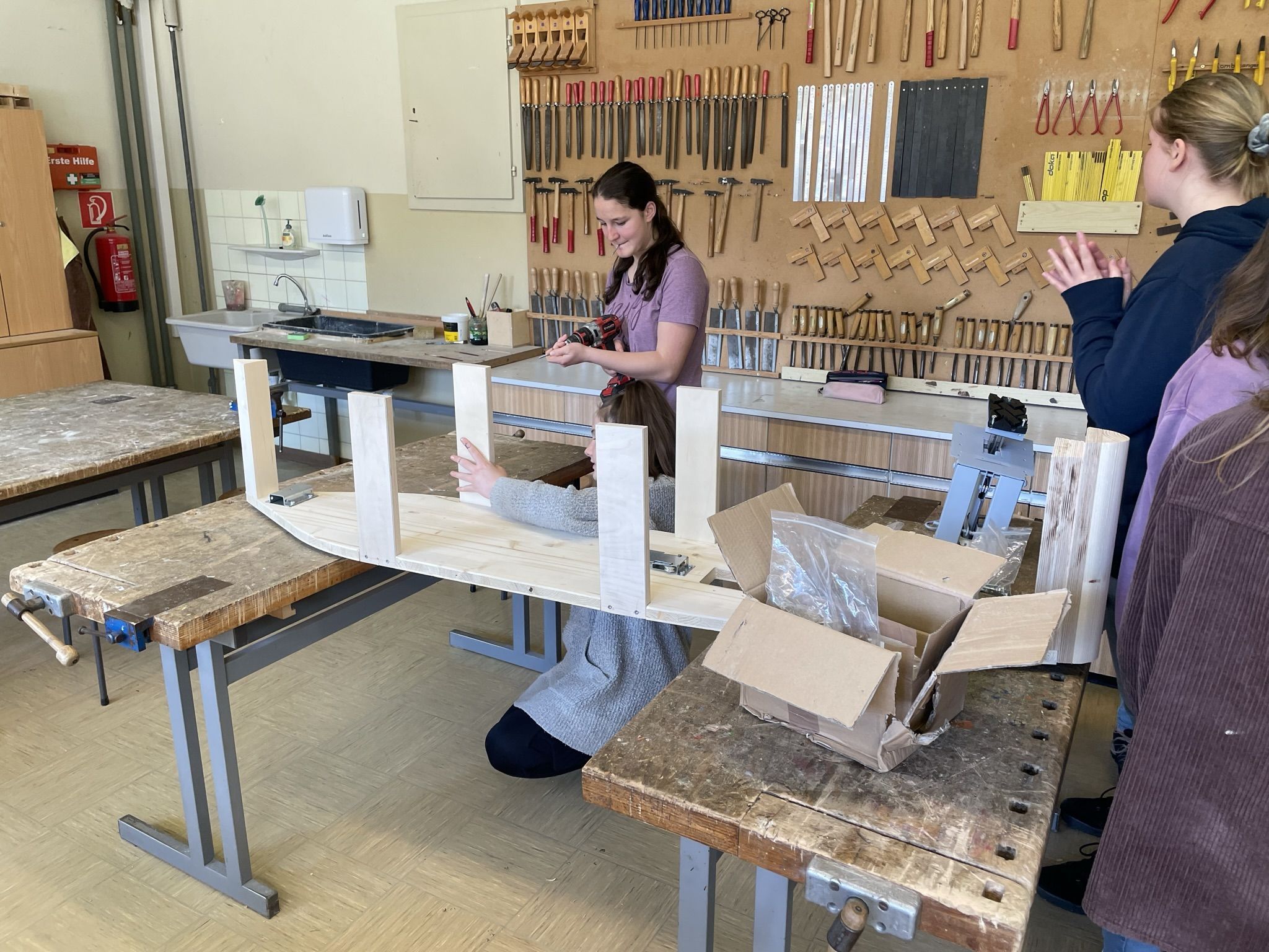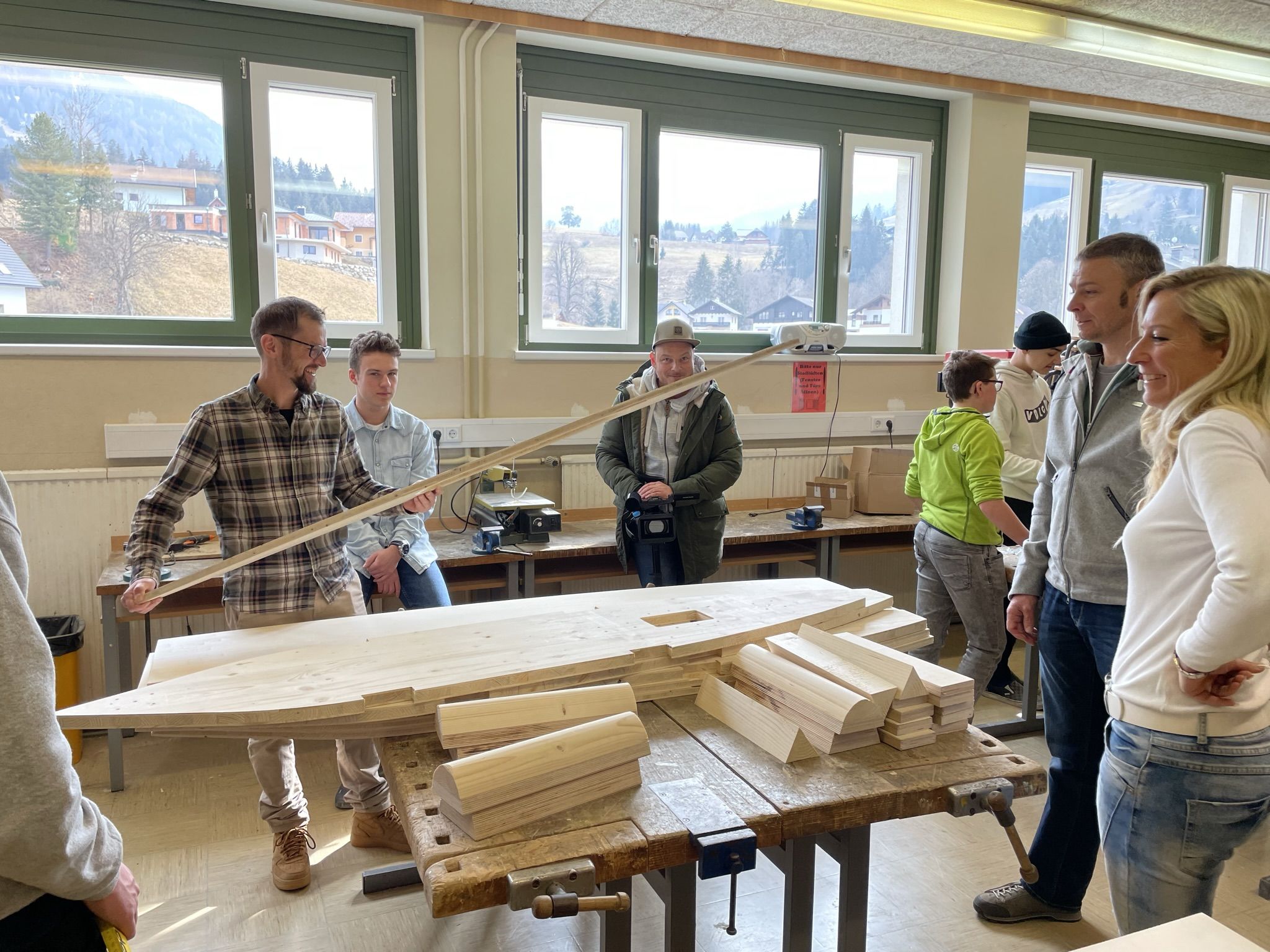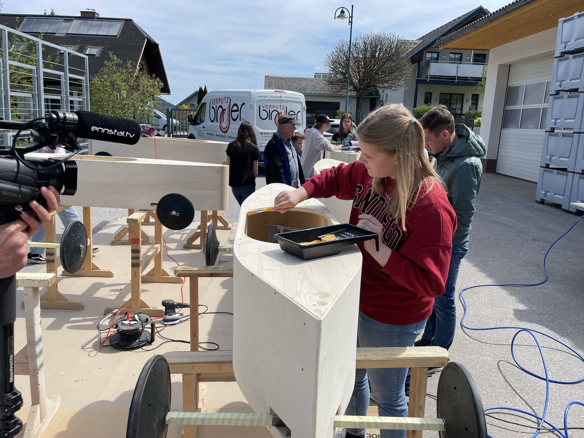 Im Unterrichtsfach technisches Design haben unsere 4. Klassen drei sogenannte Juniorseifenkisten, unter der Leitung von Herrn Fischbacher und Herrn Gabriel, für die Brauchtumsgruppe Gröbming zusammengebaut. Nach 4 Wochen anstrengender und akribischer Arbeit an den Kisten wurden wir von der Brauchtumsgruppe Gröbming in die Tischlerei Stangl nach Pruggern eigeladen, wo die Boliden abgeschliffen und lackiert wurden. Unsere Schüler und Schülerinnen durften dabei selbst Hand anlegen. Der Chef persönlich gab uns noch eine Führung durch die Tischlerei und brachte unseren Schülern und Schülerinnen das Handwerk des Tischlers näher.