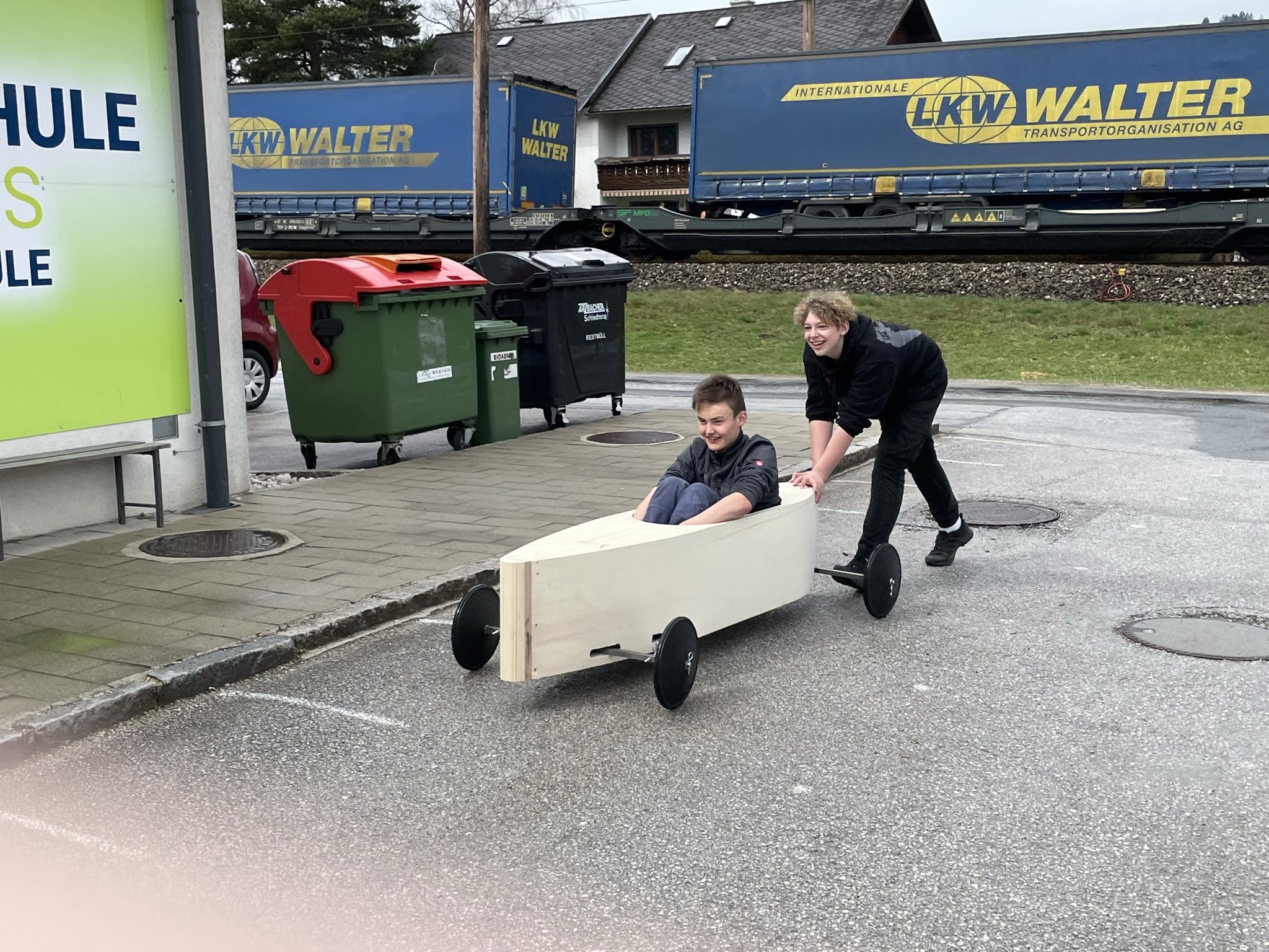 Unser Schüler und Schülerinnen haben dabei die Ehre, ihre selbstgebauten Seifenkisten zu steuern und vielleicht auch den Sieg nach Hause zu fahren.