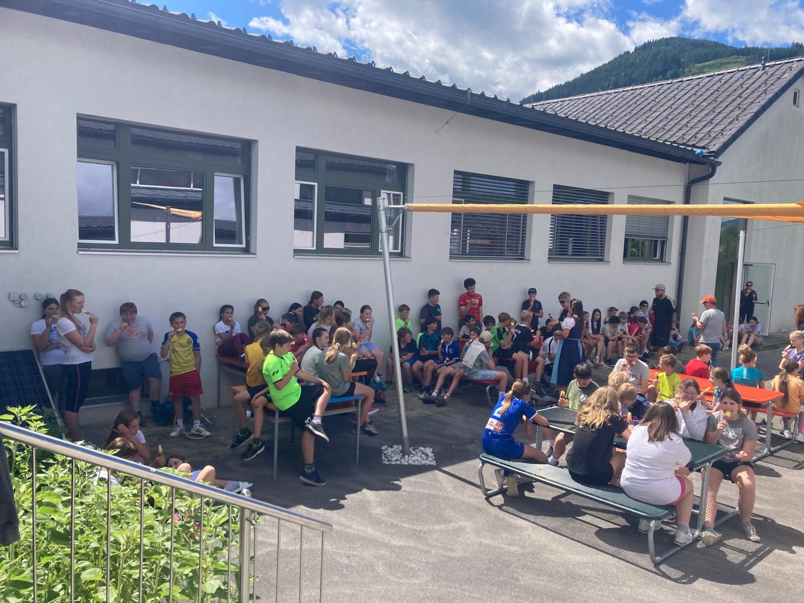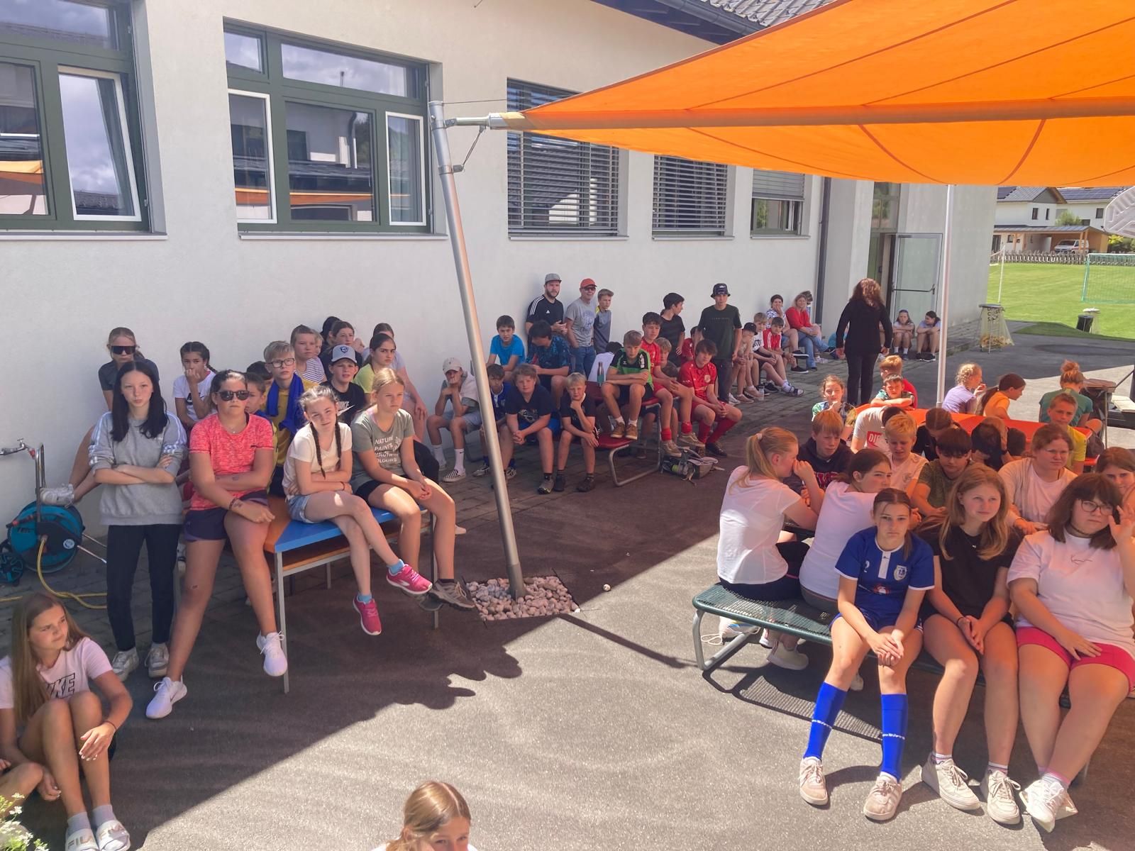 Am vorletzten Schultag ging wieder unser traditionelles Sportfest über die Bühne. Die Kinder konnten sich in verschiedensten Sportarten wie Völkerball, Seilziehen und Fußball miteinander messen. Dabei stand nicht das Gewinnen im Vordergrund, sondern der Spaß an der Bewegung und die Stärkung der Klassengemeinschaft.