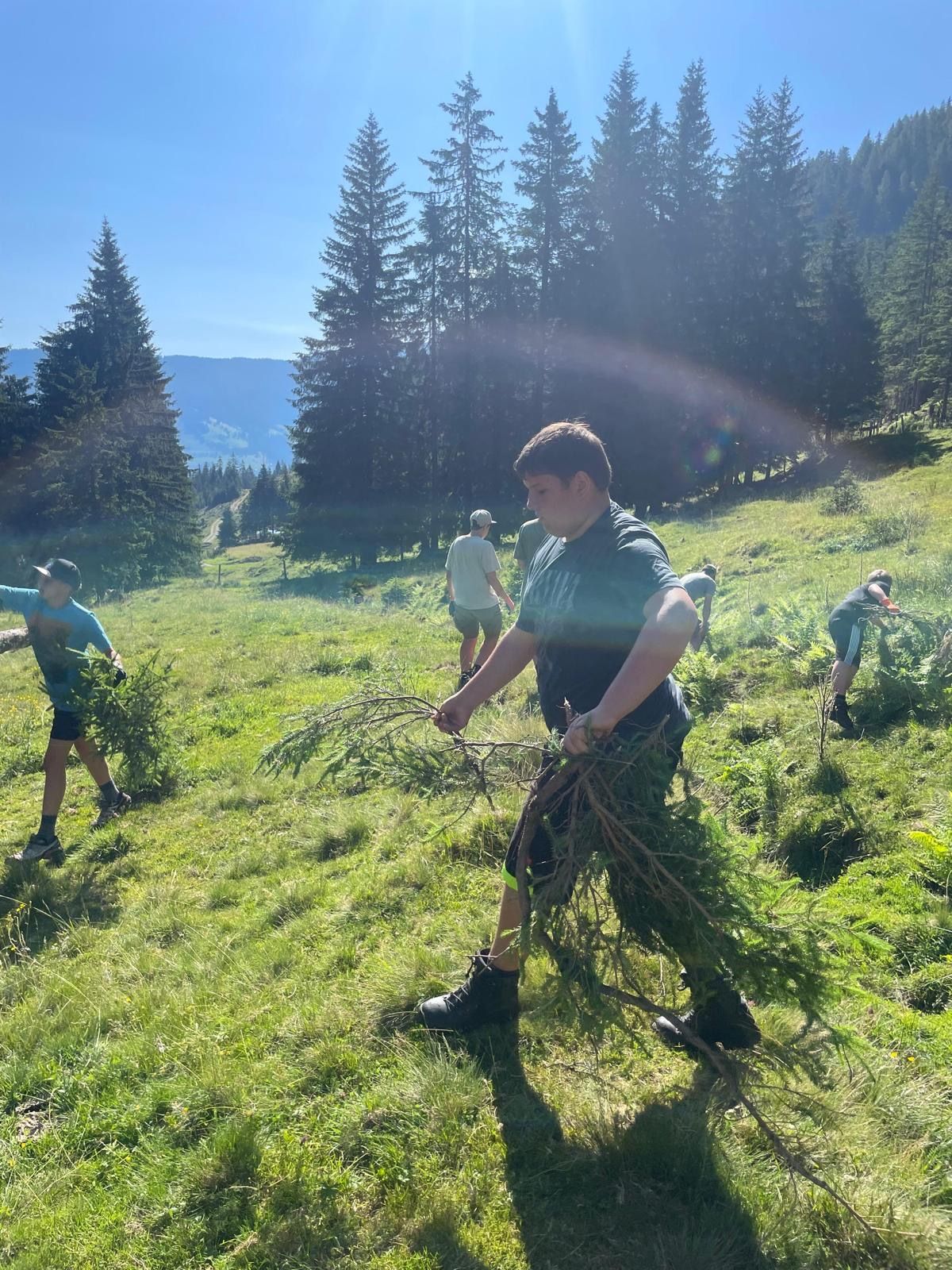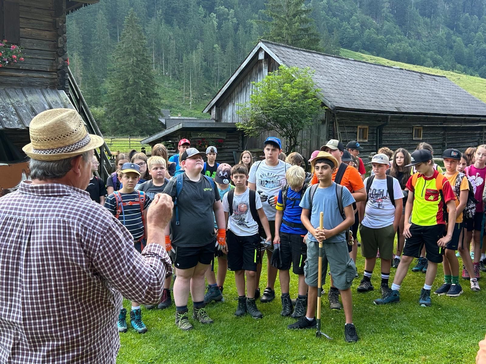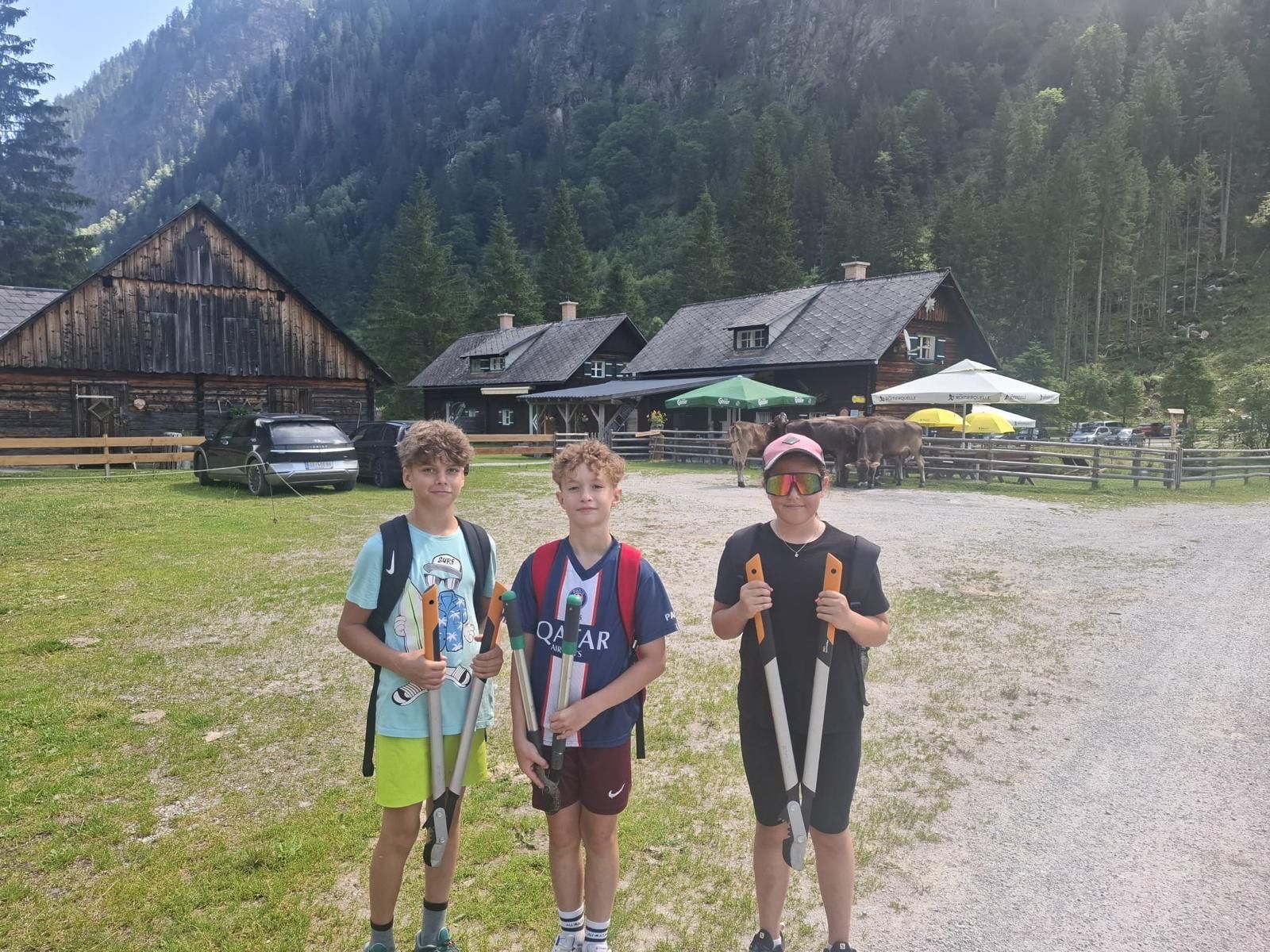 Der zweite Ausflug führte die ersten und zweiten Klassen zur Zauneralm in der Kleinsölk und die dritte Klasse nach Öblarn. Um die Alm frei von kleinen Bäumen, Gebüschen und anderen Zwergsträuchern zu halten, nahm die Mittelschule Stein/Enns erstmals an einer Schwenden-Aktion teil. Diese bot den Schülerinnen und Schülern Gelegenheit, nicht nur in die Natur einzutauchen, sondern sich auch aktiv für ihren Erhalt einzusetzen. Die Kinder erfuhren auch viel über das Leben in den Bergen, die Almwirtschaft und traditionelle Arbeitsweisen. Natürlich durften frische Roggenkrapfen mit Steirerkas nicht fehlen. In geselliger Runde wurde gegessen, gelacht und gespielt – ein echtes Gemeinschaftserlebnis.