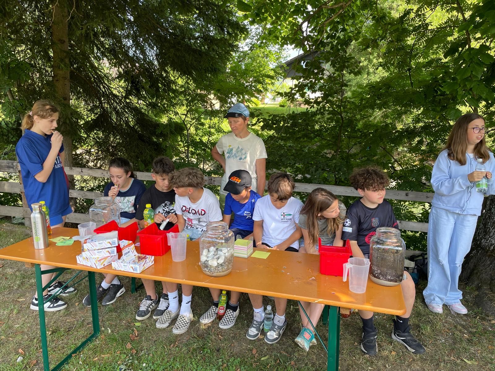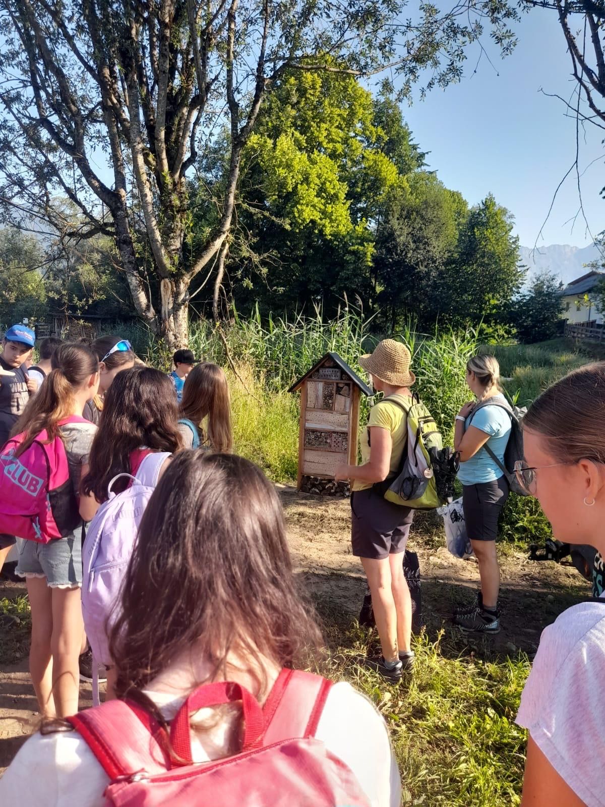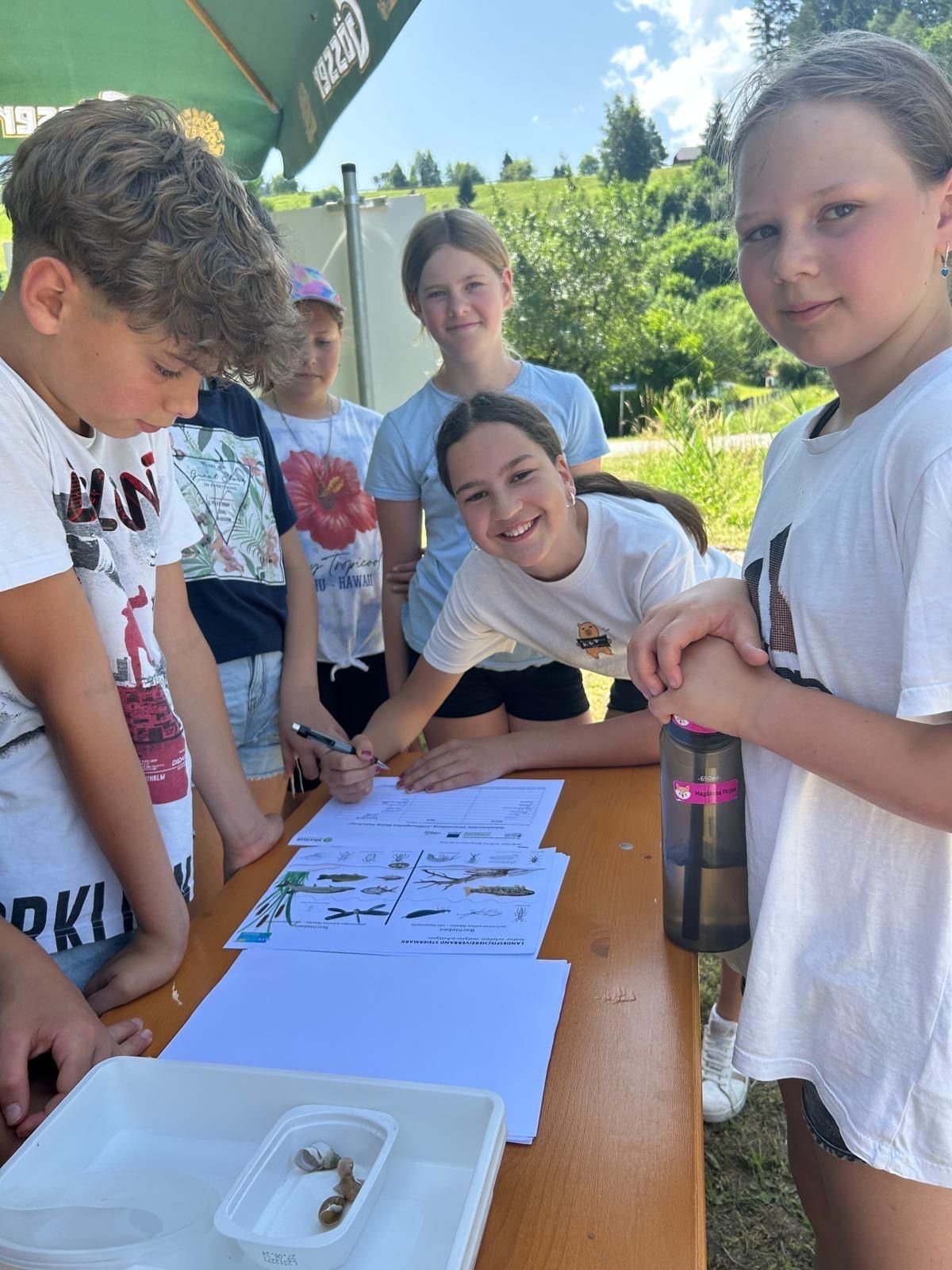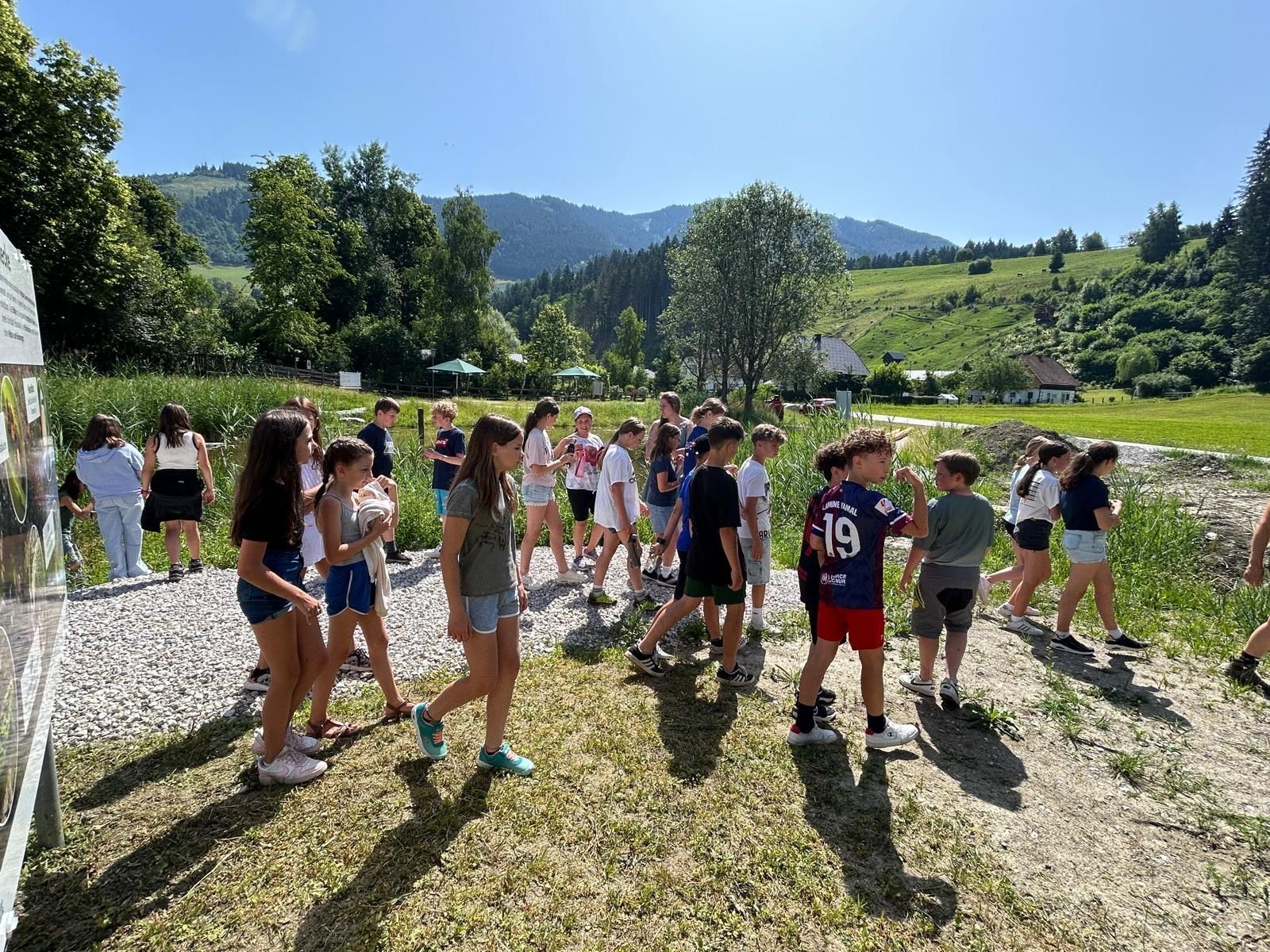 Am dritten Ausflugstag besuchten auch die zweiten Klassen das Biotop nach der Neuerrichtung. Die beiden Klassen kannten das Biotop in seinem Urzustand schon aus dem Vorjahr und durften nun beim neu errichteten Biotop Stationen zum Thema „Wasser“, sowie den heimischen Pflanzen und Tieren, erleben. Das von der dritten Klasse selbst gebaute Insektenhotel war ein besonderes Highlight. Zum Abschluss dieses sommerlichen Tages kühlten sich alle in der Tafel ab.