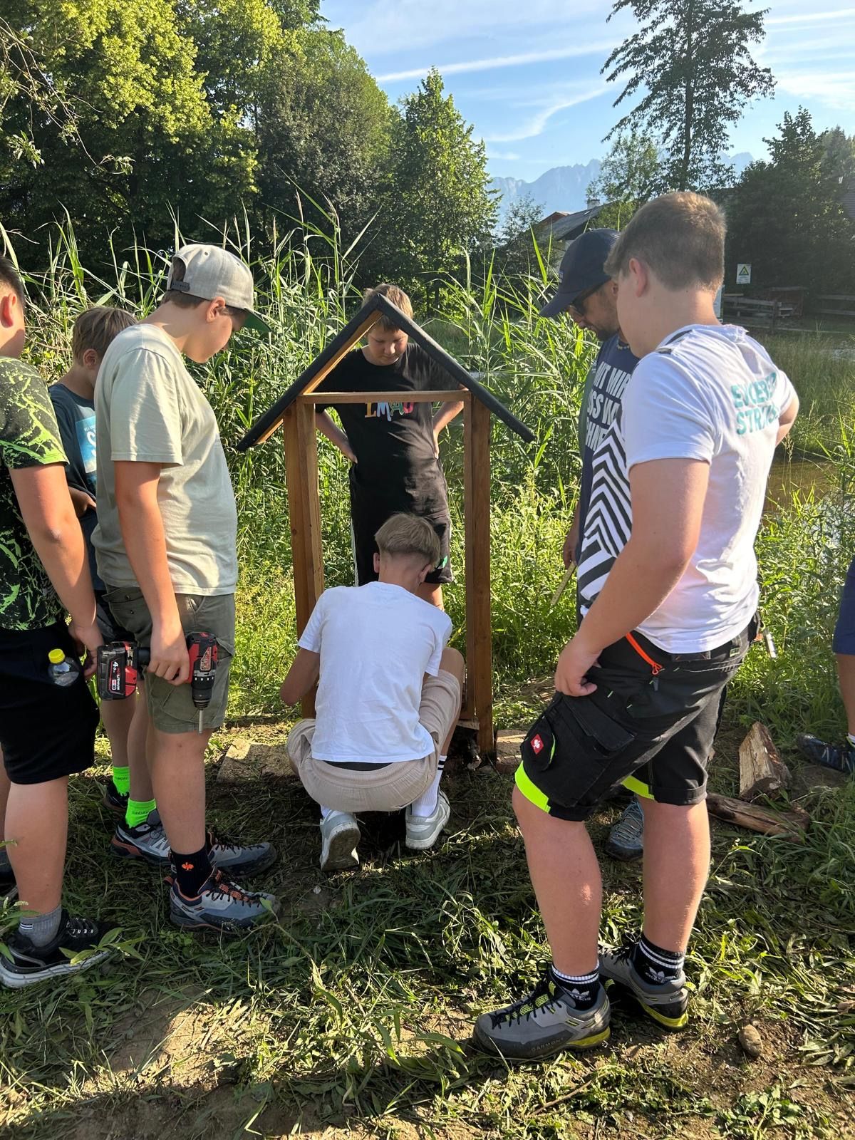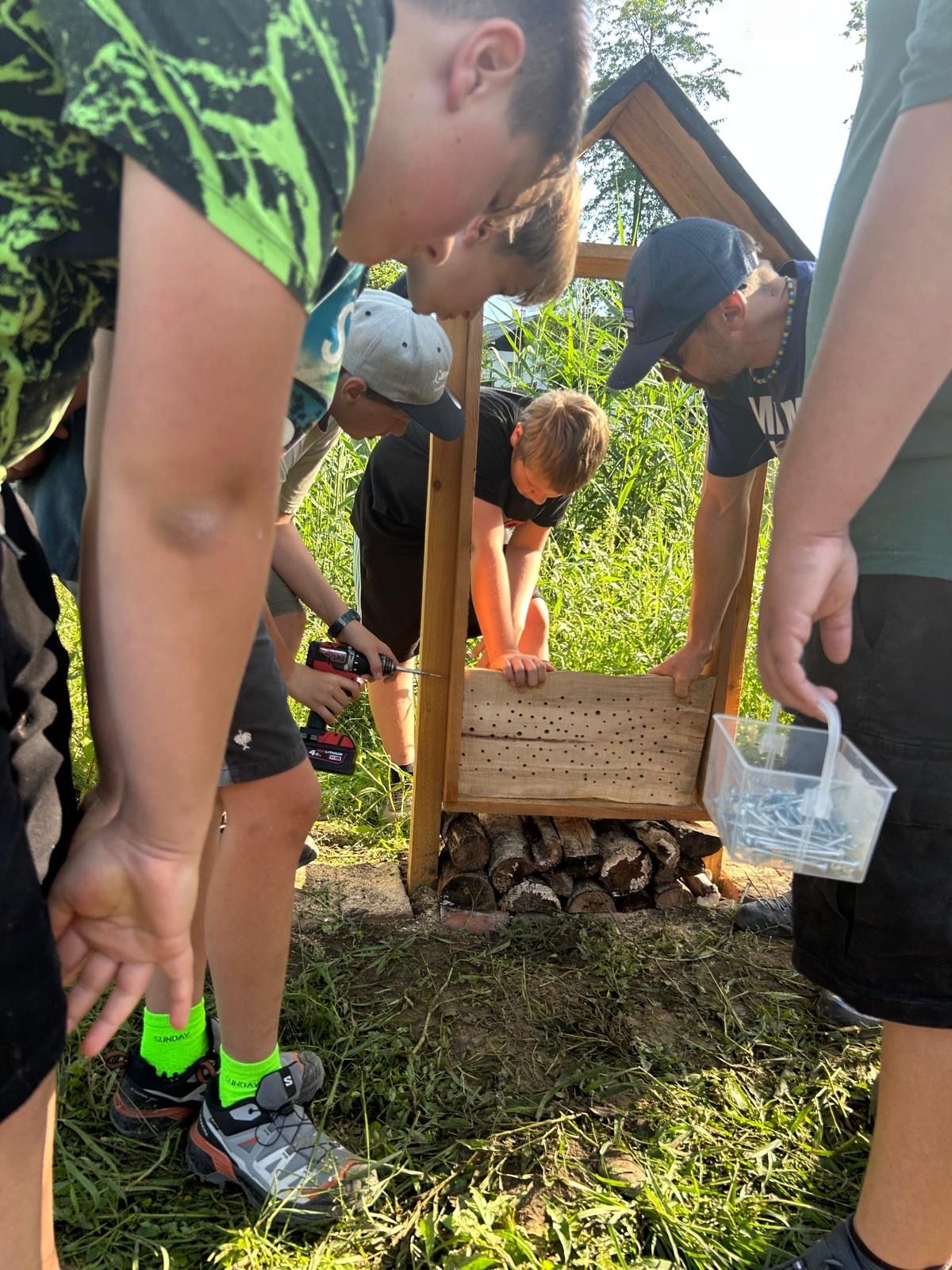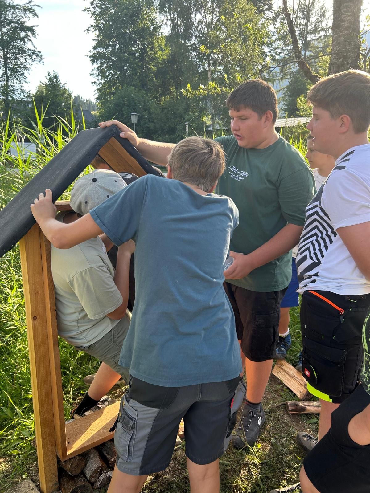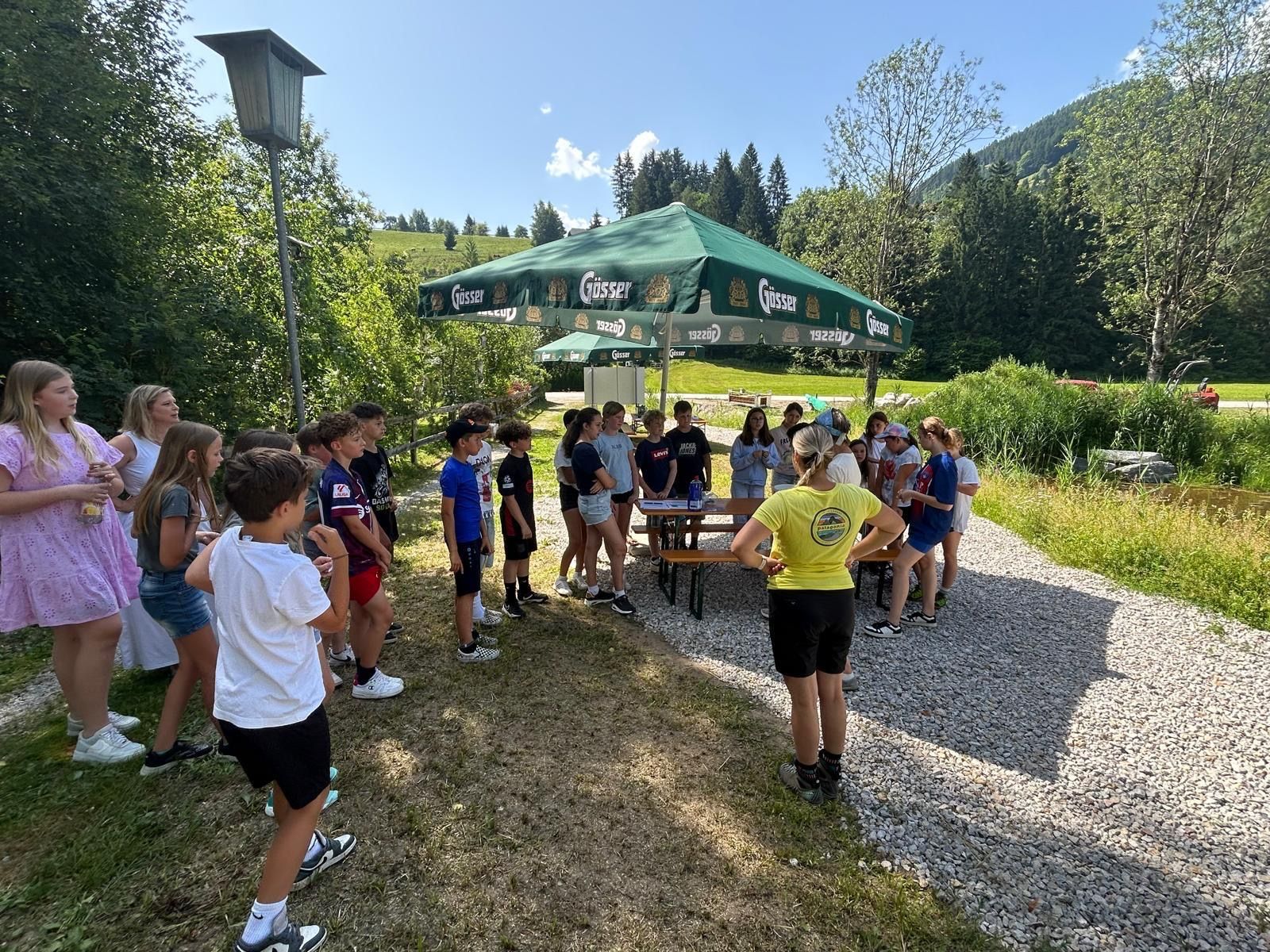 Am dritten Ausflugstag besuchten auch die zweiten Klassen das Biotop nach der Neuerrichtung. Die beiden Klassen kannten das Biotop in seinem Urzustand schon aus dem Vorjahr und durften nun beim neu errichteten Biotop Stationen zum Thema „Wasser“, sowie den heimischen Pflanzen und Tieren, erleben. Das von der dritten Klasse selbst gebaute Insektenhotel war ein besonderes Highlight. Zum Abschluss dieses sommerlichen Tages kühlten sich alle in der Tafel ab.