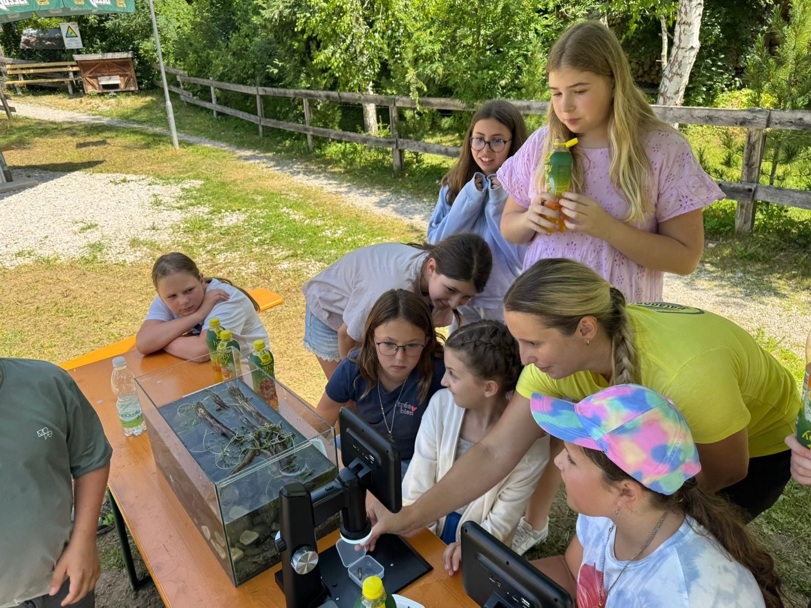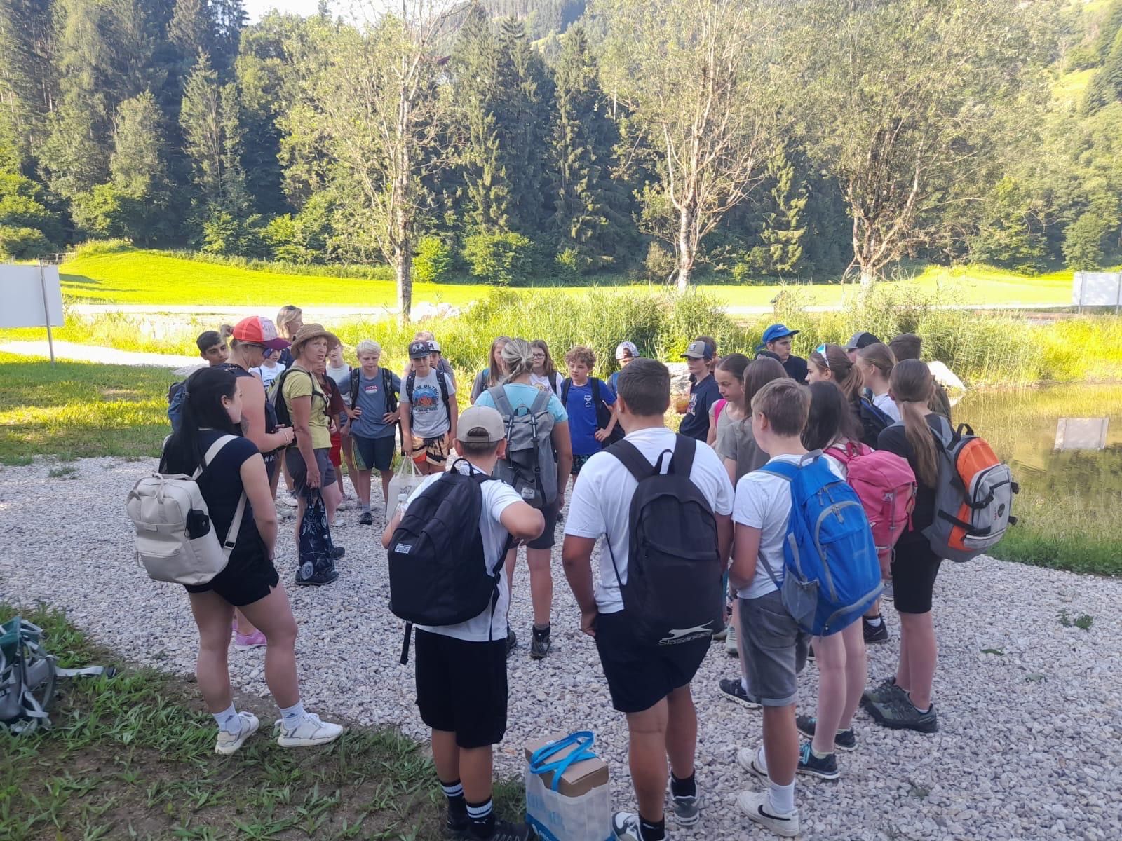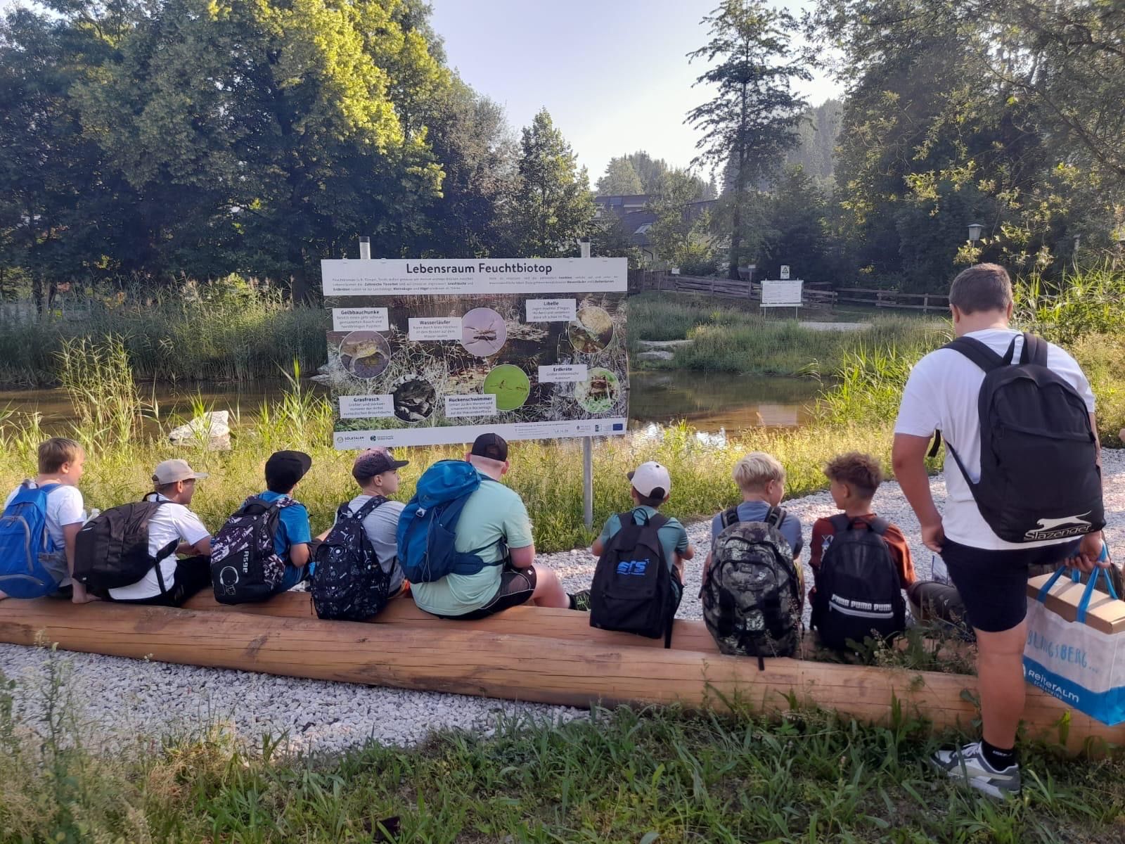 Am ersten Ausflugstag ging es für die Schülerinnen und Schüler der ersten Klassen zum neu errichteten Biotop in Stein/Enns. Vor Ort wurden die Kinder in Gruppen eingeteilt. Interaktive Stationen zum Thema „Wasser“ luden zum Staunen und Entdecken ein. So konnten die Kinder erfahren, wie sich die Versiegelung von Flächen auf den natürlichen Wasserhaushalt auswirkt und weshalb Wasserläufer sich auf der Wasseroberfläche fortbewegen können ohne unterzugehen. Zum Abschluss gab es noch ein Quiz zum Thema Biotop. Es war ein gelungener und interessanter Ausflug bei sommerlichem Wetter.