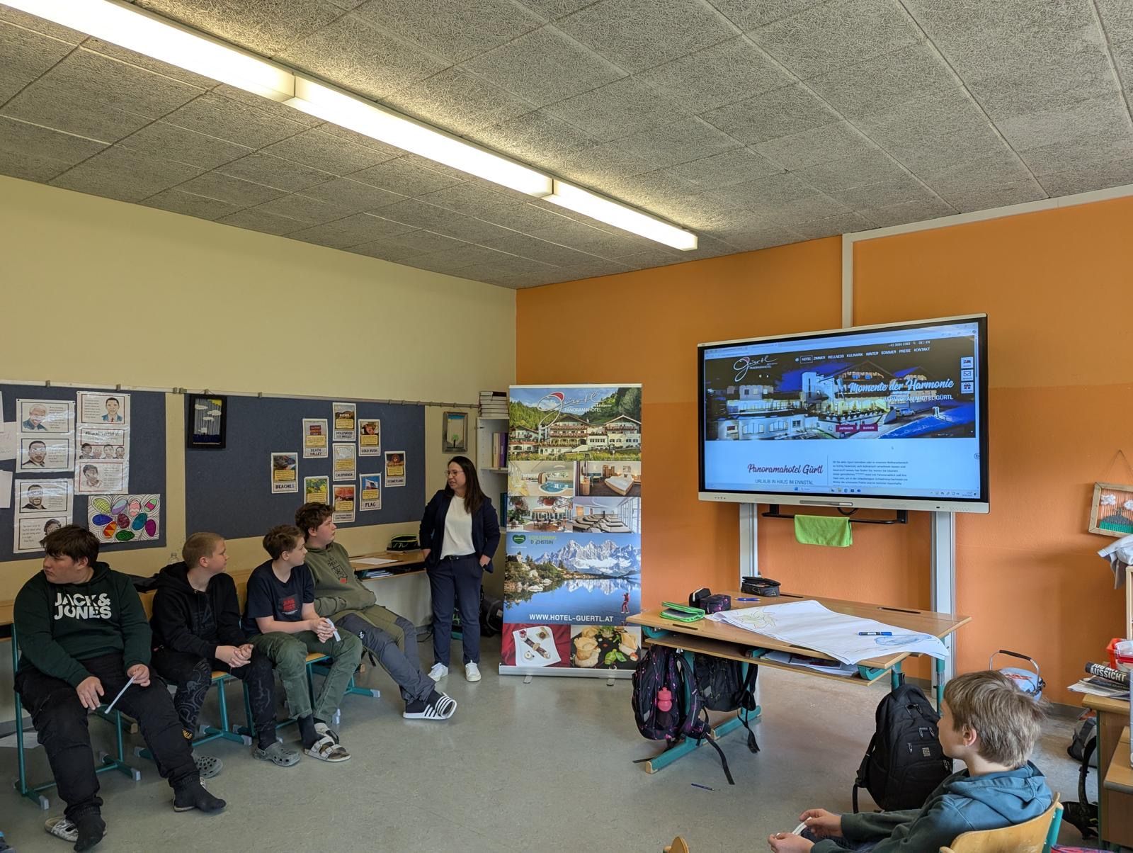 Unter der fachkundigen Leitung von Frau Mag. Peer-Kassar wurden dabei unseren Schülerinnen und Schülern die vielfältigen Ausbildungs- und Berufsmöglichkeiten in der Tourismusbranche nähergebracht. In der letzten Einheit besuchte uns Frau Gürtl, die Direktorin des Panoramahotels Gürtl in Haus im Ennstal. Sie berichtete uns aus der Praxis und beantwortete geduldig alle auftauchenden Fragen.