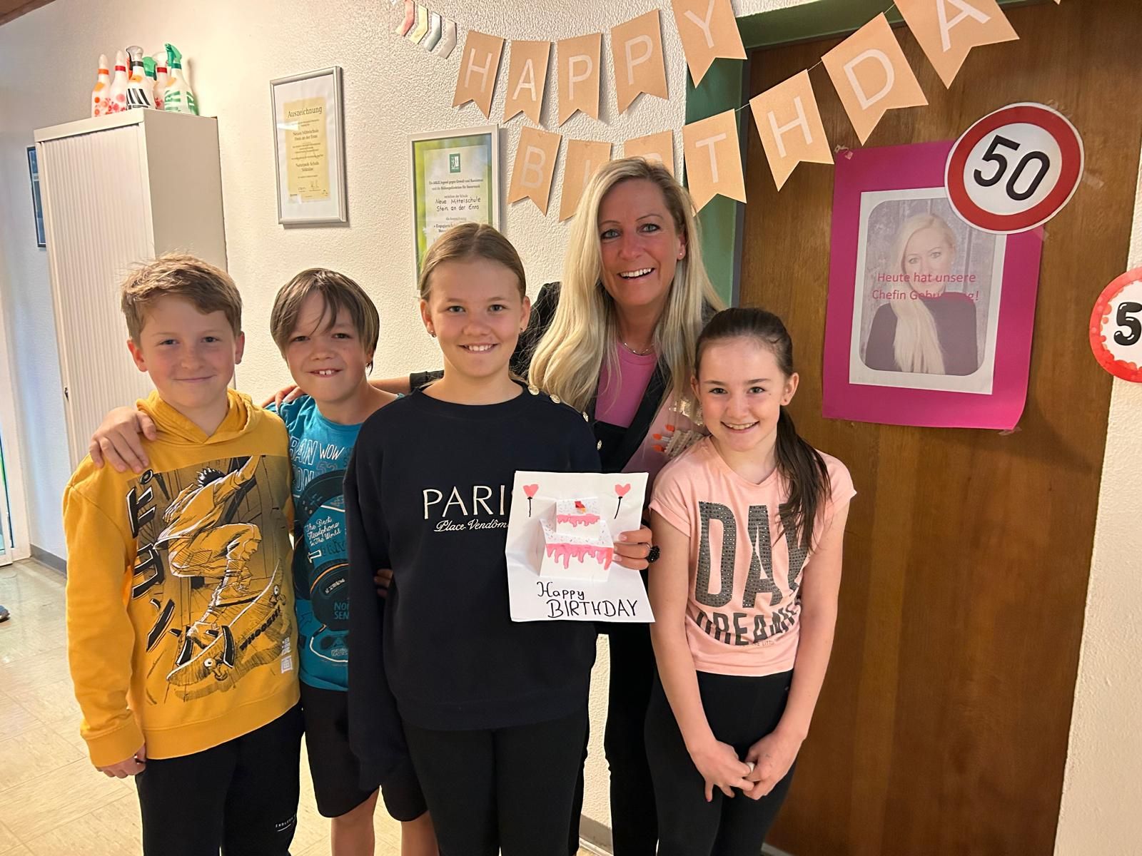 Am vergangenen Donnerstag wurde in der Aula unserer Schule eine besondere Feierlichkeit zelebriert, die die gesamte Schulgemeinschaft begeisterte. Grund hierfür war der 50. Geburtstag unserer geschätzten Direktorin, Frau Patrizia Mattlschweiger. Die Veranstaltung wurde von Schülerinnen und Schülern, Lehrerinnen und Lehrern und Eltern gemeinsam organisiert und war ein voller Erfolg.