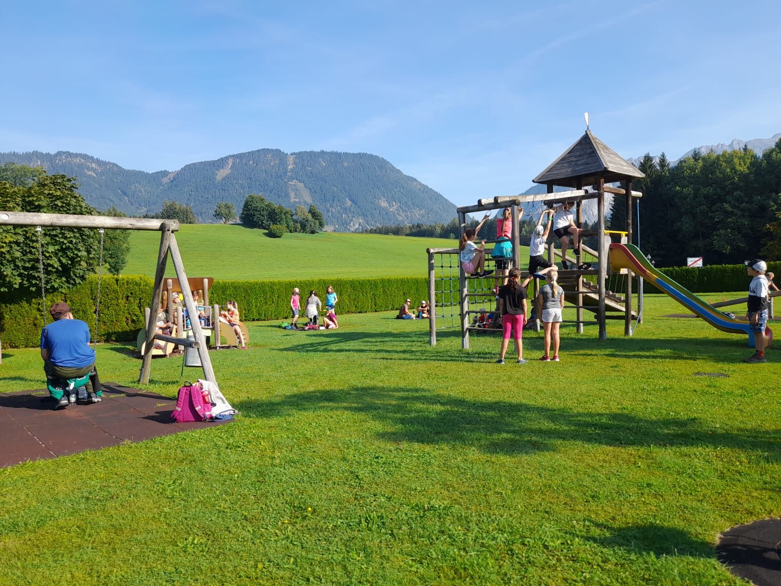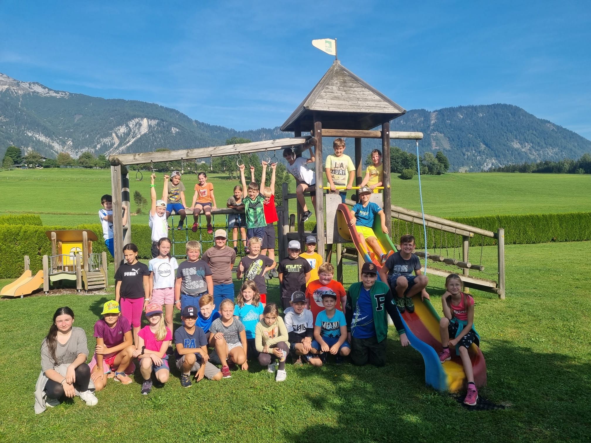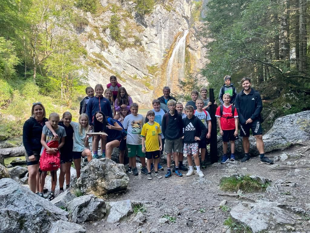 Deren Ziel war das Gasthaus Häuserl im Wald am Mitterberg, wo die Kinder nicht nur den Spielplatz für Kennenlernspiele nutzen konnten, sondern sich auch riesig auf die dortige Ganzjahreseissportanlage freuten – schließlich kann man nicht überall bei sommerlichen Temperaturen Eislaufen. Frisch gestärkt mit einem leckeren Eis machten sich die beiden Klassen gegen Mittag wieder auf den Rückweg zur Schule.