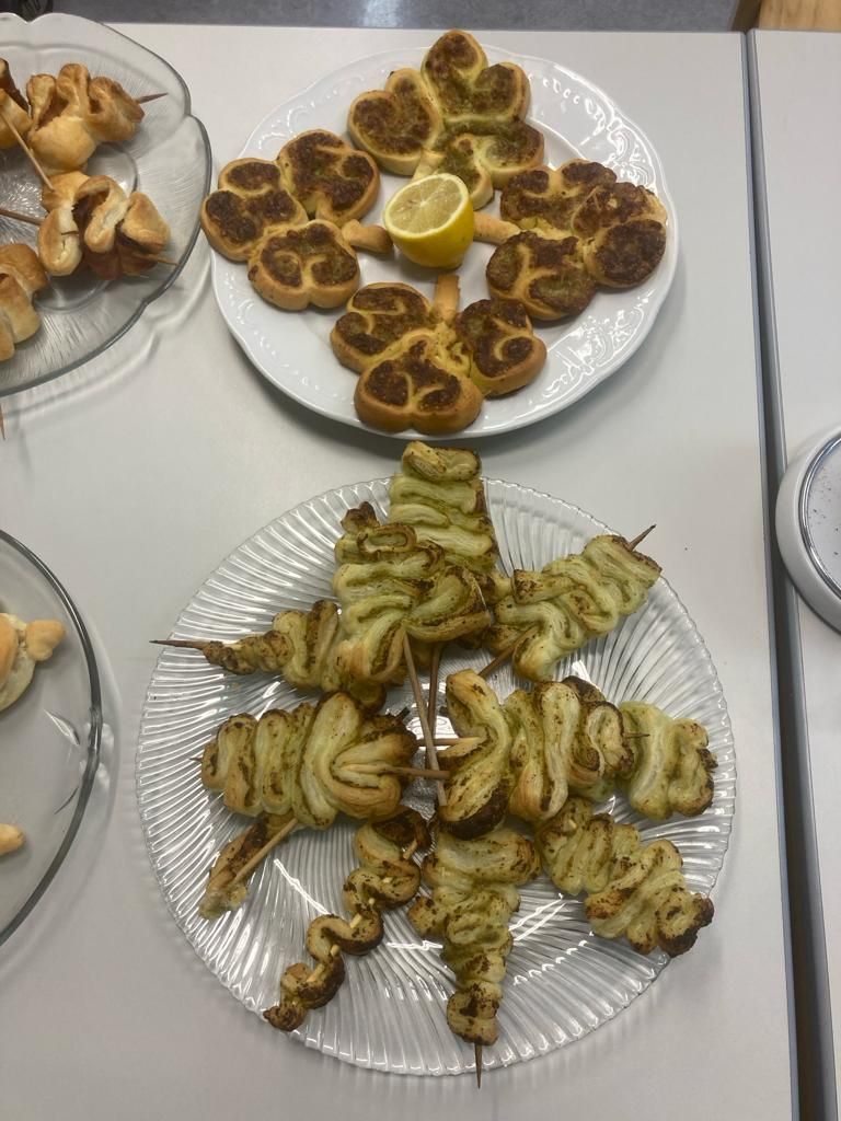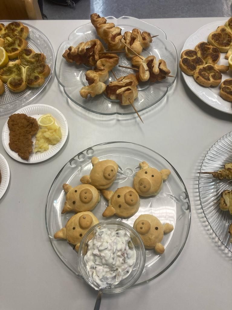 Die kulinarische Reise begann mit einer vielfältigen Auswahl an weihnachtlichen Vorspeisen. Blätterteigbäume mit einer köstlichen Füllung aus Speck oder Pesto sorgten für einen festlichen Start. Als perfekte Einstimmung auf das kommende Silvesterfest wurden kleine Glücksschweinchen mit einer herzhaften Speckfüllung und Kleeblätter aus Pizzateig kreativ zubereitet.