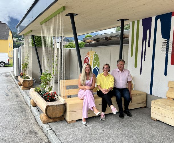 „Coole Spots statt hoaßer Platz“ Es war eines der großen Projekte in diesem Schuljahr: die neue, klimafitte Bushaltestelle, an deren Bau und Gesta...