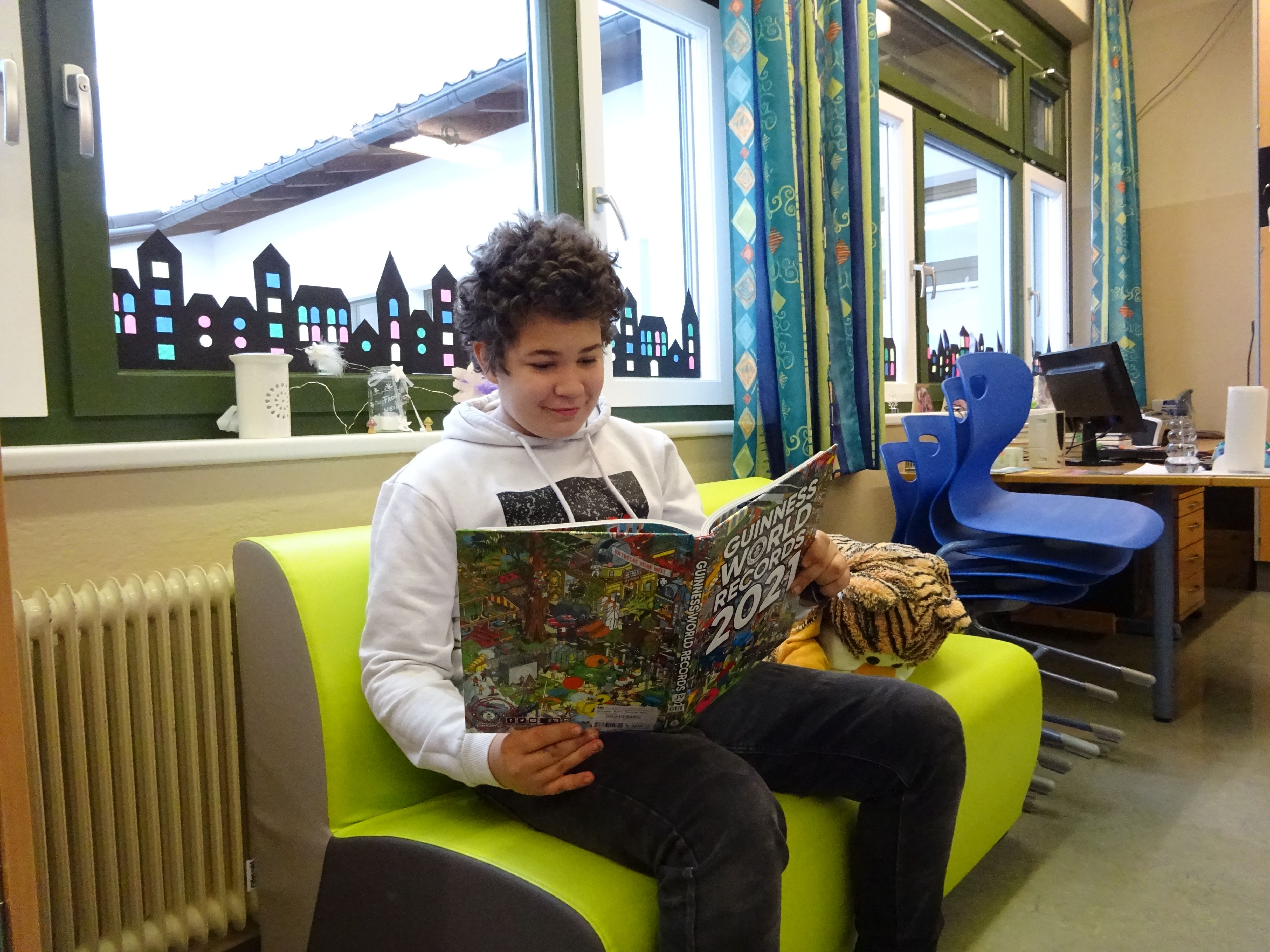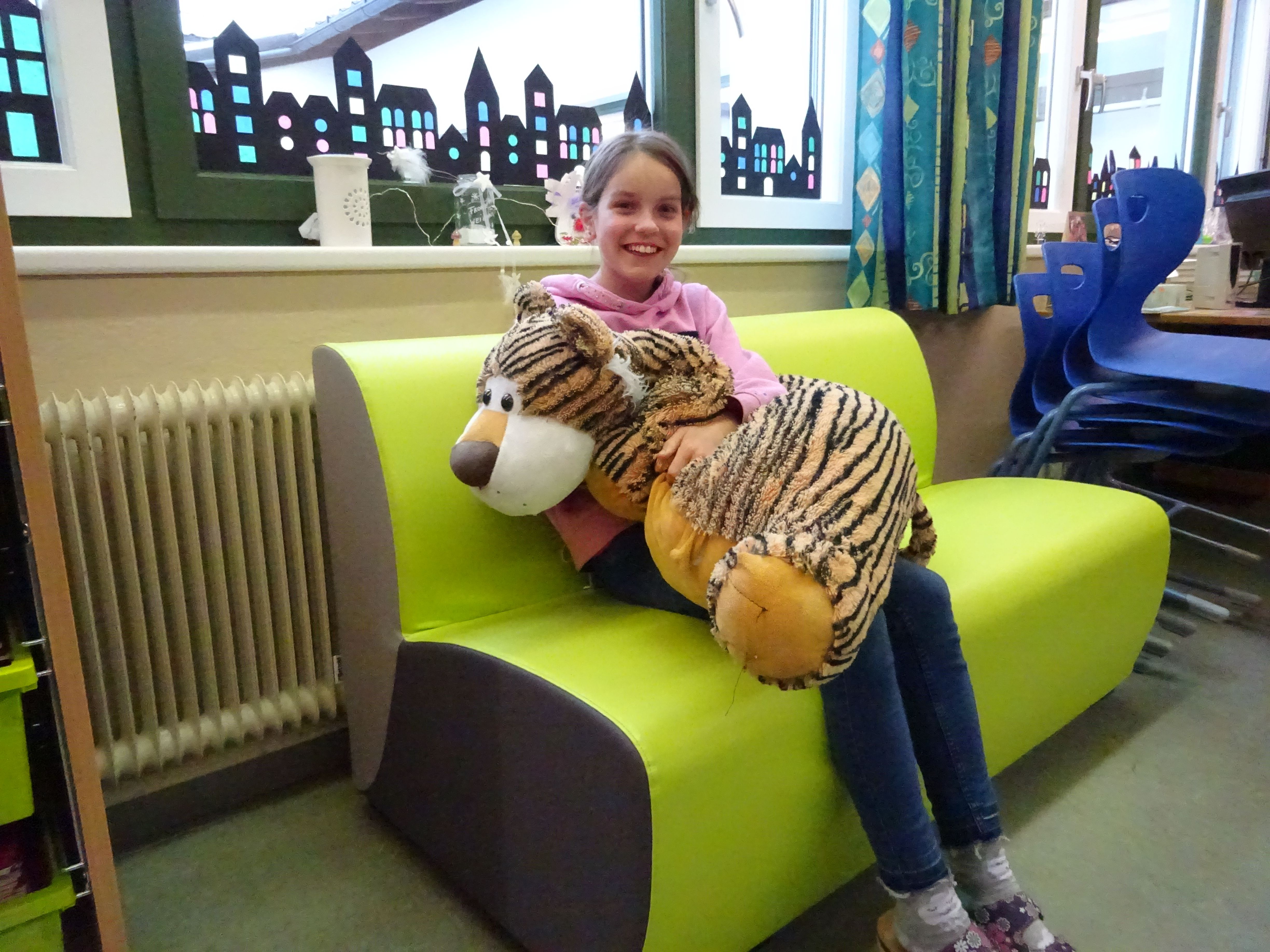 Besonders beliebt sind bei einigen Schüler*innen die großen Pausen in der Bibliothek, in denen „unsere BIBI“ zum Spielen, Schmökern und Entspannen genutzt wird. Auch hat das Bibliotheksmaskottchen schon so manchen getröstet….. Alle unsere Schüler*innen erhalten ab der 1. Klasse die Zugangsdaten für das Onlineportal „Antolin“, und die Vielleser werden mit so manchem „Guatserl“ verwöhnt….