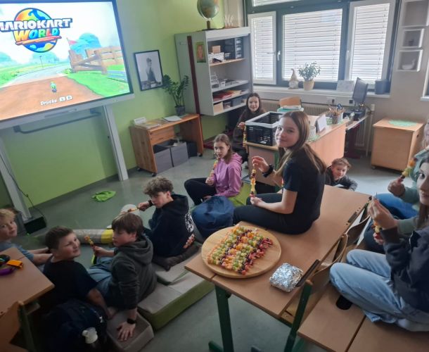 2b Klassenvorstandsstunde: Pizza selbst gemacht und Mario Kart am WhiteboardIn der letzten Klassenvorstandsstunde wurde es in der 2b besonders leck...
