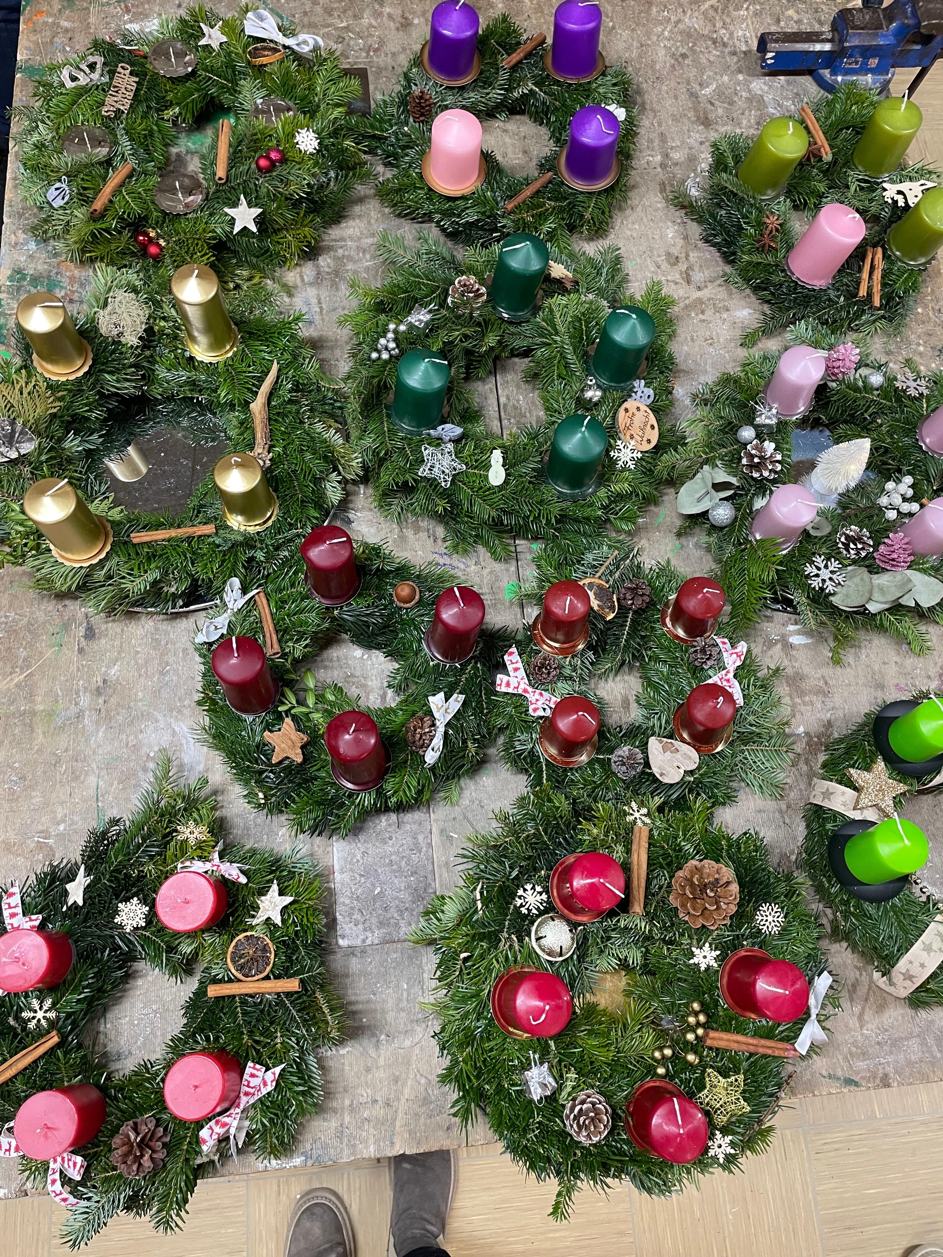 In der unverbindlichen Übung Brauchtum wurden auch heuer wieder Adventkränze gebunden. Dabei gestalteten die Schüler und Schülerinnen ihre Kränze mit Tannenzweigen, Kerzen und Schmuck ganz nach ihren eigenen Ideen. Es war eine kreative und stimmungsvolle Einstimmung auf den Advent.