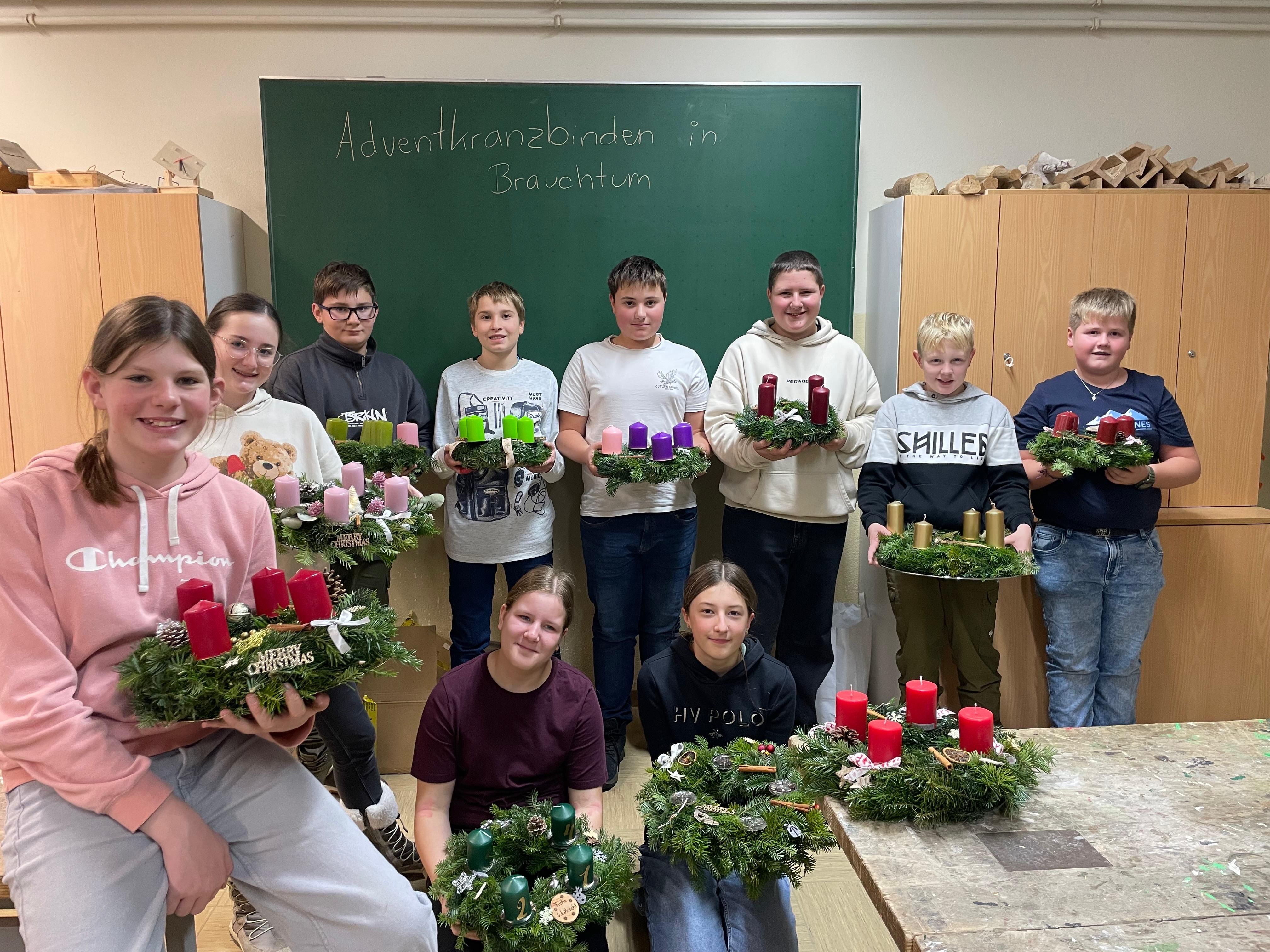 Adventkranzbinden in der Mittelschule