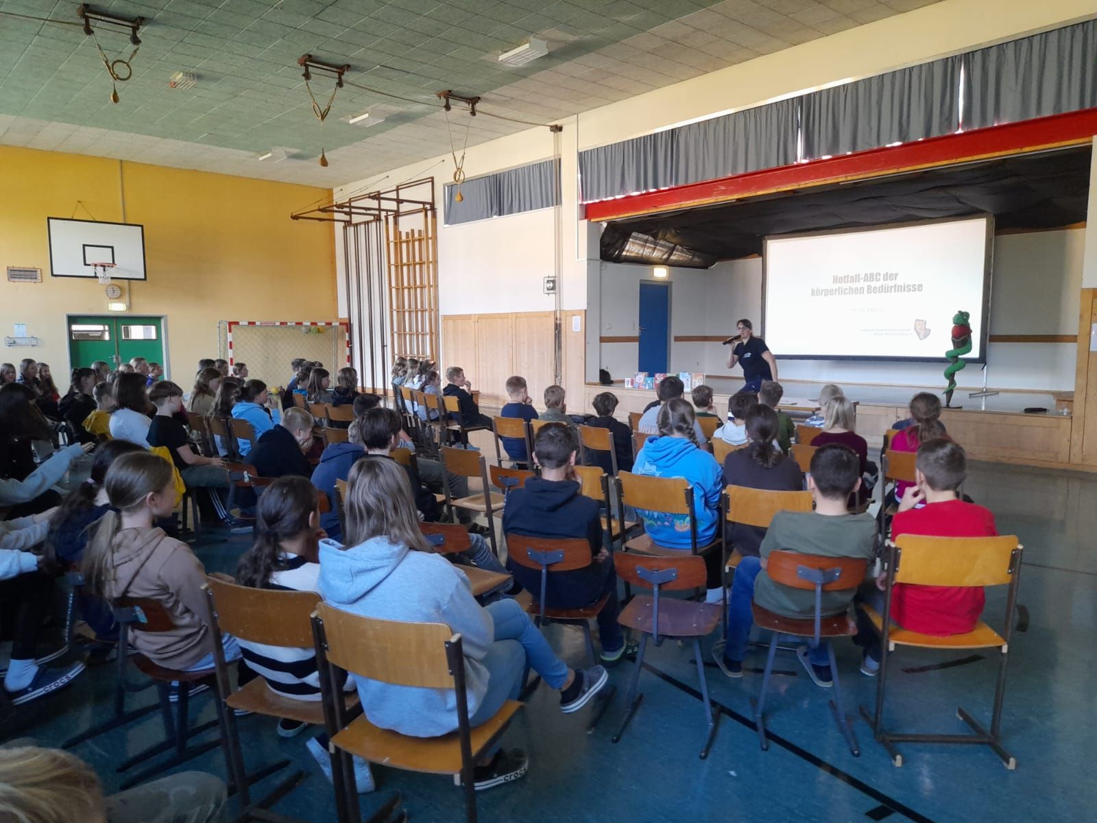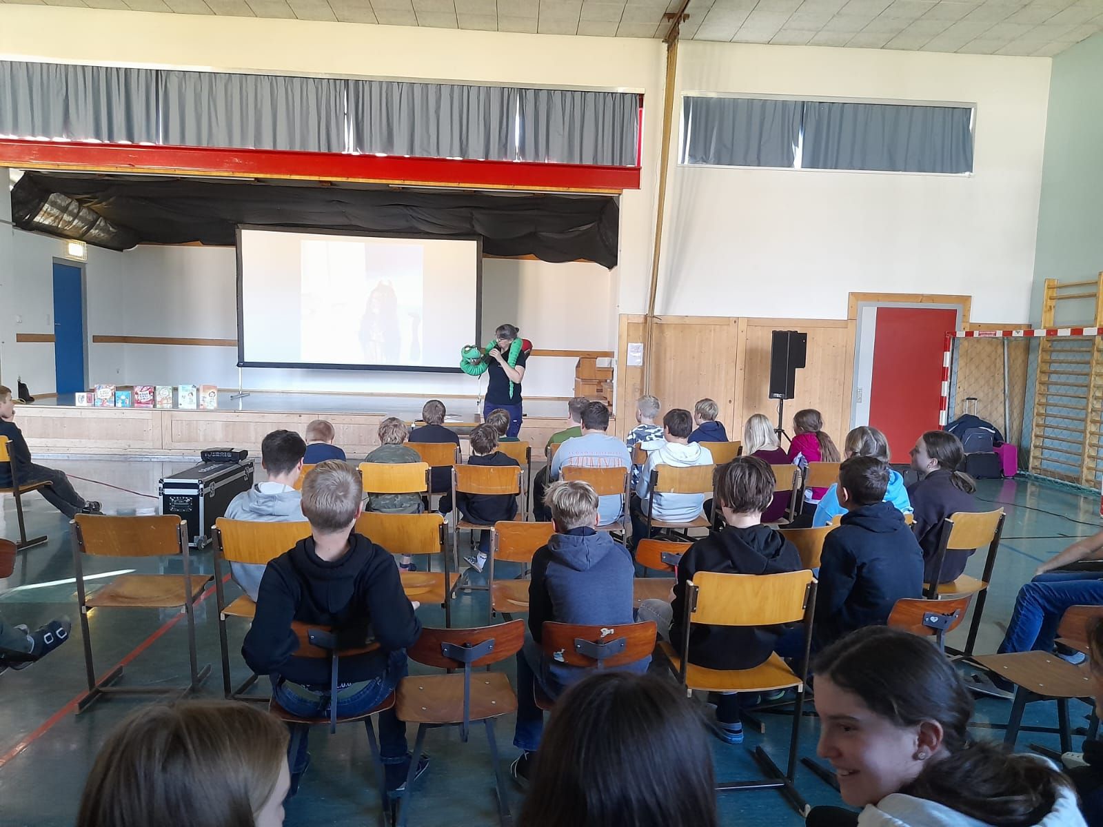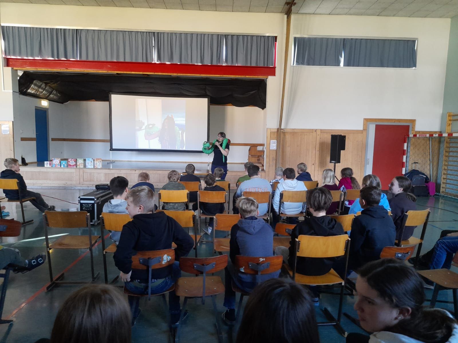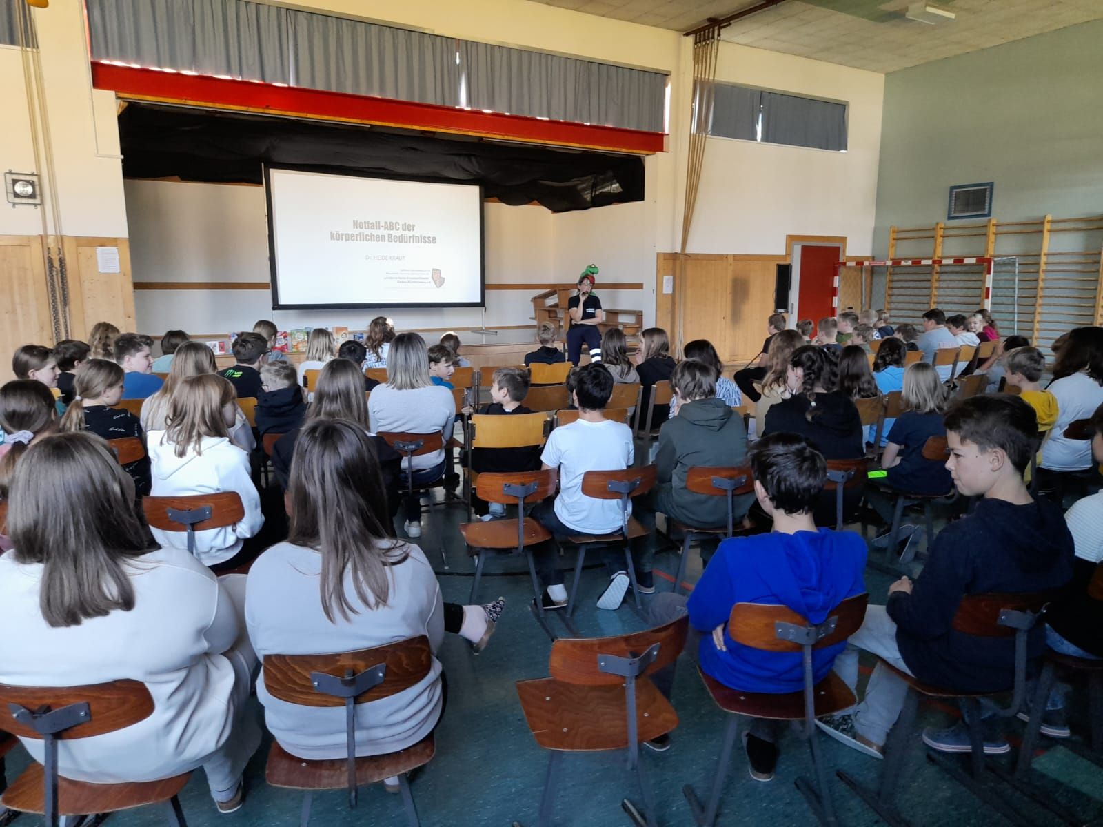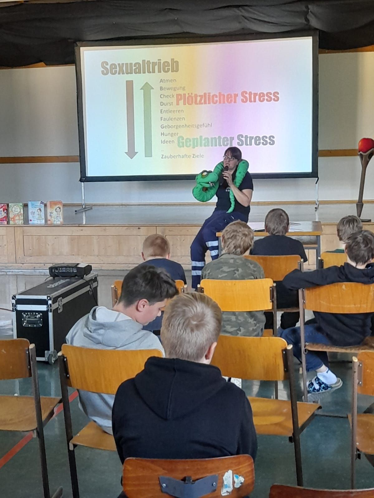 Am 8. November fand im Turnsaal der MS Stein an der Enns für die Schüler und Schülerinnen der MS sowie für die Kinder der VS Stein an der Enns und Sankt Nikolai eine Autorenlesung der anderen Art statt. Die diesjährige Autorin war die aus Heidelberg stammende Frau Sibylle Mottl-Link, die nicht nur Kinder- und Jugendbuchautorin, sondern auch Notfallmedizinerin ist. Mit ihrer Comedy-Lesung „Notfall-ABC der körperlichen Bedürfnisse“ unterhielt sie unsere Kinder und Jugendlichen fast zwei Stunden lang. Die Schüler und Schülerinnen der beiden Volksschulen und der Mittelschule erfuhren dabei in zwei unterschiedlichen, an das jeweilige Alter angepassten Programmen auf unterhaltsame Art und Weise mehr darüber, wie ihr Körper auf Stress reagiert und wie man plötzlichem und geplantem Stress effektiv entgegenwirken kann.