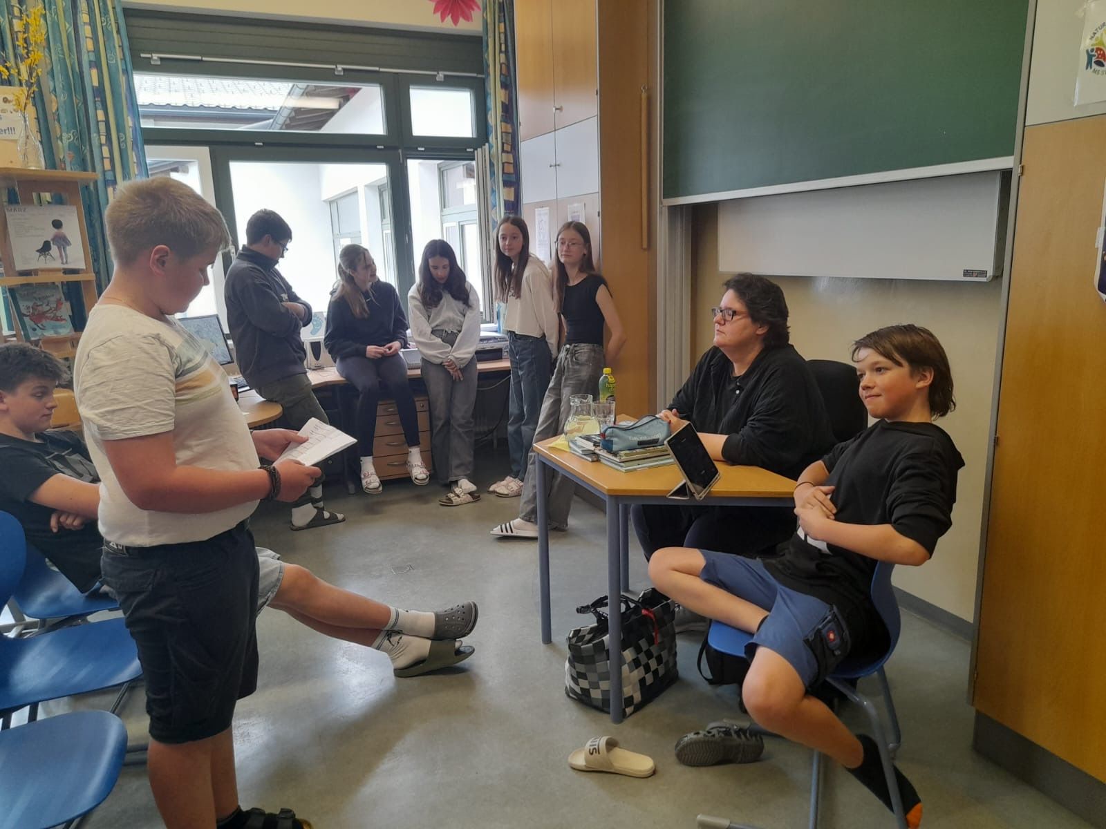 Ihre Lesung für die 3. und 4. Klassen der Mittelschule legte die Autorin anders an. Sie las Passagen aus ihrem von einer wahren Begebenheit inspirierten Buch „Auf der Flucht“, in dem sie von der gefährlichen und abenteuerlichen Flucht der 15-jährigen Mayssam aus Syrien nach Europa berichtet. Außerdem erzählte Ammerer von ihrer ehrenamtlichen Tätigkeit in einem Flüchtlingsheim und diskutierte mit den Jugendlichen über das Thema.
