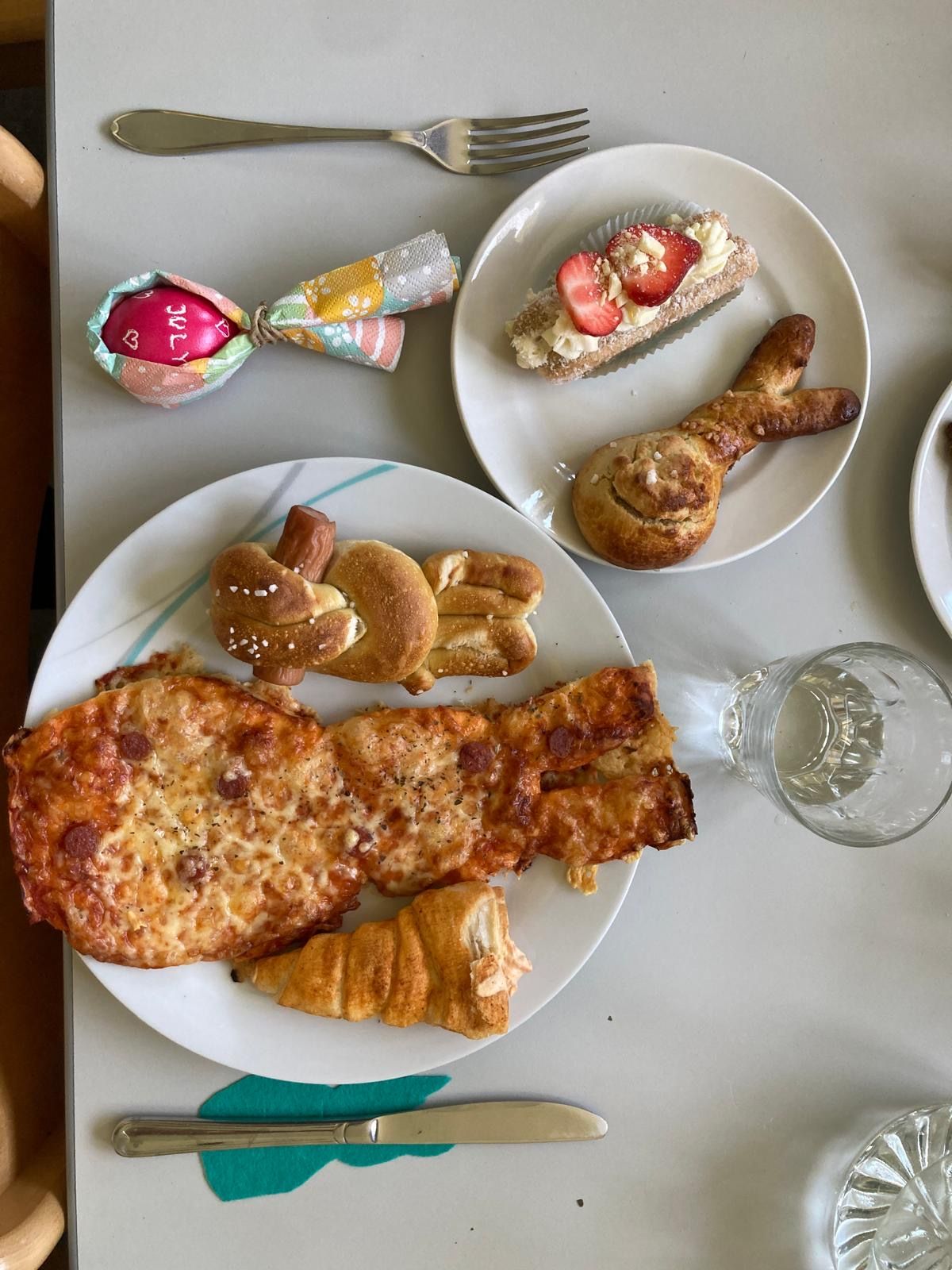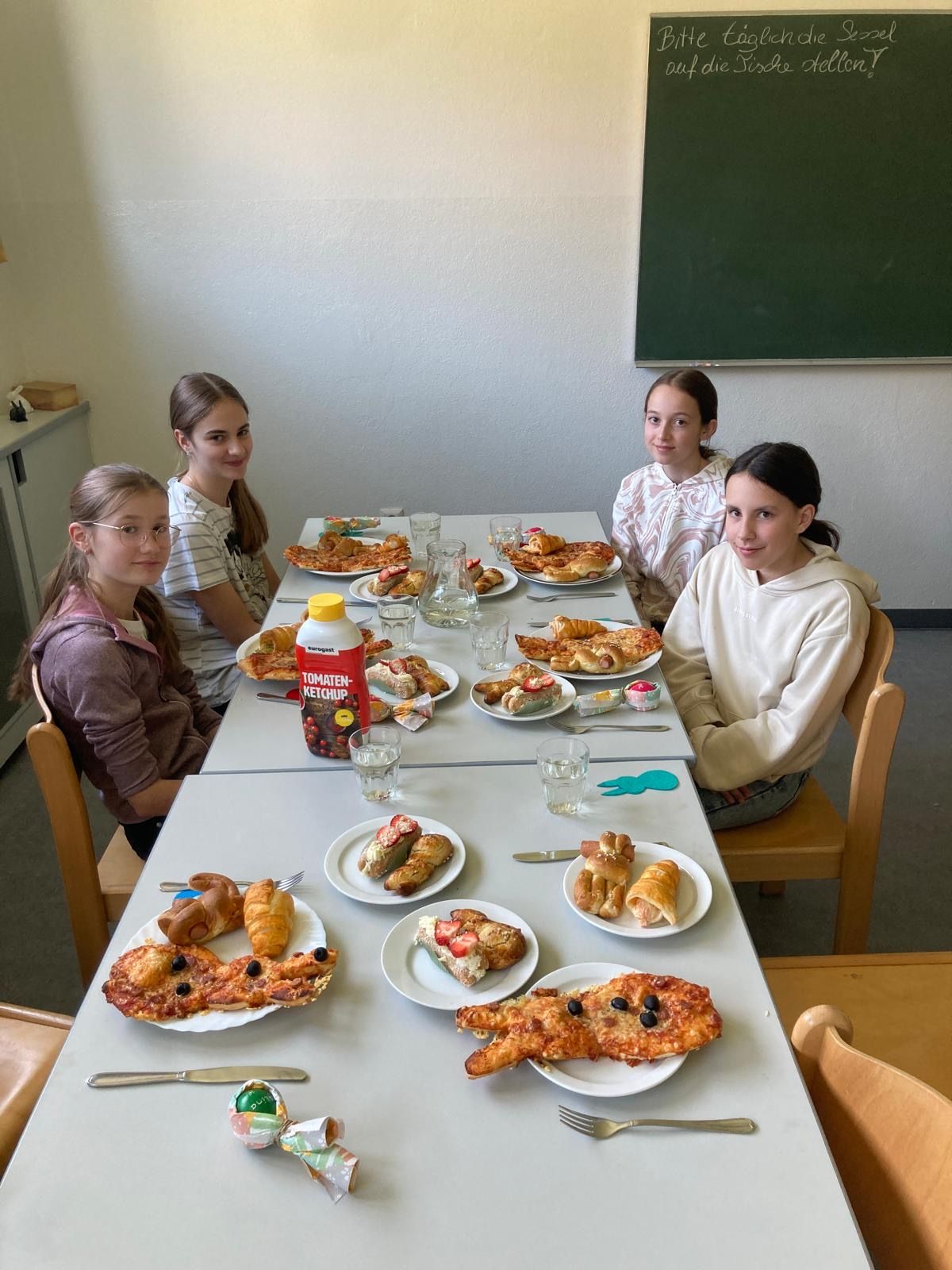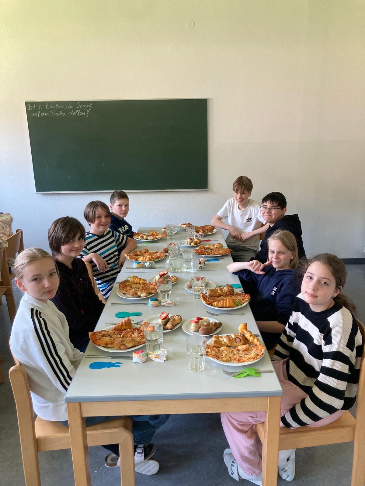 In der letzten Stunde des Freifachs „Bewegung und Ernährung“ vor den Osterferien haben die Schülerinnen und Schüler kreative und leckere Ostergerichte zubereitet. Es gab Blätterteigkarotten mit Frischkäsefüllung, Laugenhäschen mit Würstchen und Pizza in Osterhasenform. Zum Dessert wurde ein Erdbeer-Vanille-Tiramisu serviert und traditionelle Osterpinzen gebacken.