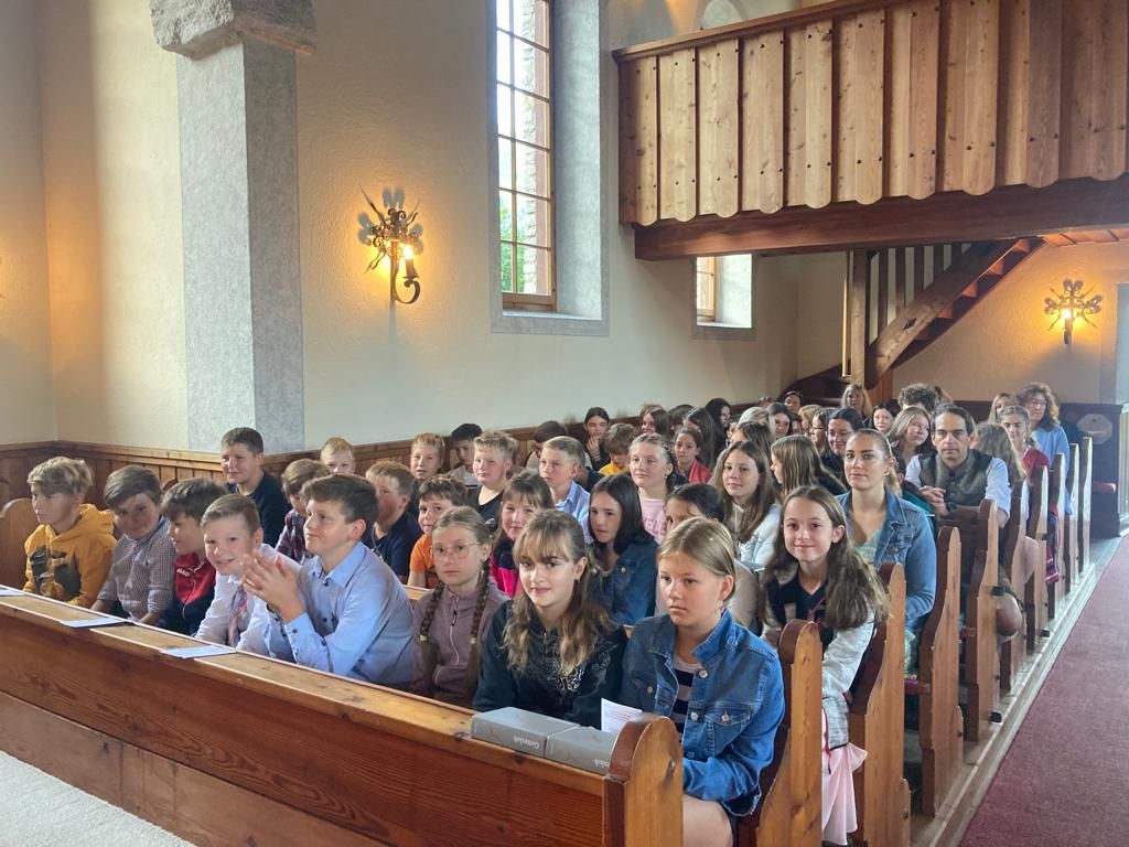Der italienische Hit „Dove a quando“ von Benji und Fede ließ schon zu Beginn eine fröhliche bewegte Stimmung in der Bergkirche aufkommen. Religionslehrer Alois Unger betonte in der Einführung die positive Zukunftsbotschaft des Liedes. Musik und Worte seien wertvolle Hoffnungsbringer als Aktivitätsmotivation. Ein von ihm gestaltetes Plakat stand vor dem Altarraum mit einem Herz und einem Stein am Rand und der Aufschrift „Ich entscheide mich…“.