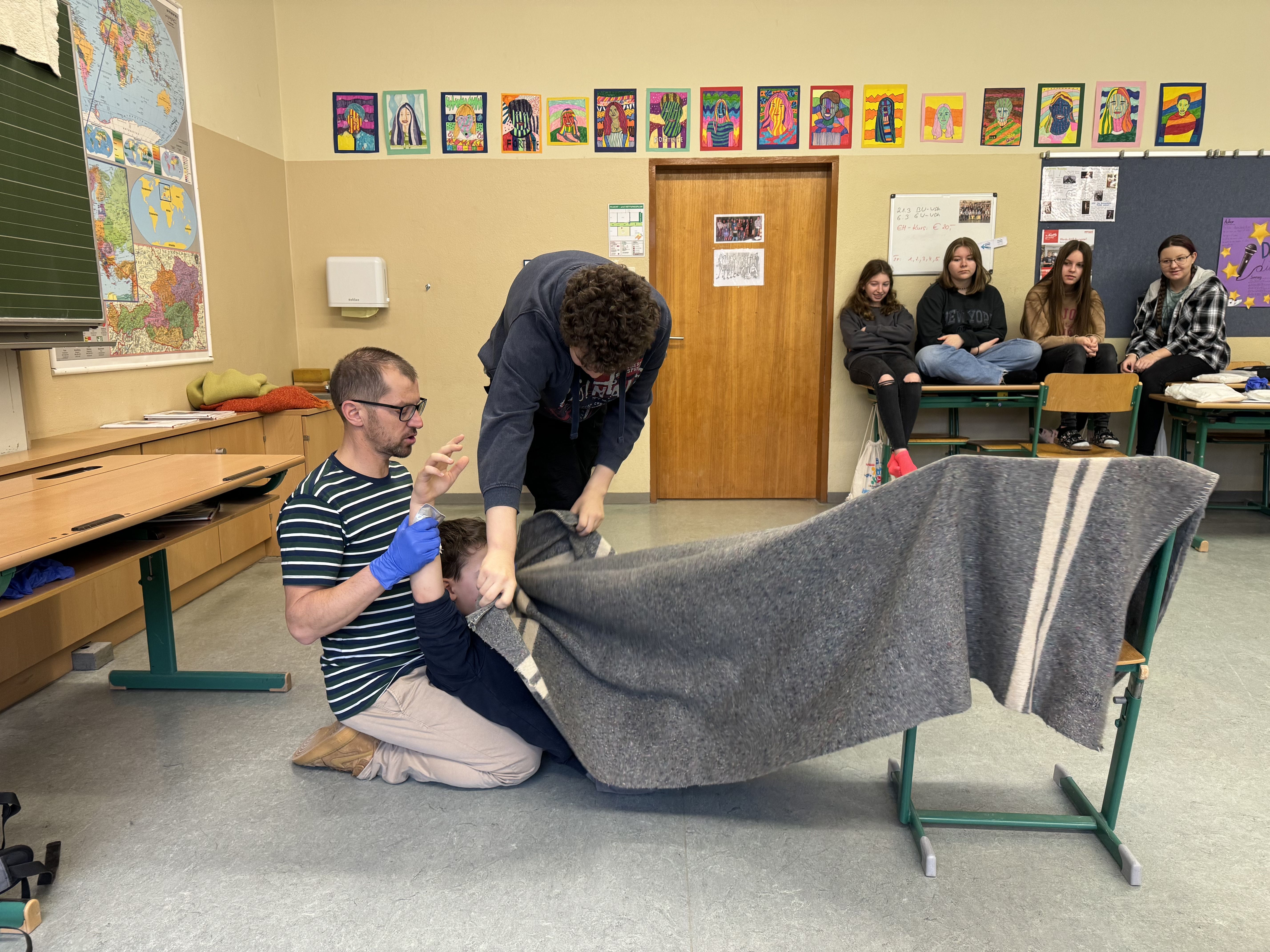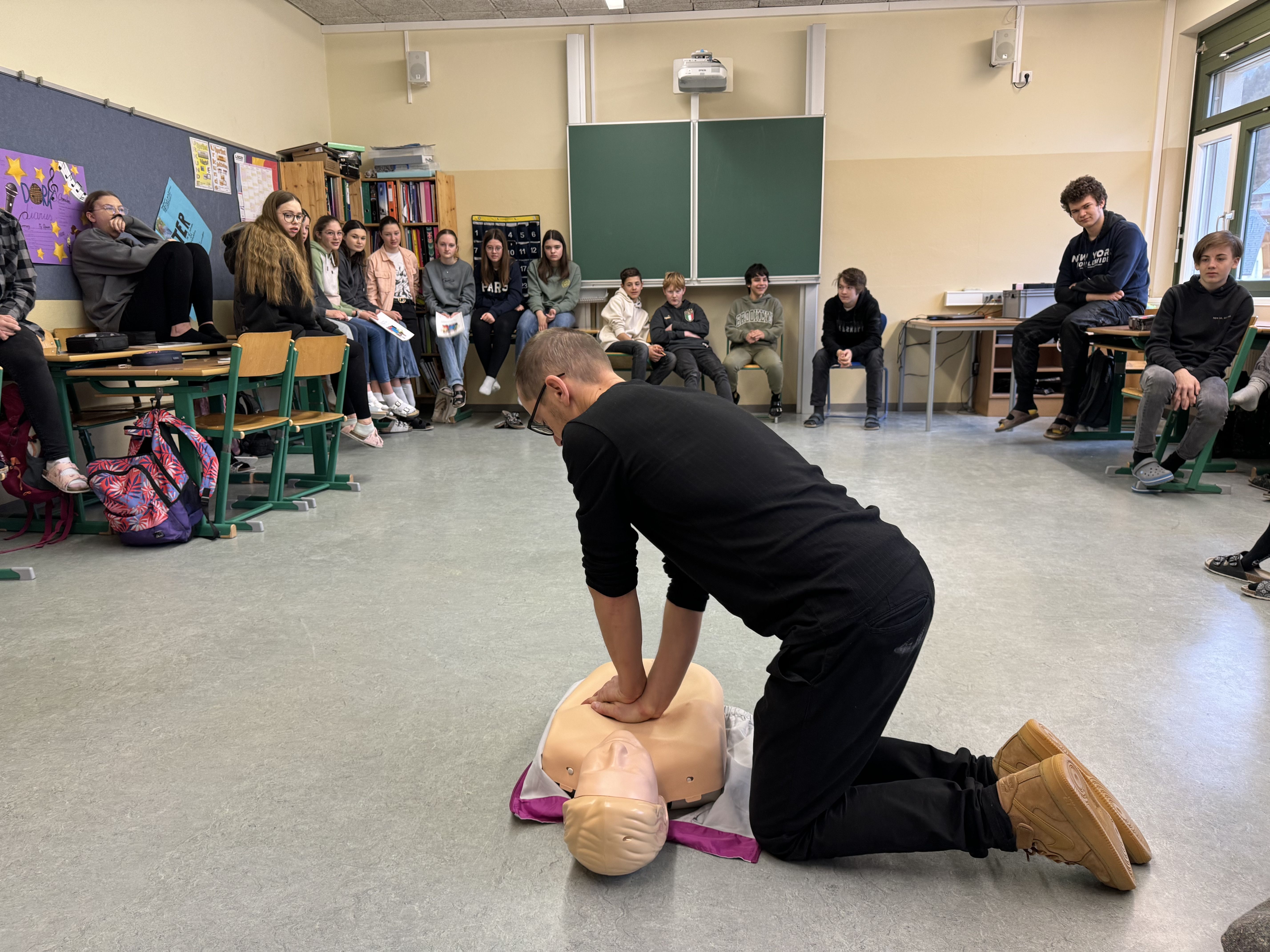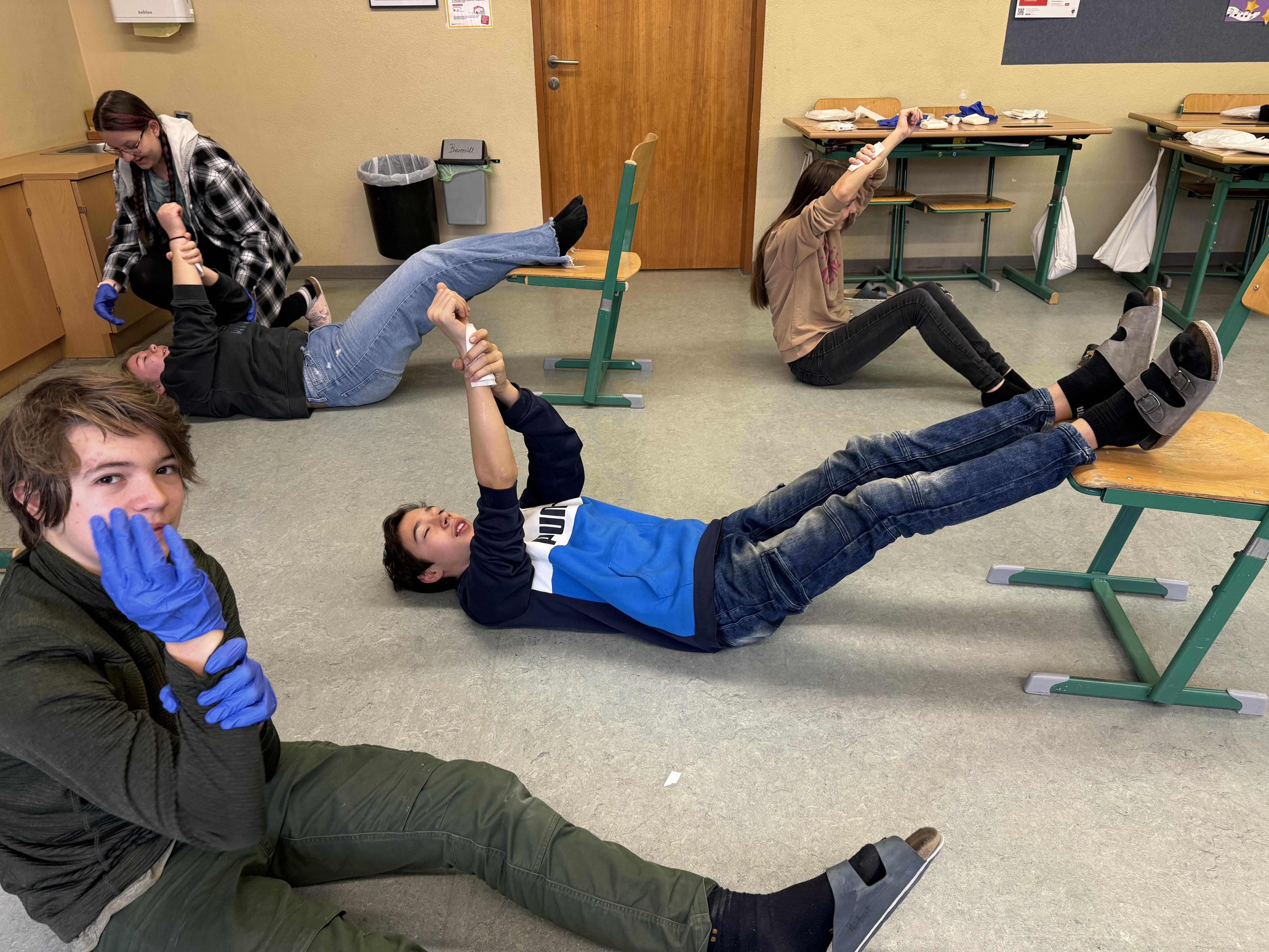 Insgesamt 26 SchülerInnen der 4. Klassen absolvierten erfolgreich in der ersten Woche nach den Semesterferien einen 16- stündigen Grundkurs in Erster Hilfe! Unter der Leitung des EH- Lehrbeauftragten Dipl.Päd. Andreas Fischbacher und unter Mithilfe von BED David Gabriel gliedert sich dieser Kurs in einem theoretischen Teil und ausführlichen Praxiseinheiten!
