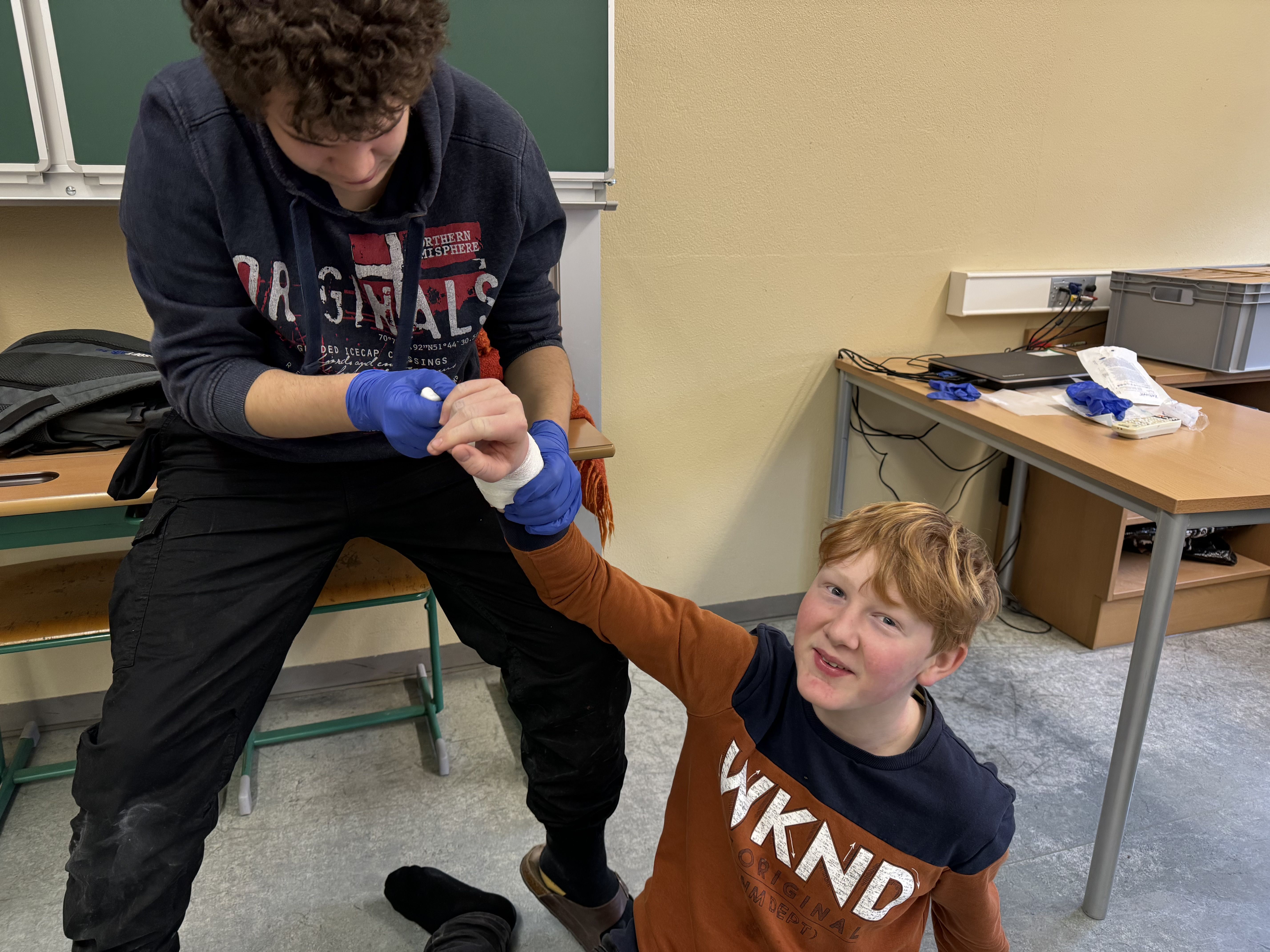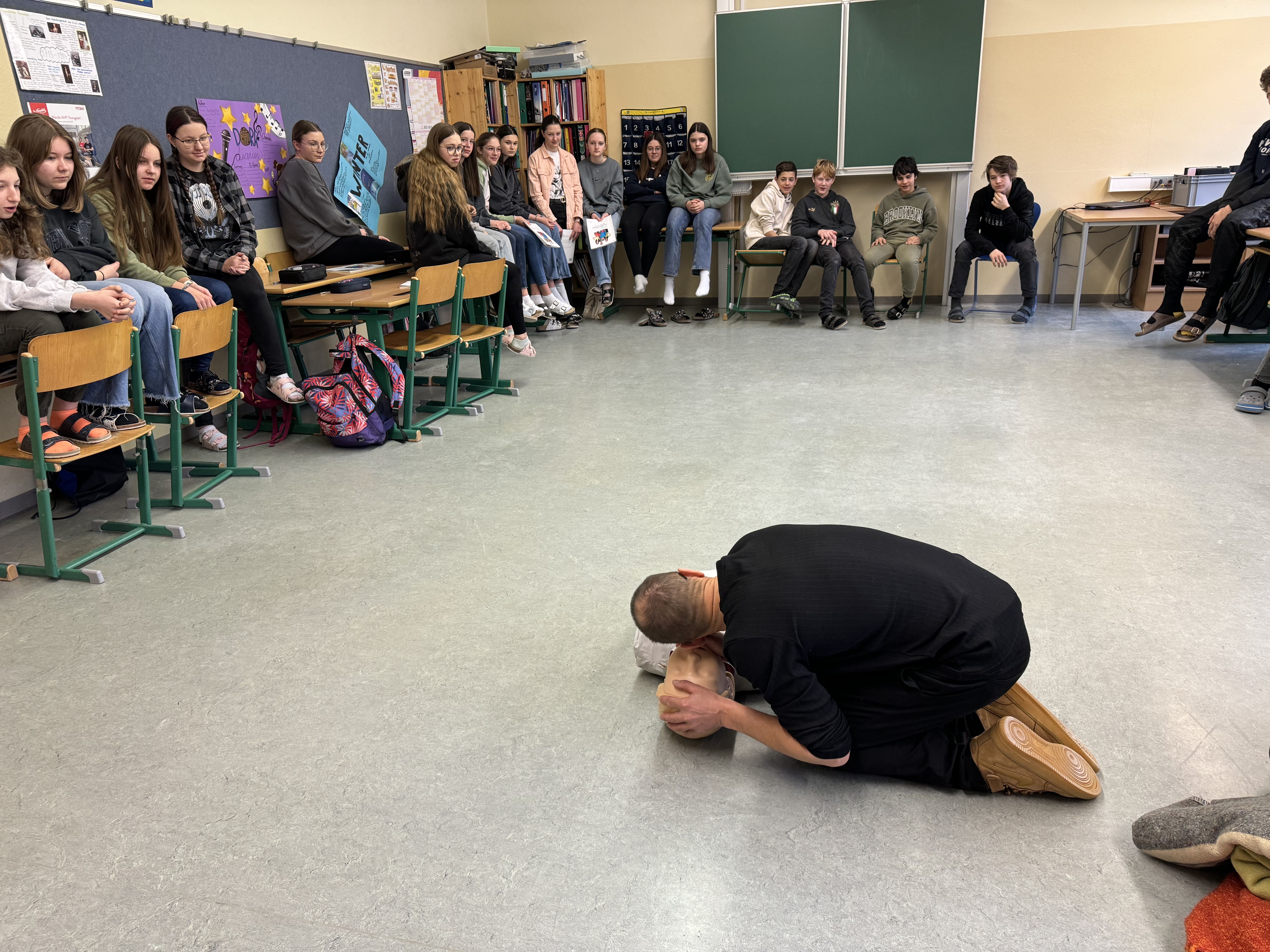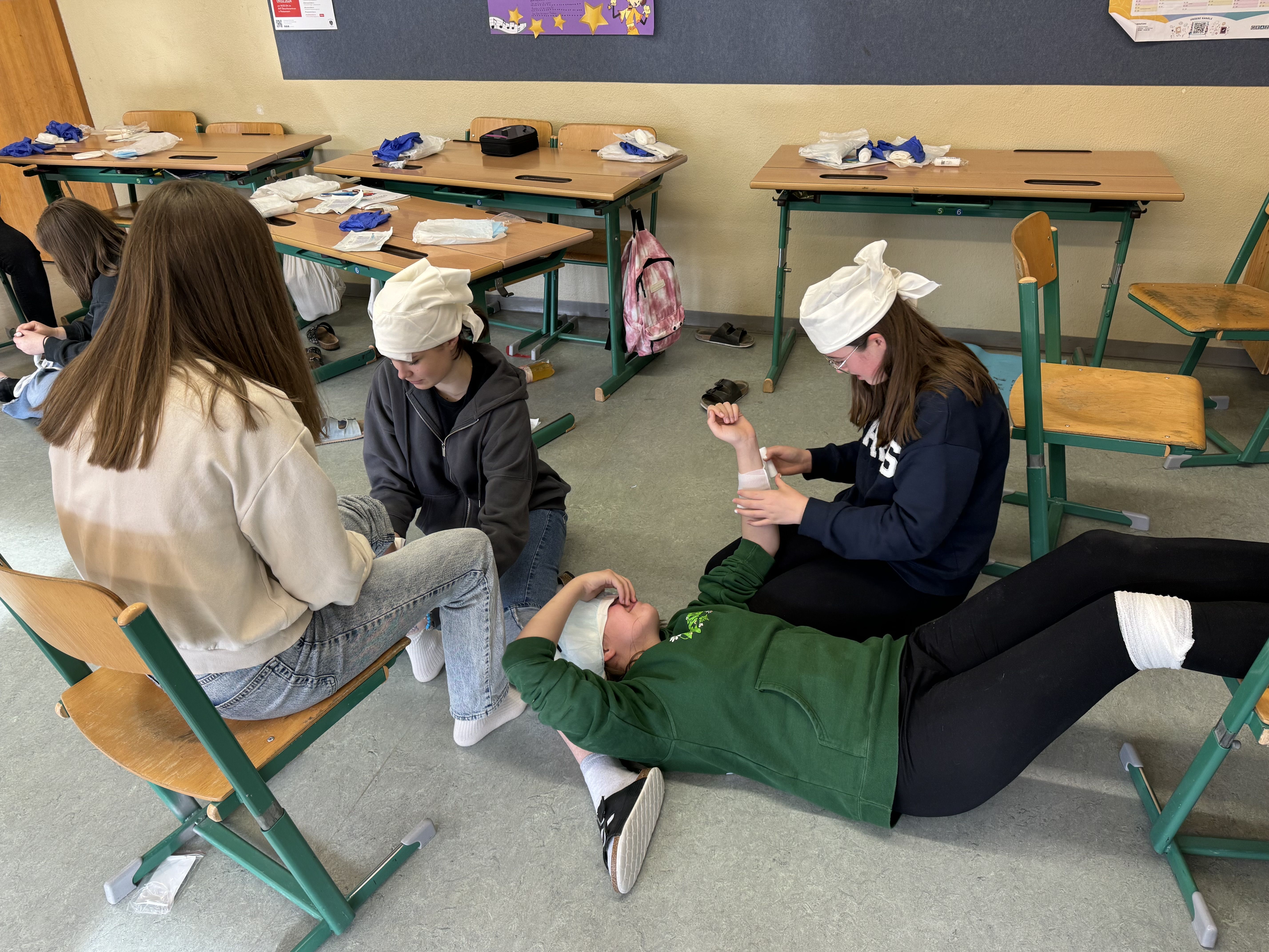 Insgesamt 26 SchülerInnen der 4. Klassen absolvierten erfolgreich in der ersten Woche nach den Semesterferien einen 16- stündigen Grundkurs in Erster Hilfe! Unter der Leitung des EH- Lehrbeauftragten Dipl.Päd. Andreas Fischbacher und unter Mithilfe von BED David Gabriel gliedert sich dieser Kurs in einem theoretischen Teil und ausführlichen Praxiseinheiten!