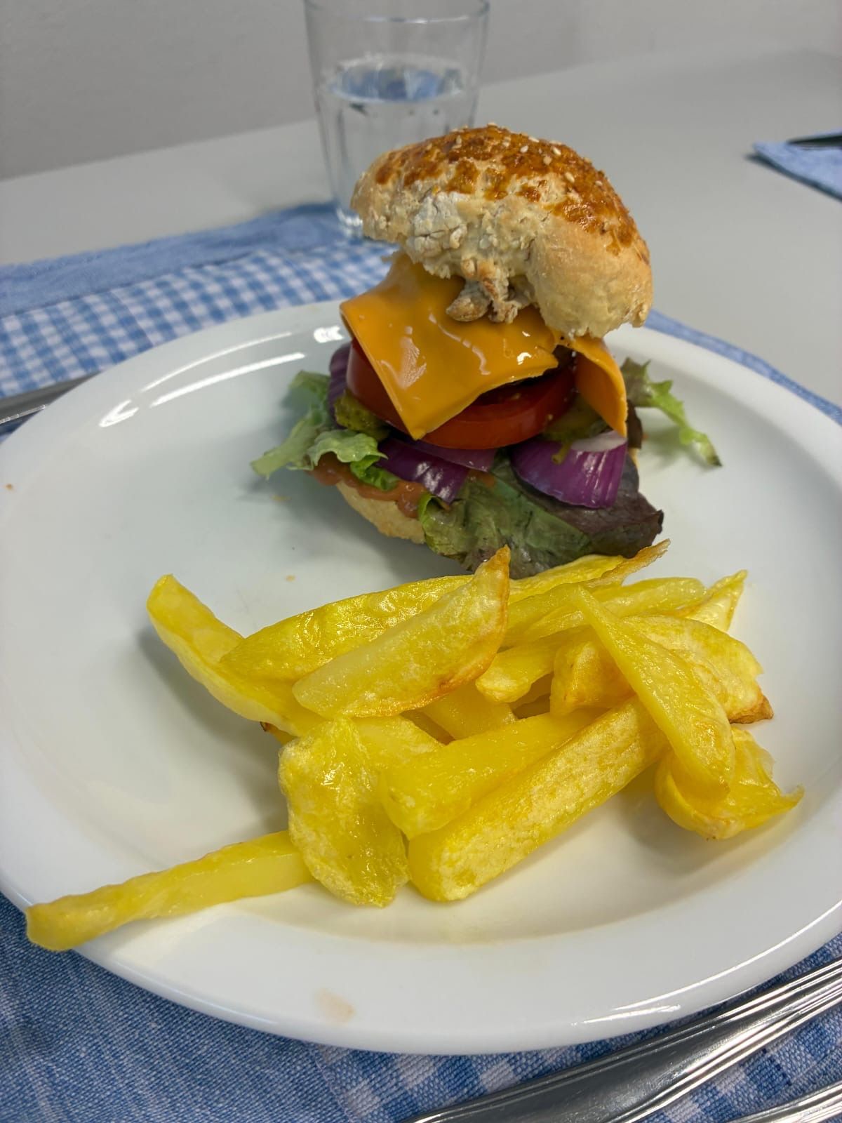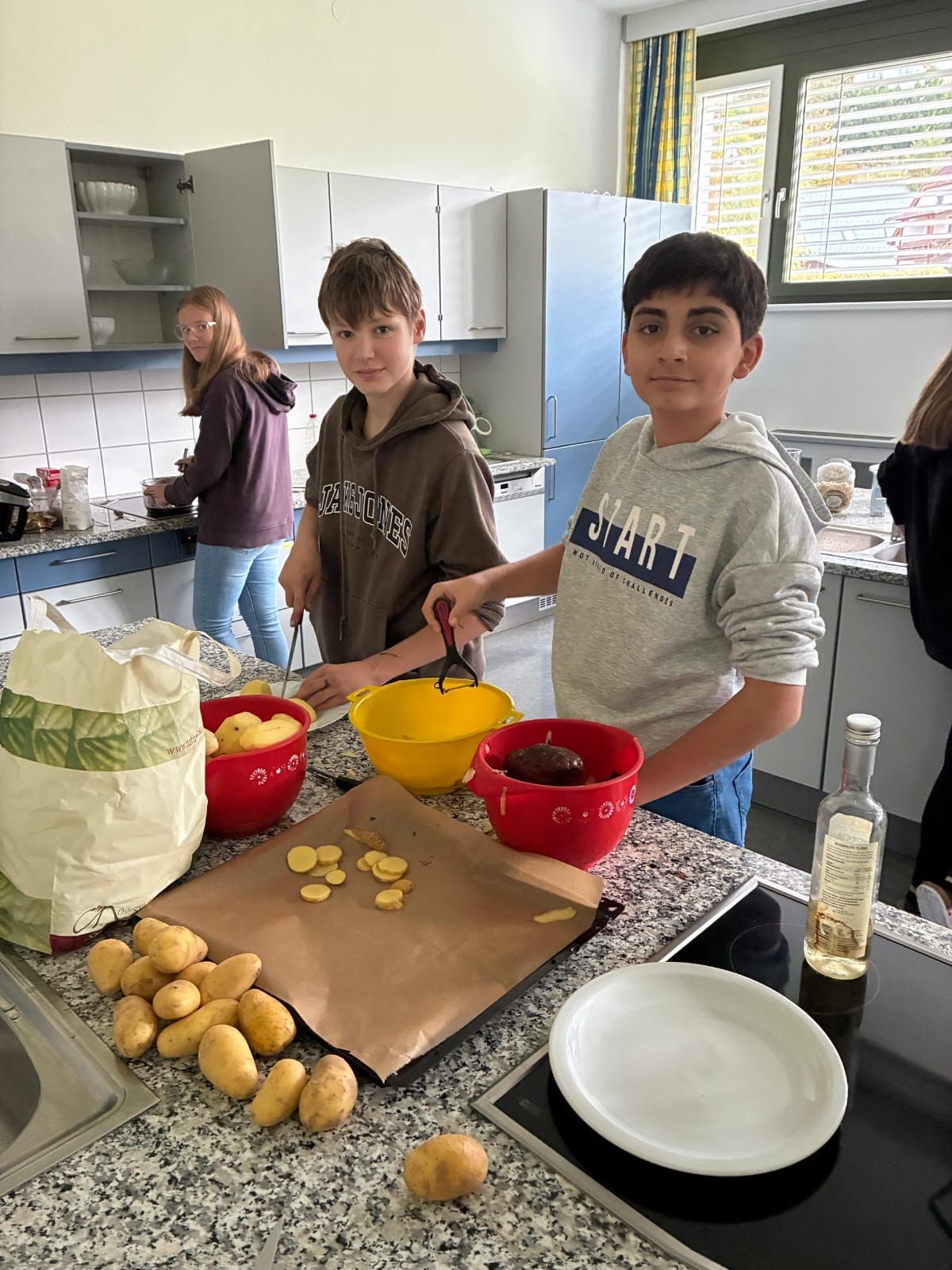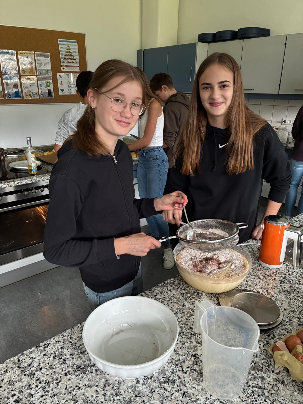 Im Freifach "Bewegung und Ernährung" haben wir leckere Burger mit Pommes selbst gemacht – vom Brötchen über das Patty bis zur Sauce! Zum Dessert gab es einen saftigen brasilianischen Schokokuchen mit Schokosauce.
