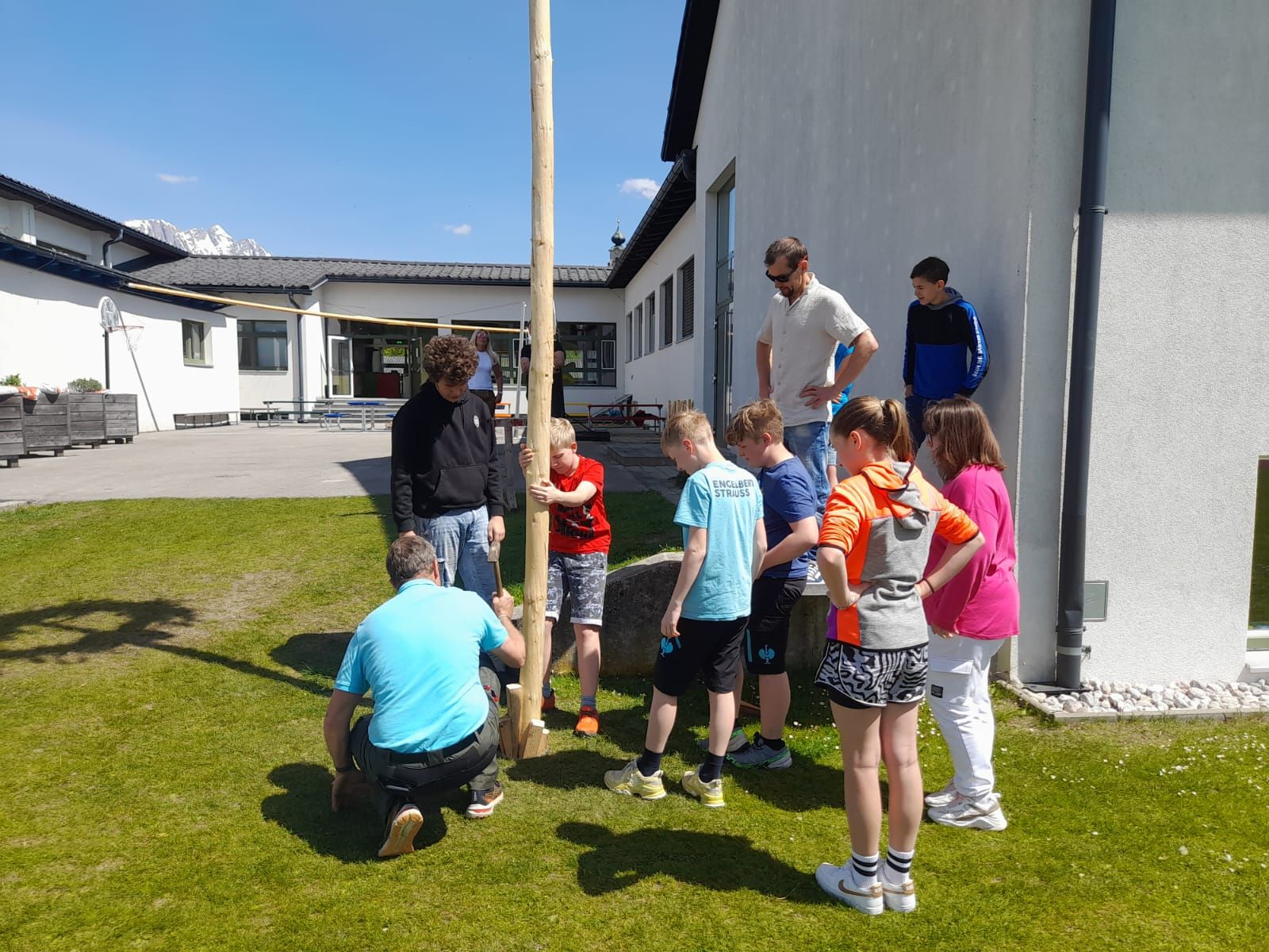 An der Mittelschule Stein an der Enns wird Tradition und Brauchtum bekanntermaßen hochgehalten und gelebt, vor allem im Rahmen einer Unverbindlichen Übung. Und obwohl in diesem Bereich in den letzten Jahren bereits unzählige Aktivitäten gesetzt wurden, gab es heuer eine Premiere: Erstmals wurde ein schuleigener Maibaum aufgestellt.