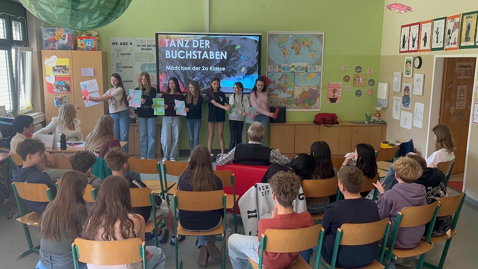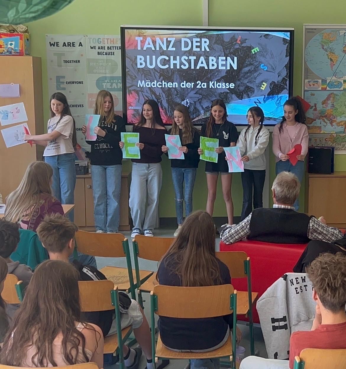 Ein besonderes Highlight bildete der Auftakt der Vorlesestunde. Die Mädchen der 2a Klasse eröffneten das Programm mit einem kreativen Buchstabentanz und sorgten damit sofort für Begeisterung. Zwischen den Sagen wurden zudem passende Lieder gemeinsam gesungen.