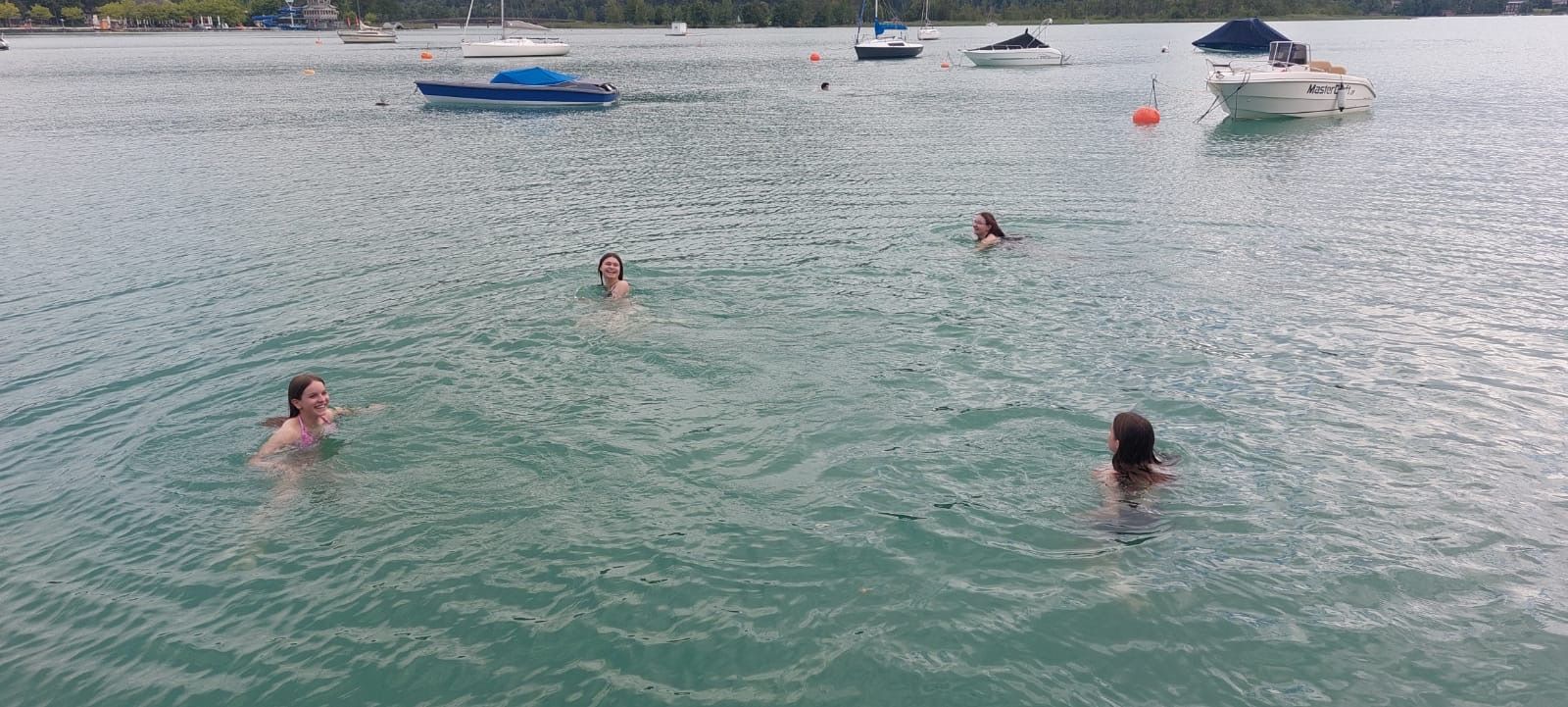 Die Kinder waren voller Energie und ließen sich auch vom schlechten Wetter nicht abhalten, im Wörthersee zu schwimmen. Der See bot trotz der Kälte ein erfrischendes Erlebnis.