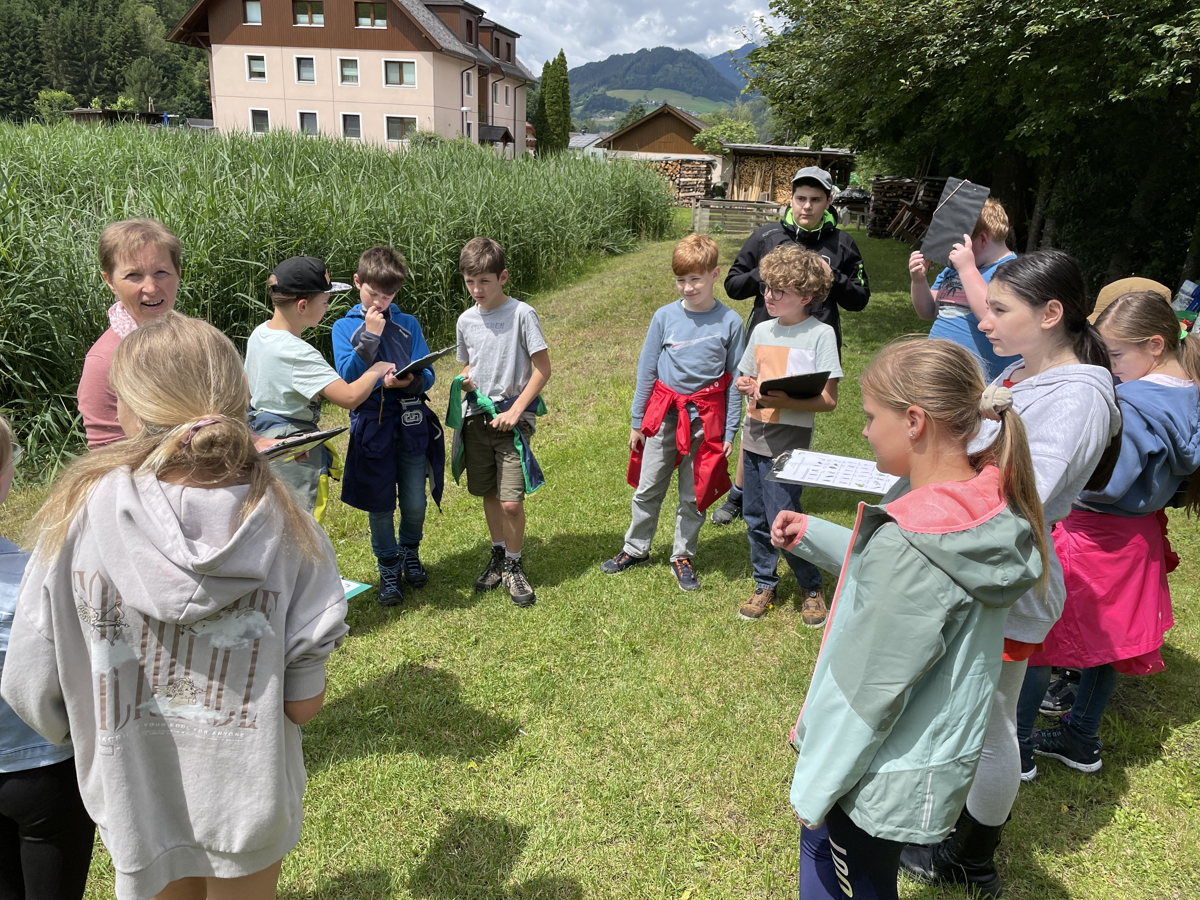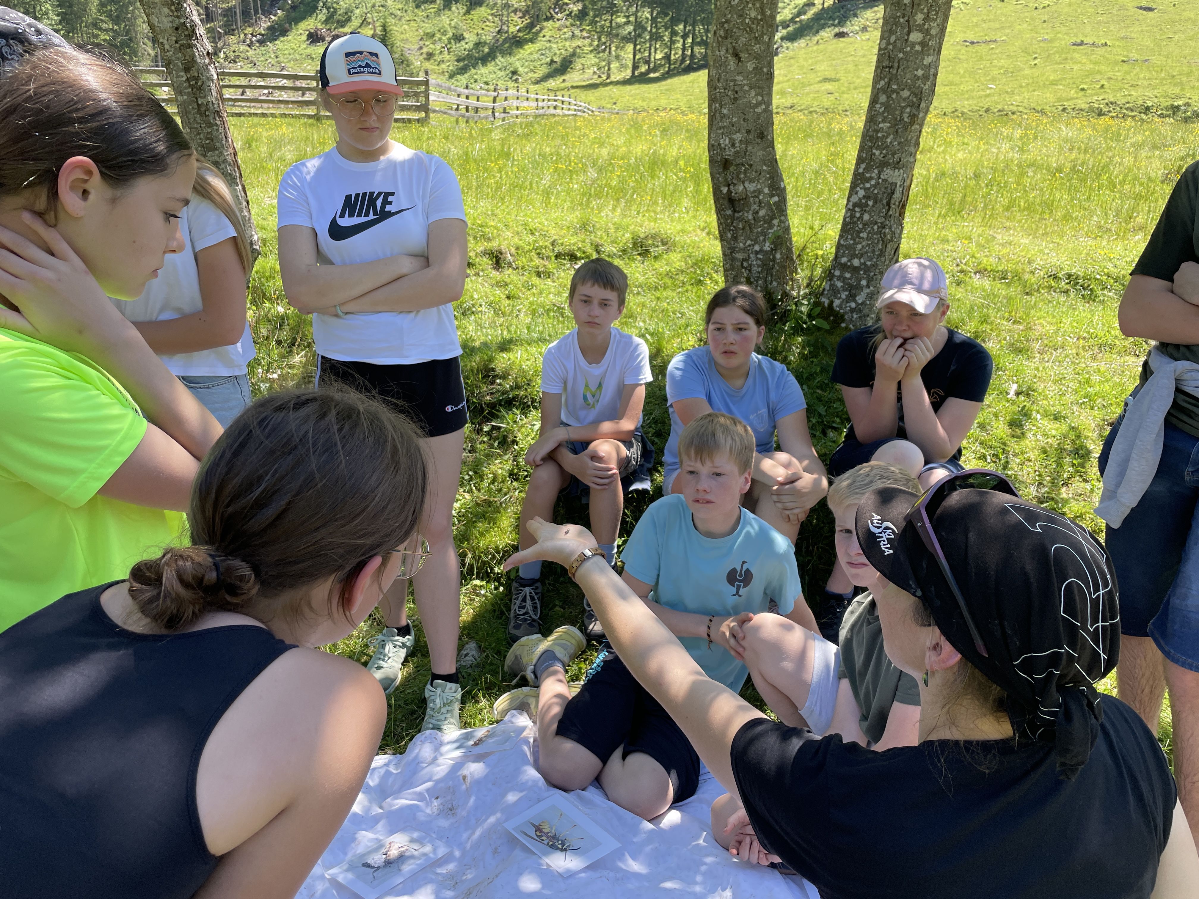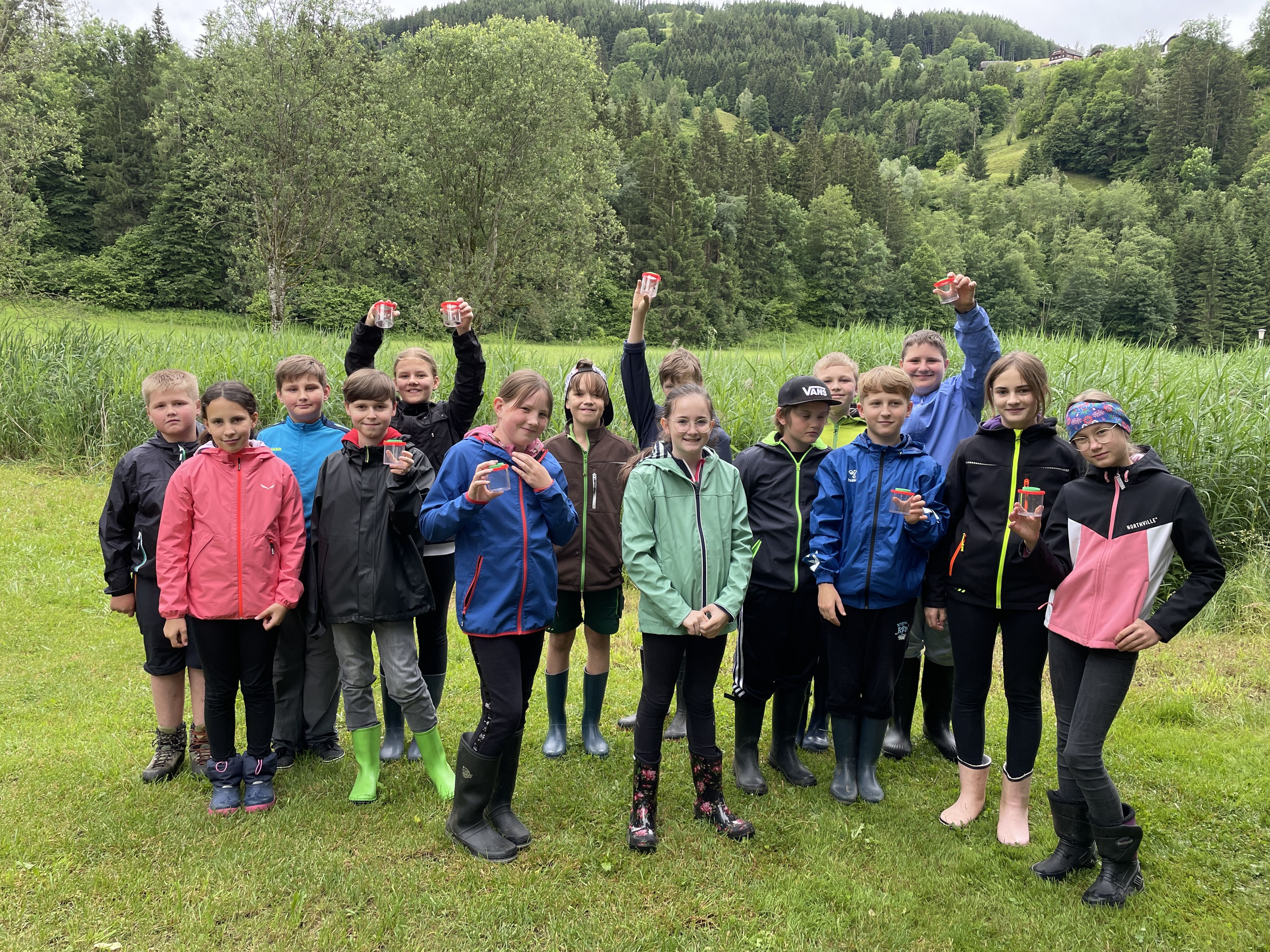 Die 3. Klassen erkundeten mit zwei Damen vom Ökoteam Graz die Almwiesen und Flüsse rund um die Zauneralm in der Kleinsölk. Mit Becherlupen, Boden- und Käfersieben ausgestattet, konnten sie viele verschiedene Insekten fangen, beobachten, bestimmen und am Ende wieder in die Freiheit entlassen. Danach wurden sie bei der wunderschönen Almhütte bestens mit selbst gemachten Raunkerln verköstigt.