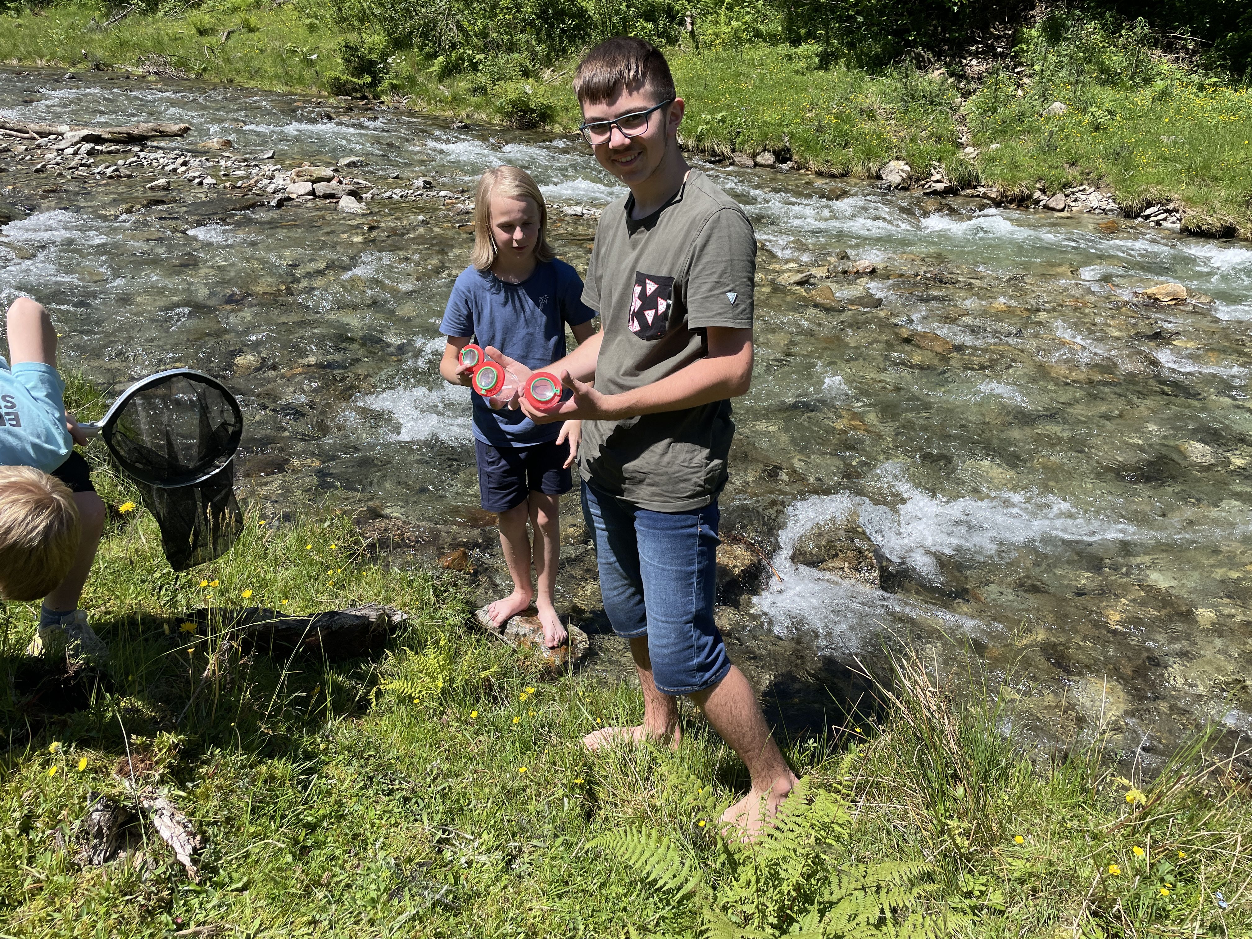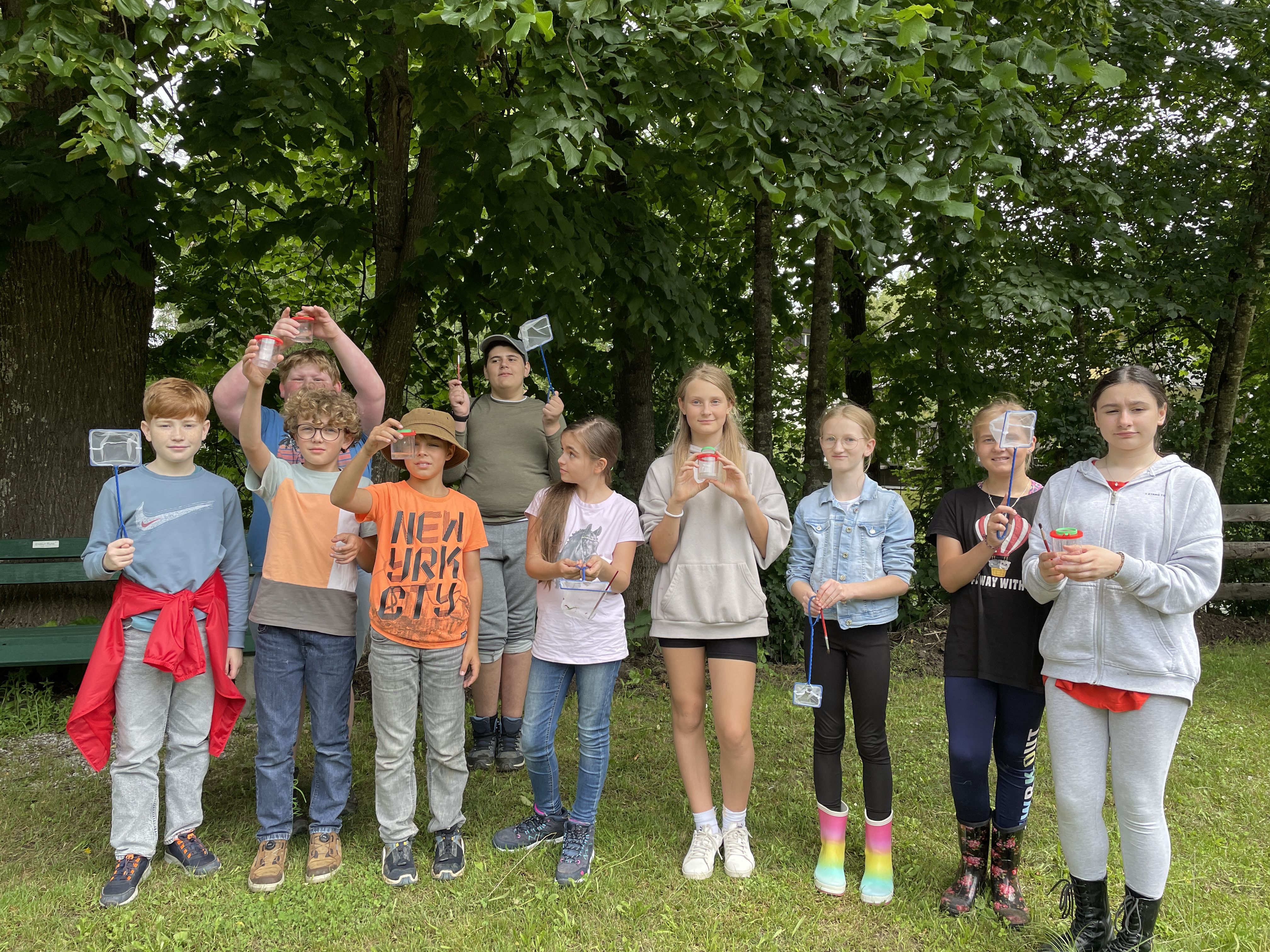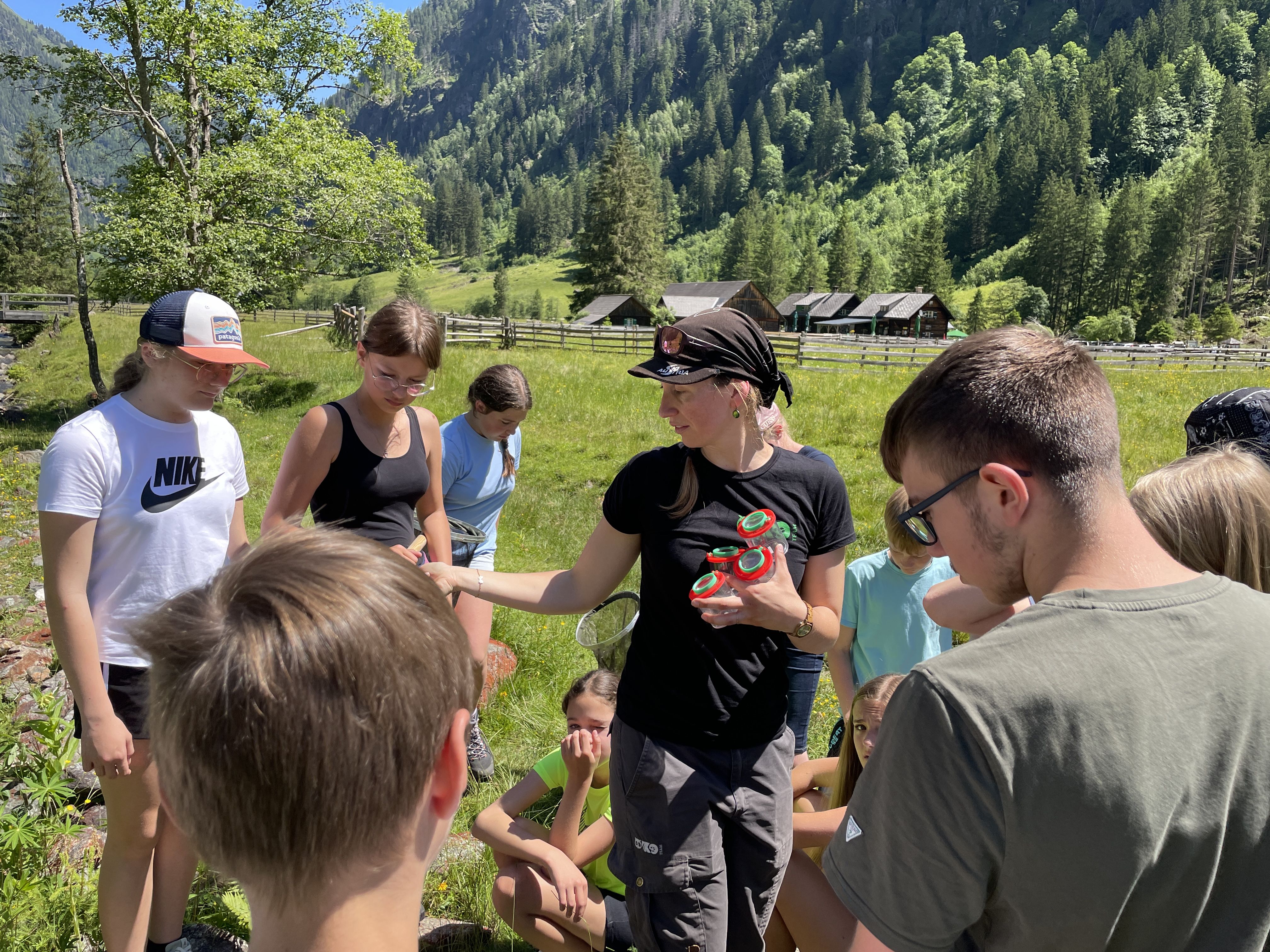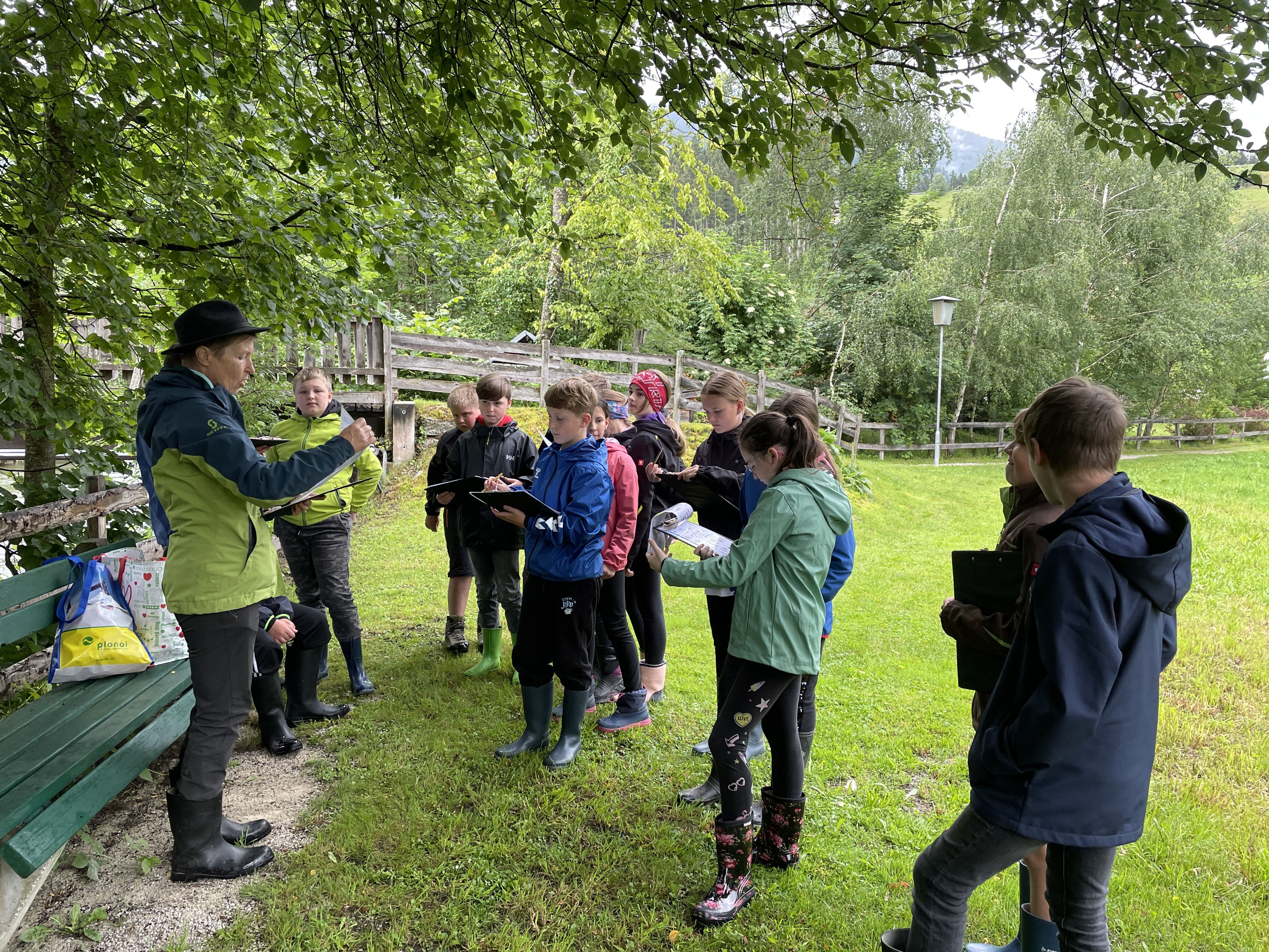 Die 3. Klassen erkundeten mit zwei Damen vom Ökoteam Graz die Almwiesen und Flüsse rund um die Zauneralm in der Kleinsölk. Mit Becherlupen, Boden- und Käfersieben ausgestattet, konnten sie viele verschiedene Insekten fangen, beobachten, bestimmen und am Ende wieder in die Freiheit entlassen. Danach wurden sie bei der wunderschönen Almhütte bestens mit selbst gemachten Raunkerln verköstigt.