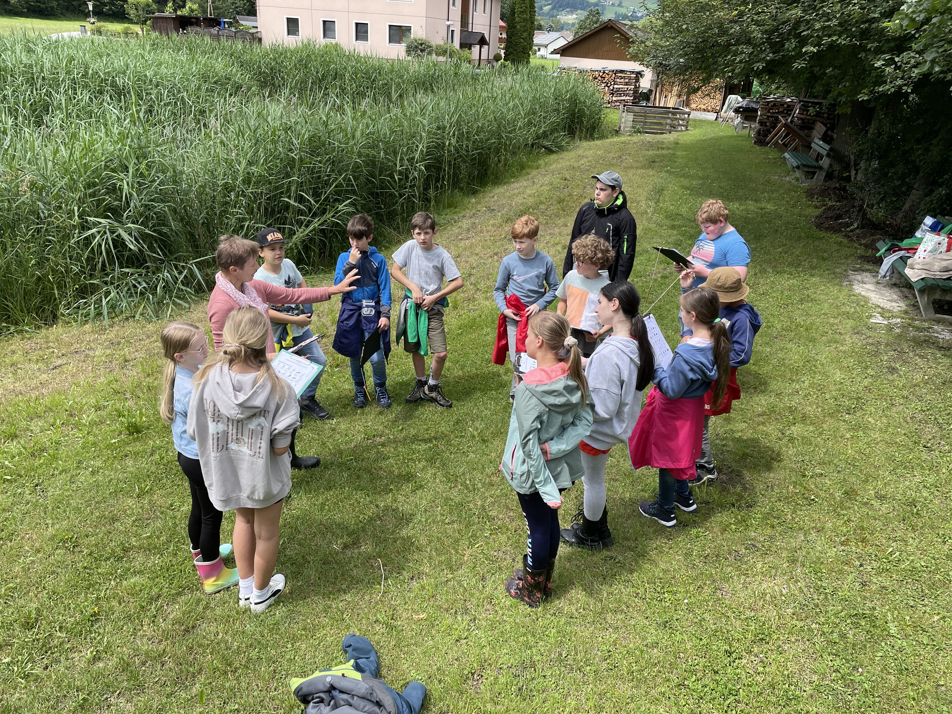 Die 1. Klassen machten mit Eva Huber vom Naturpark Sölktäler einen Ausflug zum Scharzenberger Teich um dort das Leben im und rund um das Gewässer zu erkunden. Dabei entdeckten sie viele verschiedene Pflanzen und Insekten, sowie Eidechsen und Schlangen.