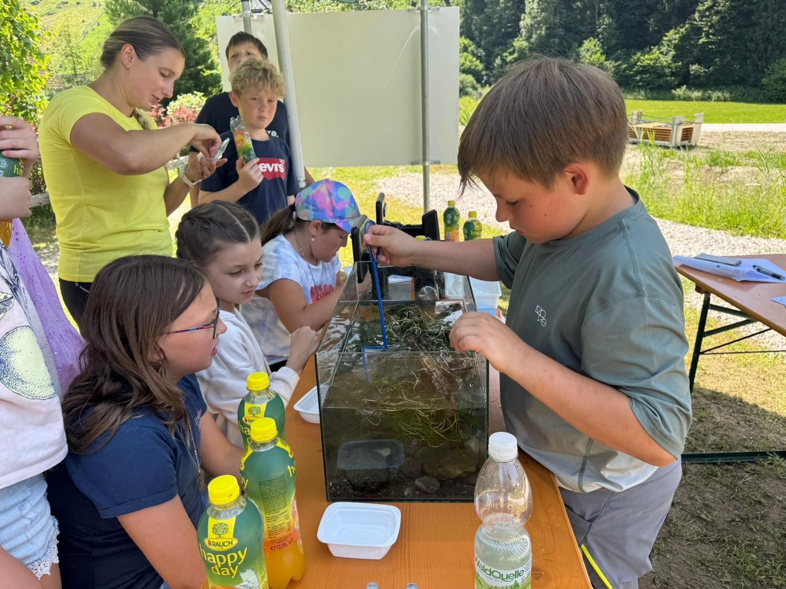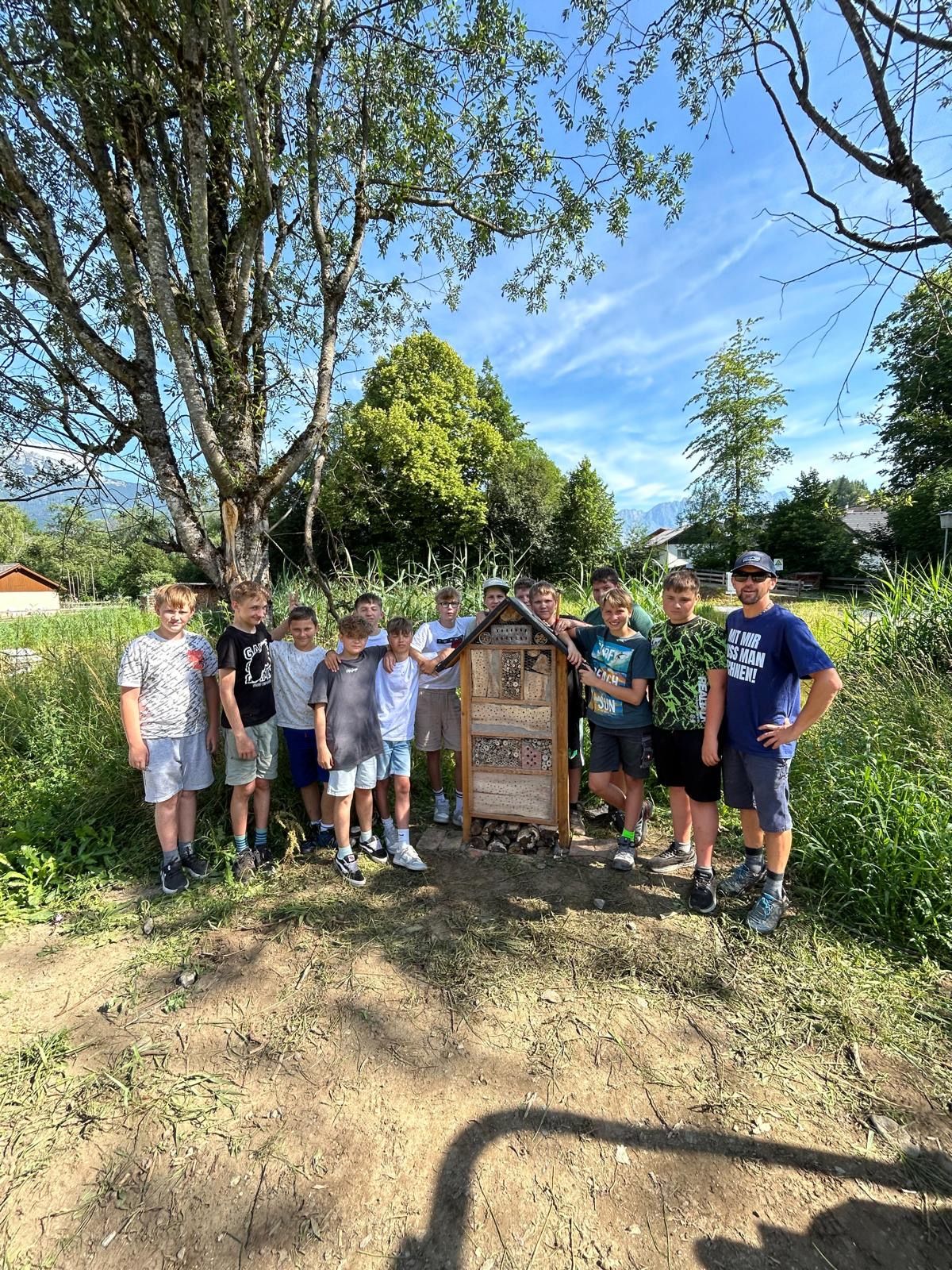 Am dritten Ausflugstag besuchten auch die zweiten Klassen das Biotop nach der Neuerrichtung. Die beiden Klassen kannten das Biotop in seinem Urzustand schon aus dem Vorjahr und durften nun beim neu errichteten Biotop Stationen zum Thema „Wasser“, sowie den heimischen Pflanzen und Tieren, erleben. Das von der dritten Klasse selbst gebaute Insektenhotel war ein besonderes Highlight. Zum Abschluss dieses sommerlichen Tages kühlten sich alle in der Tafel ab.