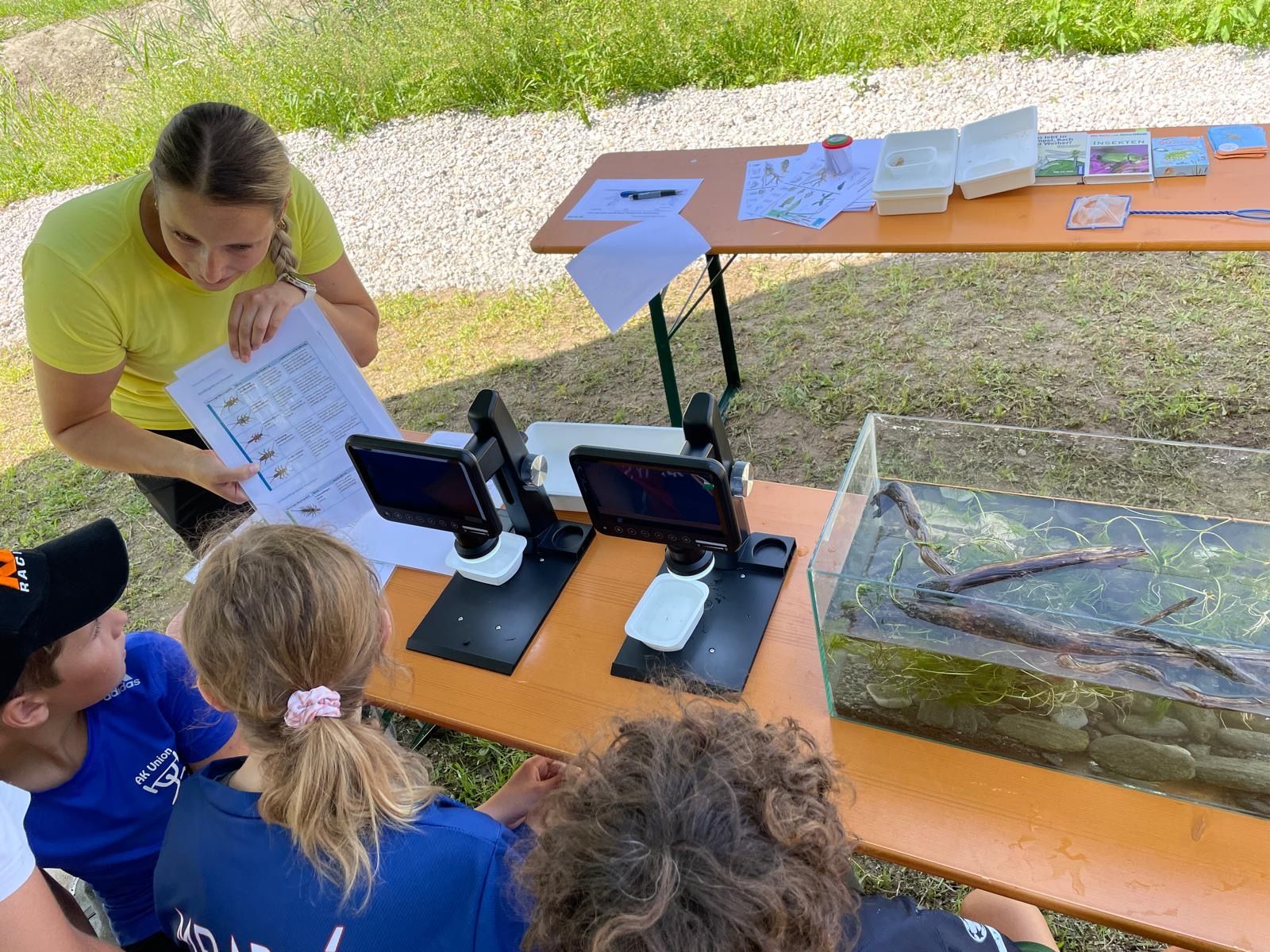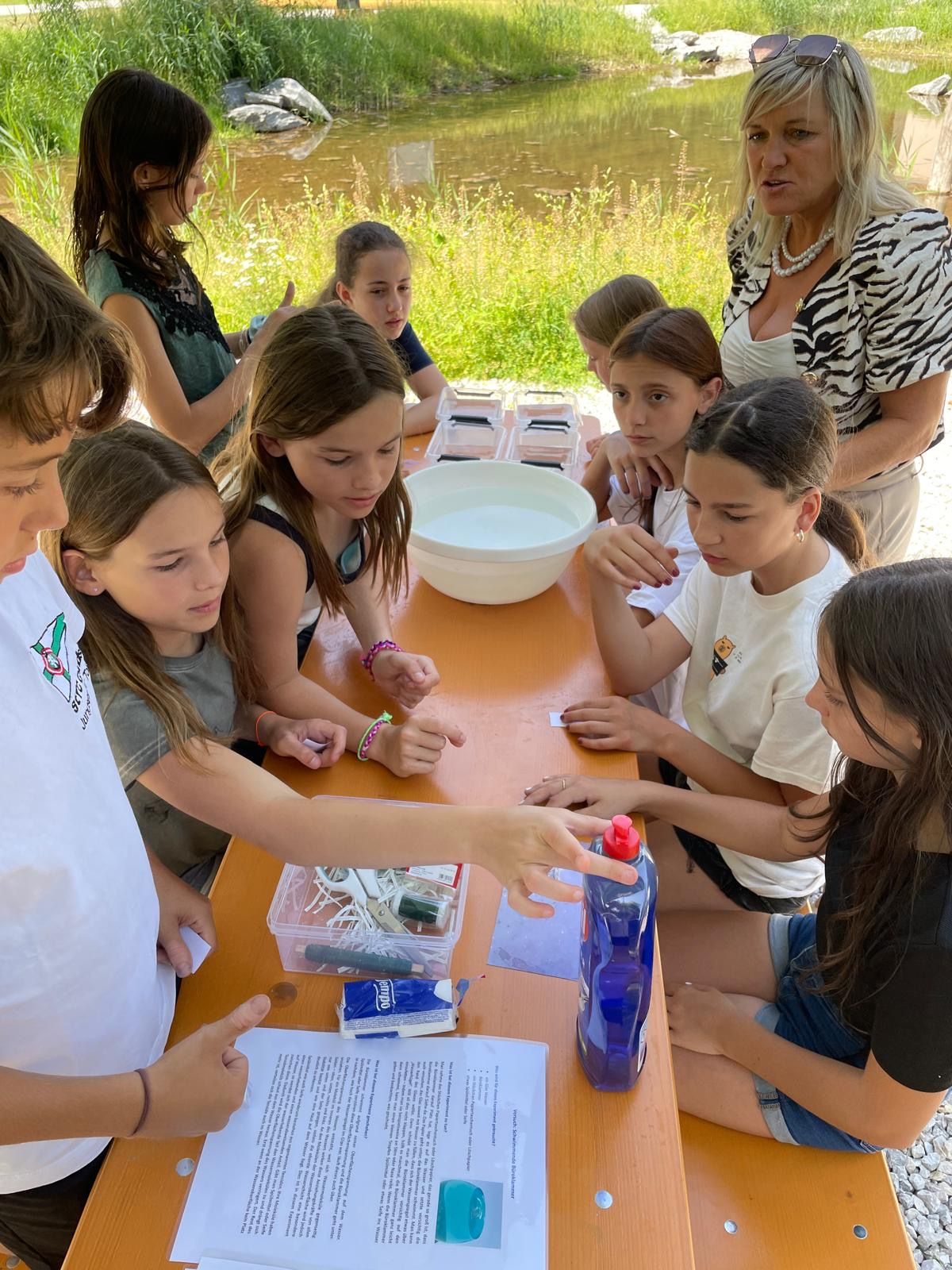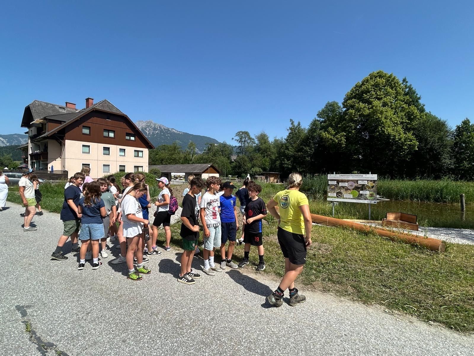Am ersten Ausflugstag ging es für die Schülerinnen und Schüler der ersten Klassen zum neu errichteten Biotop in Stein/Enns. Vor Ort wurden die Kinder in Gruppen eingeteilt. Interaktive Stationen zum Thema „Wasser“ luden zum Staunen und Entdecken ein. So konnten die Kinder erfahren, wie sich die Versiegelung von Flächen auf den natürlichen Wasserhaushalt auswirkt und weshalb Wasserläufer sich auf der Wasseroberfläche fortbewegen können ohne unterzugehen. Zum Abschluss gab es noch ein Quiz zum Thema Biotop. Es war ein gelungener und interessanter Ausflug bei sommerlichem Wetter.