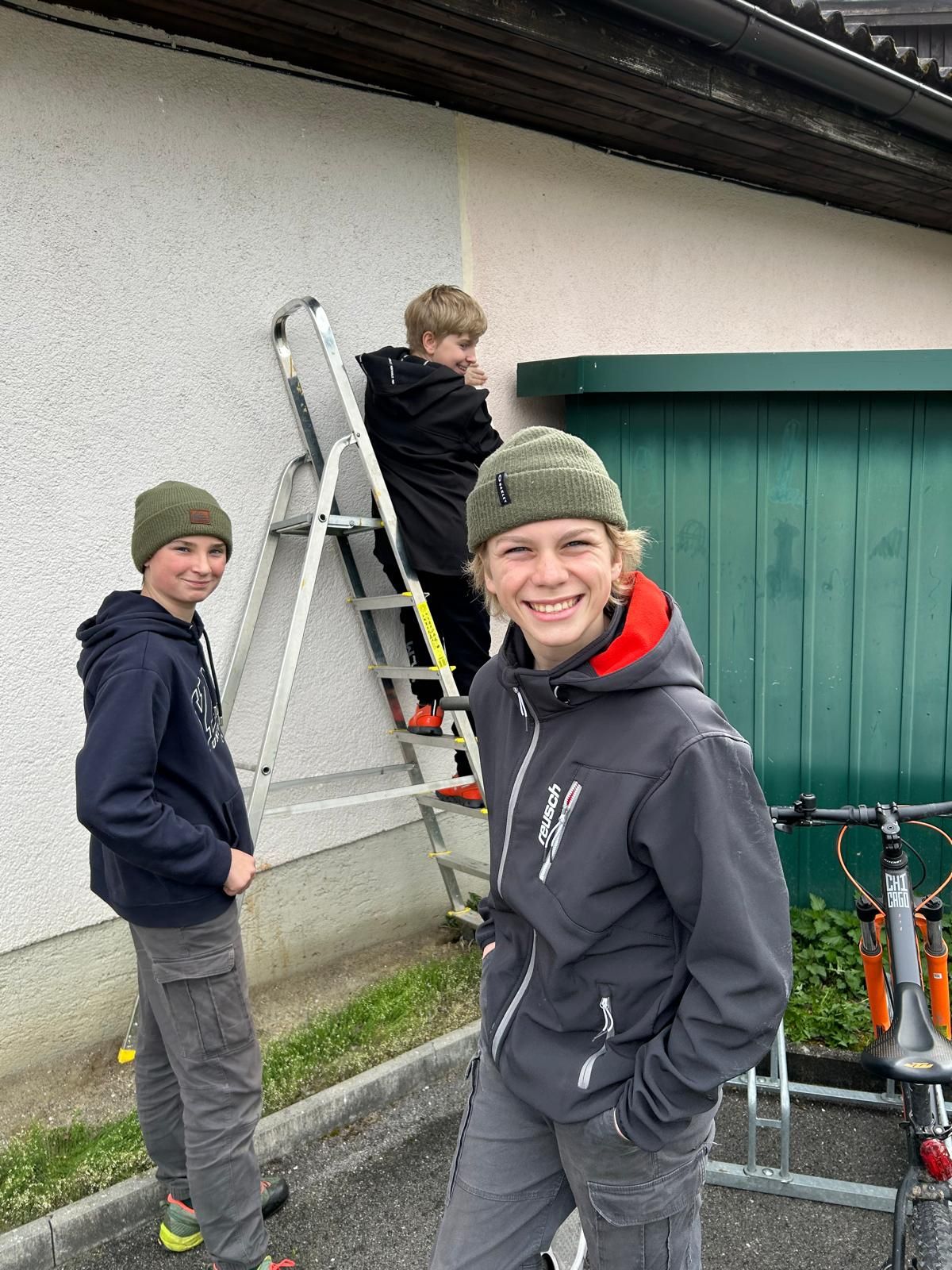 Die geplante Bushaltestelle unserer Schule soll nicht nur ein Ort des Wartens sein, sondern auch ein Kunstwerk, das die Gemeinschaft repräsentiert. Aus diesem Grund haben sich Schülerinnen und Schüler der 3. und 4. Klassen gemeinsam dazu entschlossen, die Wände der Bushaltestelle mit Leben zu füllen, noch bevor diese überhaupt errichtet wird. Im Mittelpunkt dieser Gestaltung steht unser Schullogo, das von den Schülerinnen und Schülern detailgetreu gemalt wurde und einen bedeutenden Platz an den Wänden der Bushaltestelle einnehmen wird. Zusätzlich zu unserem Logo schmücken auch Farbtropfen die Wände, welche in verschiedenen Farben und Größen das kreative Potential unserer Schülerinnen und Schüler repräsentieren sollen.
