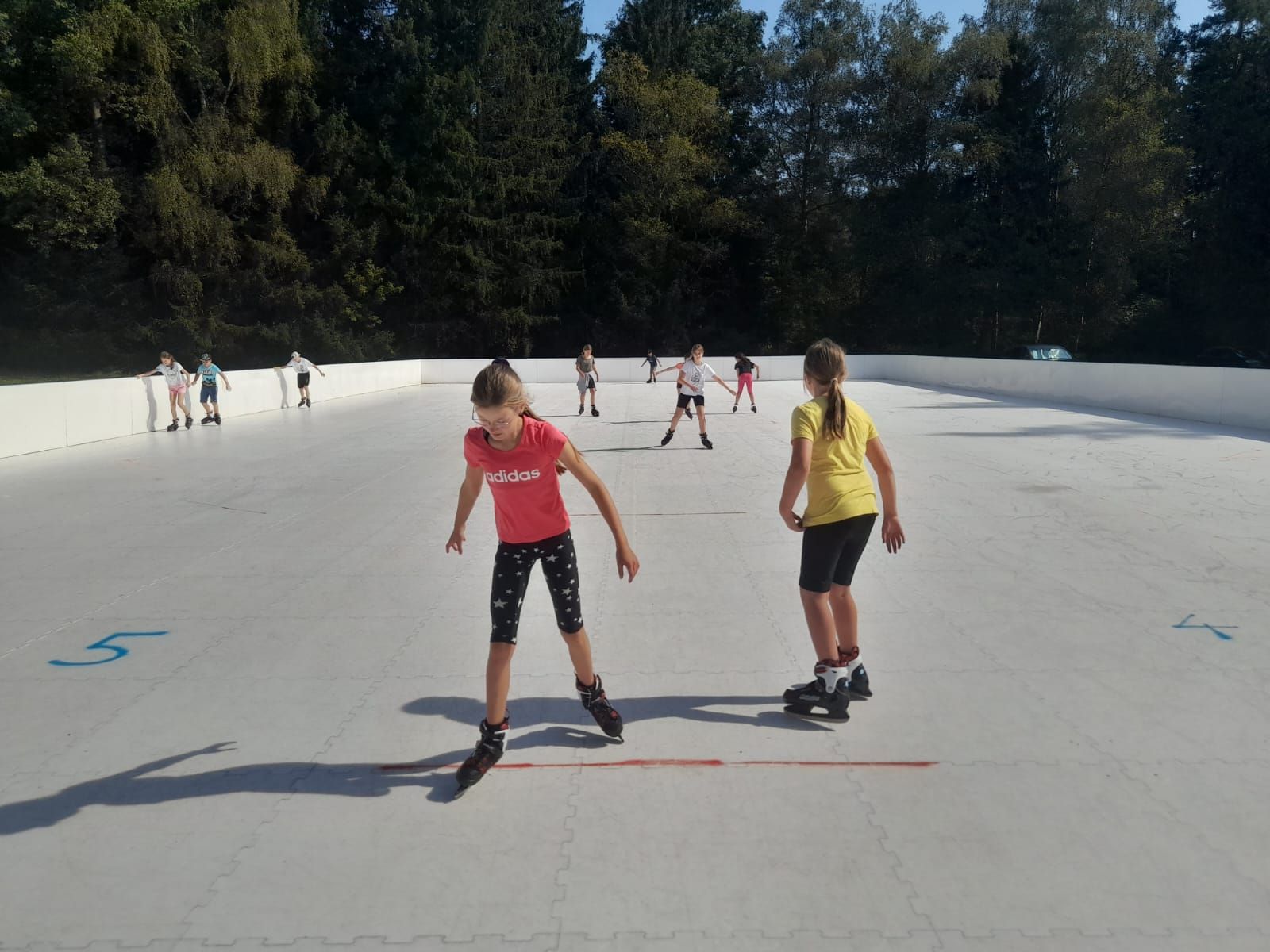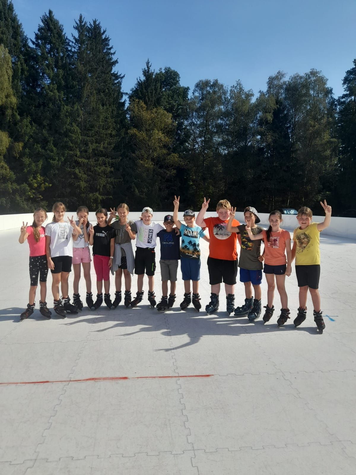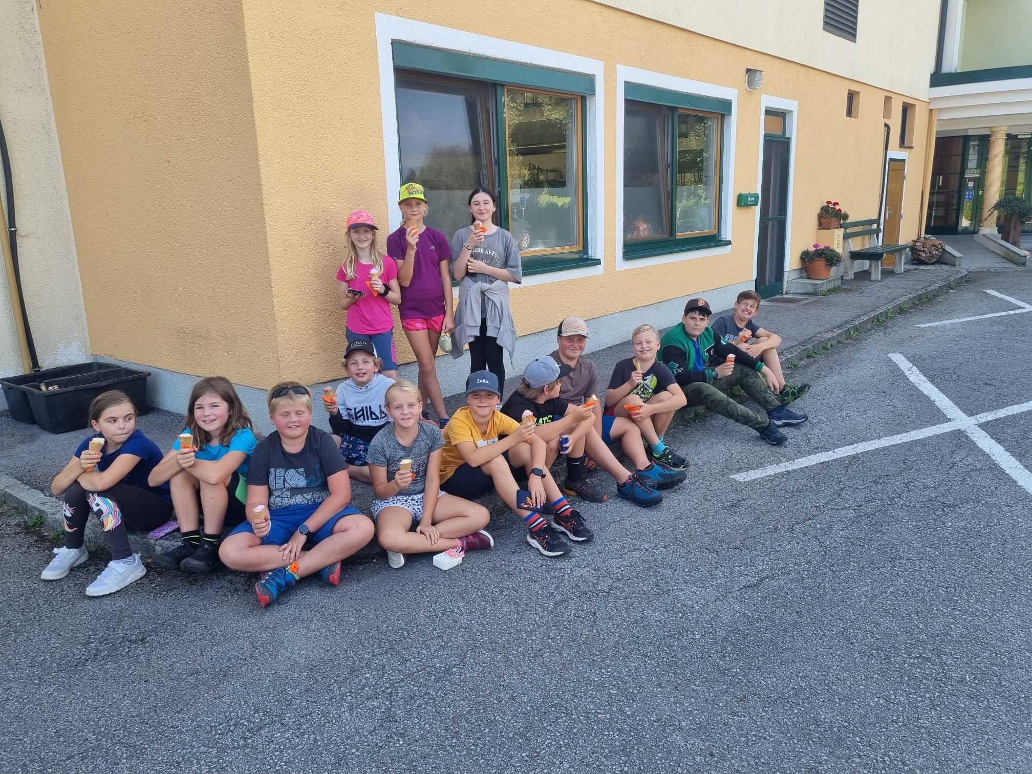 Deren Ziel war das Gasthaus Häuserl im Wald am Mitterberg, wo die Kinder nicht nur den Spielplatz für Kennenlernspiele nutzen konnten, sondern sich auch riesig auf die dortige Ganzjahreseissportanlage freuten – schließlich kann man nicht überall bei sommerlichen Temperaturen Eislaufen. Frisch gestärkt mit einem leckeren Eis machten sich die beiden Klassen gegen Mittag wieder auf den Rückweg zur Schule.