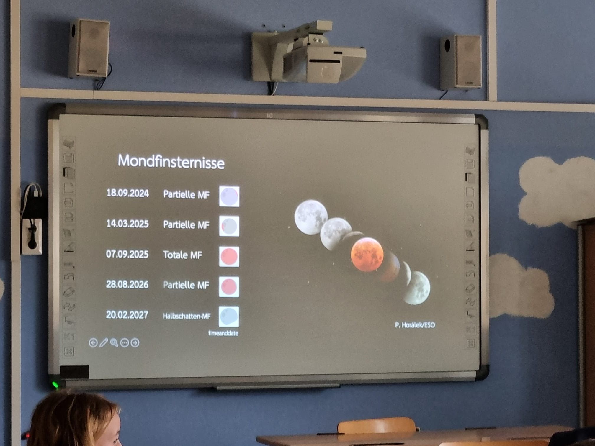 Auch die Werte des bereits vor einiger Zeit auf unserem Schuldach installierten Messinstruments, ein sogenanntes Sky Quality Meter, wurden besprochen. Wirklich dunkle Orte – z. B. tief in den Sölktälern oder irgendwo im Nirgendwo im australischen Outback – weisen Werte um 22 auf. Unser Schuldach-Messgerät zeigte einen Wert von 21,6 an – für eine bewohnte Ortschaft ein sehr guter Wert.